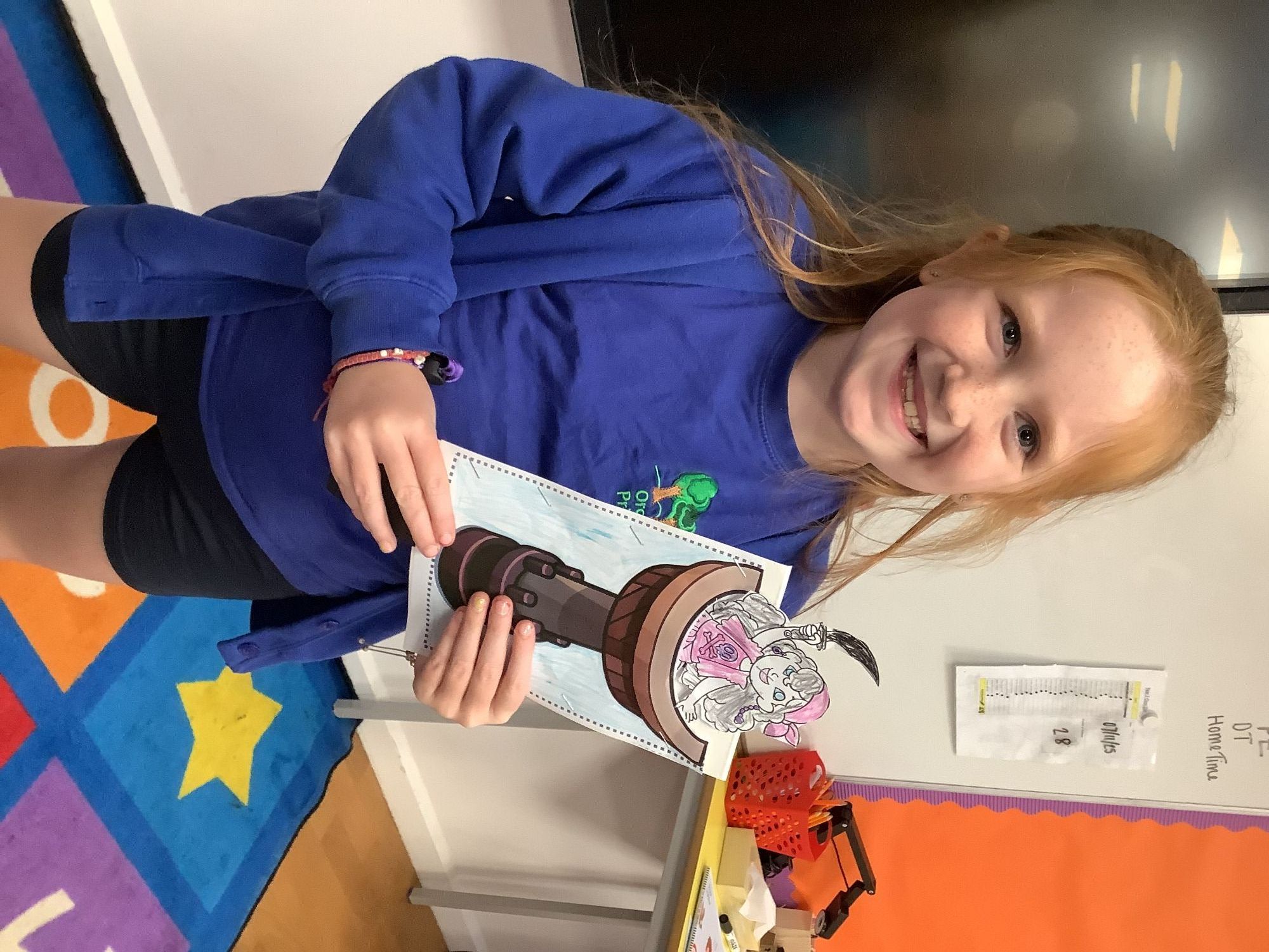 I'm not sure how we've fitted it all in but this week .... on Tuesday we had Wonderdome. Year 2 went on an adventure into space and learnt all about our solar system. We had an amazing experience but because of how dark it was in the dome the photos didn't come out very well. In Science we have also began investigating materials and completed an experiment around how paper, wood and cardboard could be manipulated. Which materials would bend, tear, stretch etc. In literacy we finished our Story Map and created Tom hill sliders to practice re-telling our story as well as embellishing the sentences verbally before we began writing the story the following day. We then created pop-up pirates (alongside stitching our penguins) using the same skill to begin learning the parts of a pirate ship. Hopefully everyone knows crow's nest, mast, sail and rigging now. As well as all of this we've had Children In Need, dressed as pirates (as you do) and even squeezed some phonics and maths in...