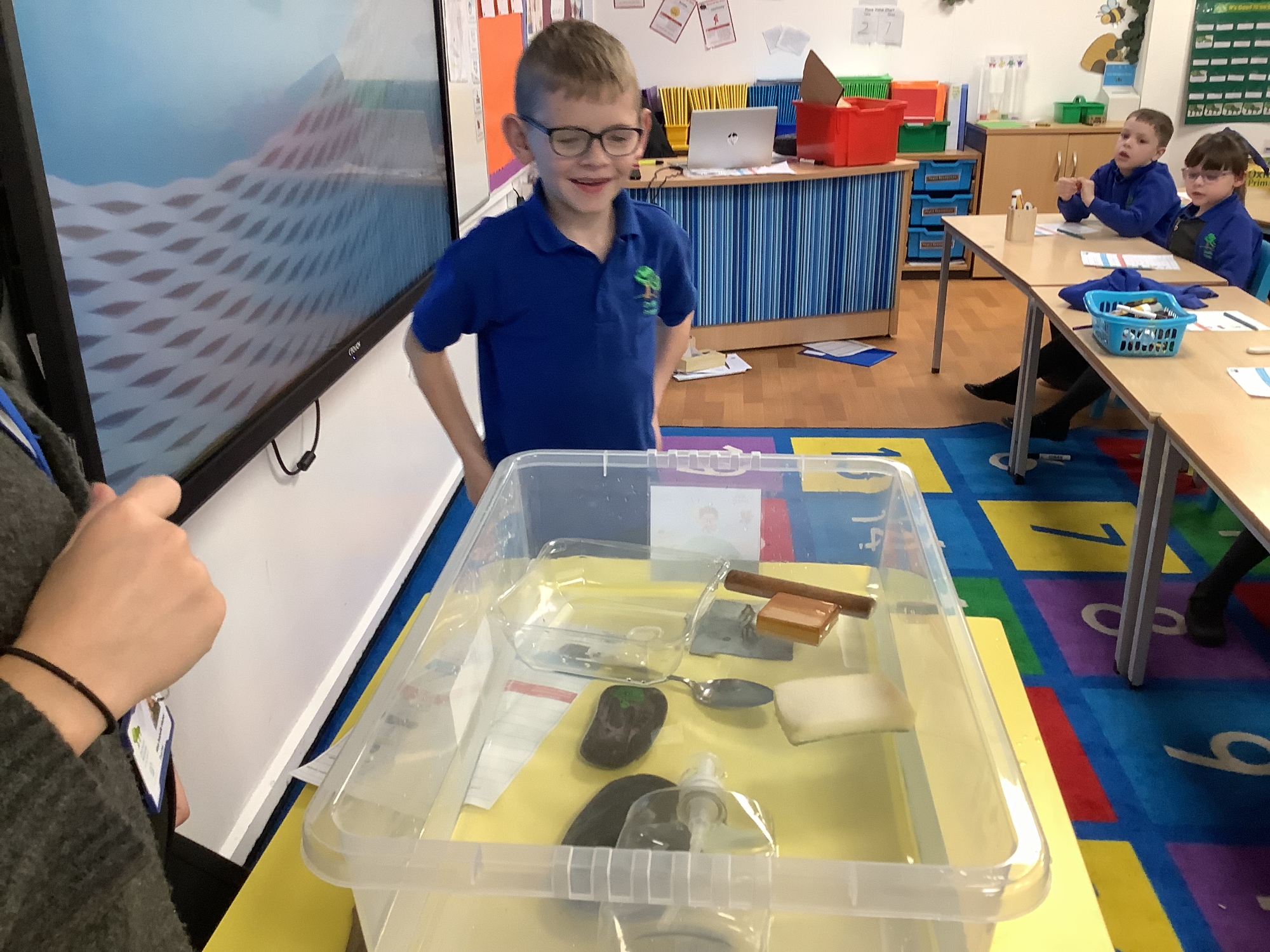 In Science, we continued our work on materials. This week, we investigated whether the materials we have been learning about float or sink. The children took part in a practical experiment where they first predicted what they thought would happen before testing their ideas. This activity also supported their choices of materials for building junk-model pirate ships.
