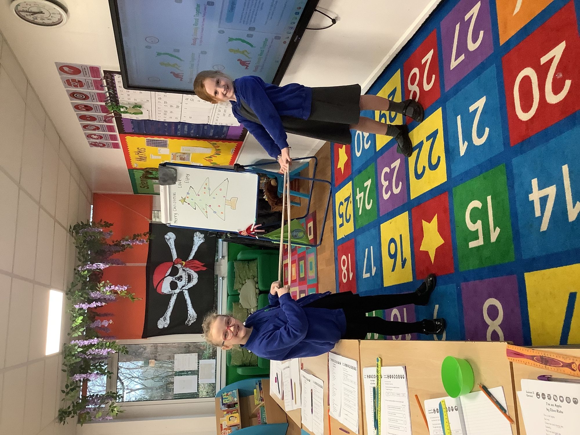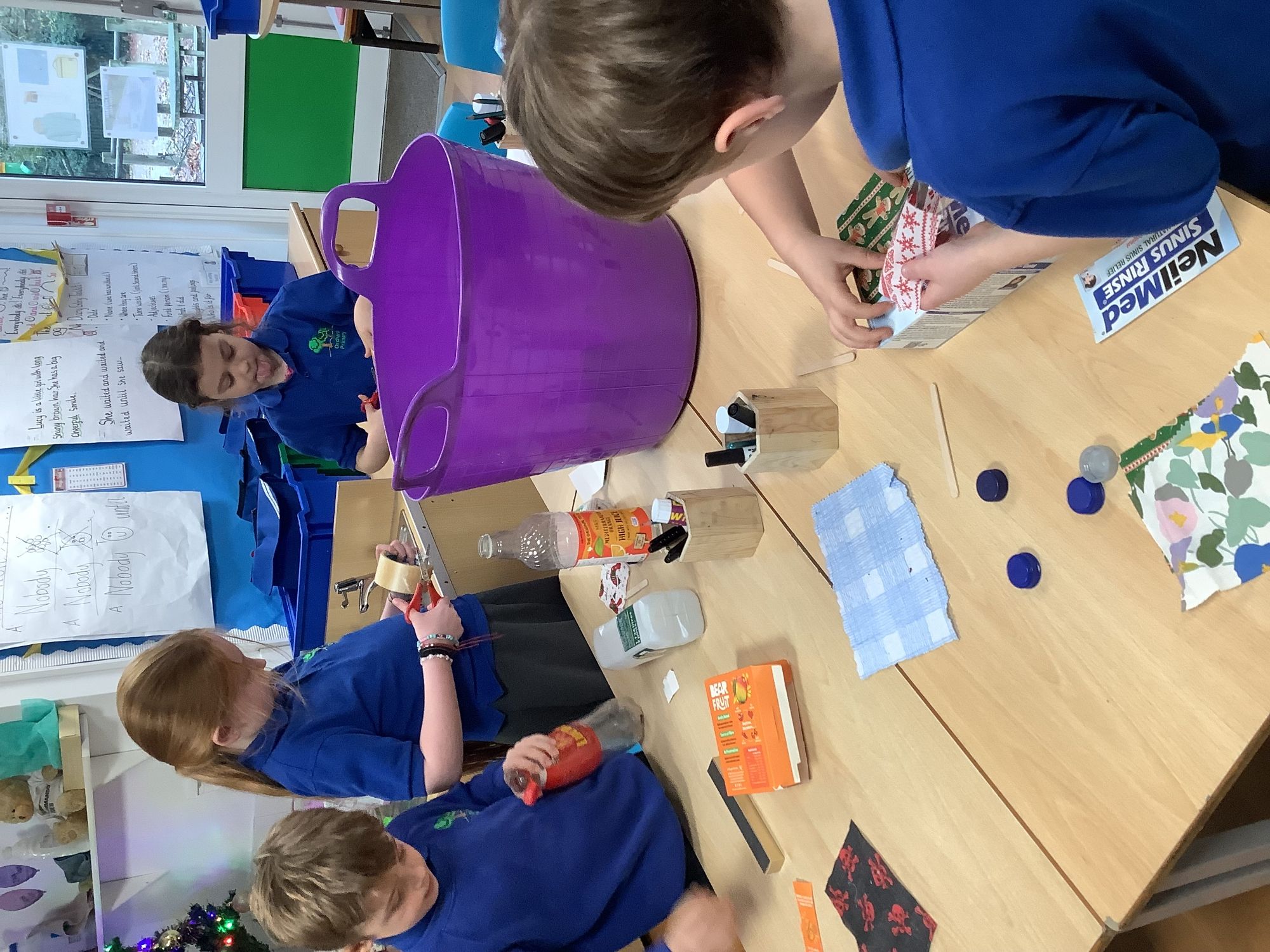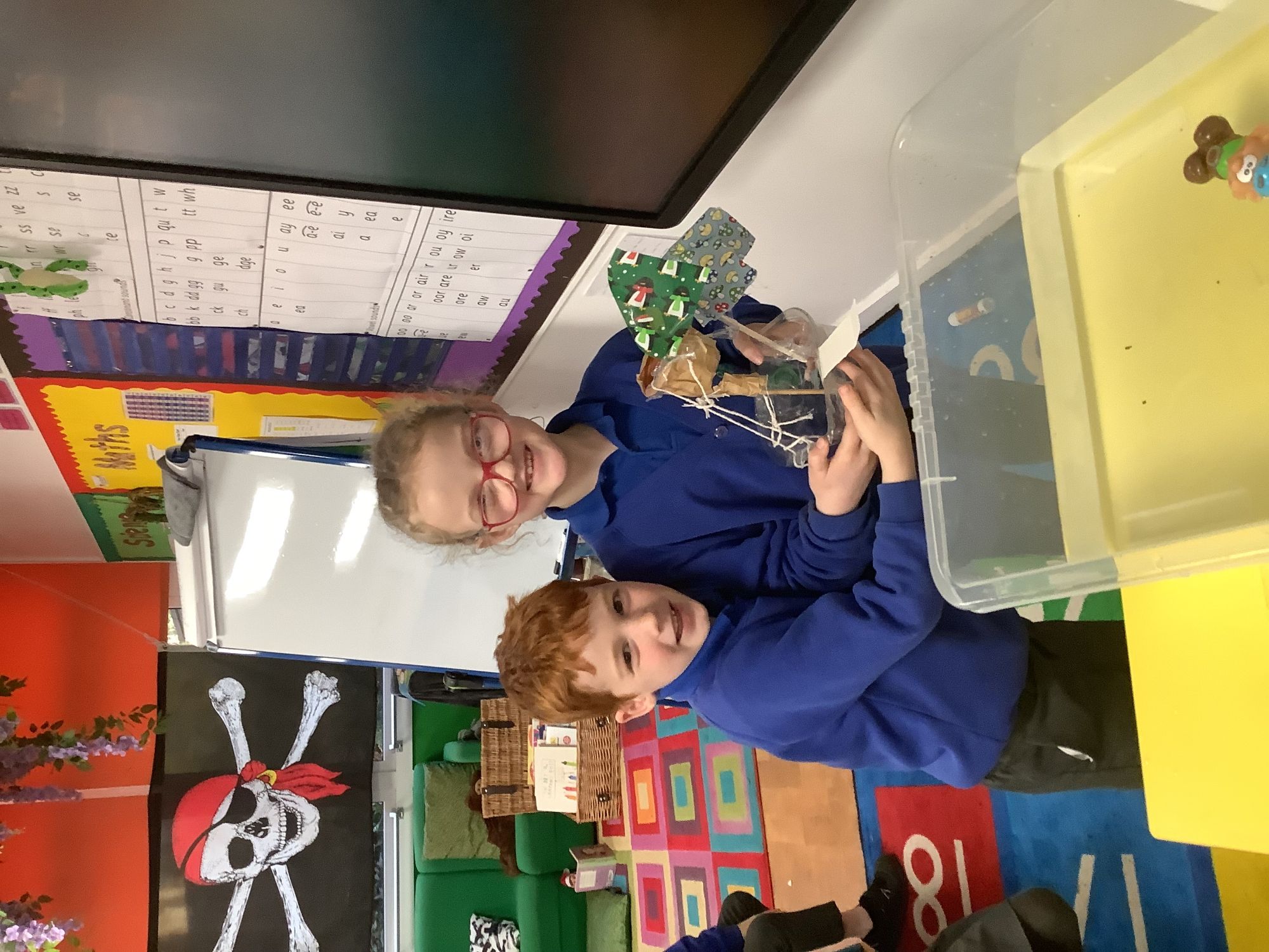 This week in science we tested materials that could bend, twist, squash and stretch. Although we found only a couple of materials that could do all four, next week we will be making our own material that can (prepare to get messy). In geography we learnt about compass directions and grid references and practiced compass directions out on the playground. In D&T we created our junk model pirate ships, applying our knowledge from last week of floating materials. Although a couple of ships toppled over, they all floated! Buddy our cheeky class elf delivered our Christmas tree and class decorations on Monday so Year 2 hung their penguin decorations that we finished last week. We also won the attendance award AGAIN this week... because that's how we roll in Year 2.