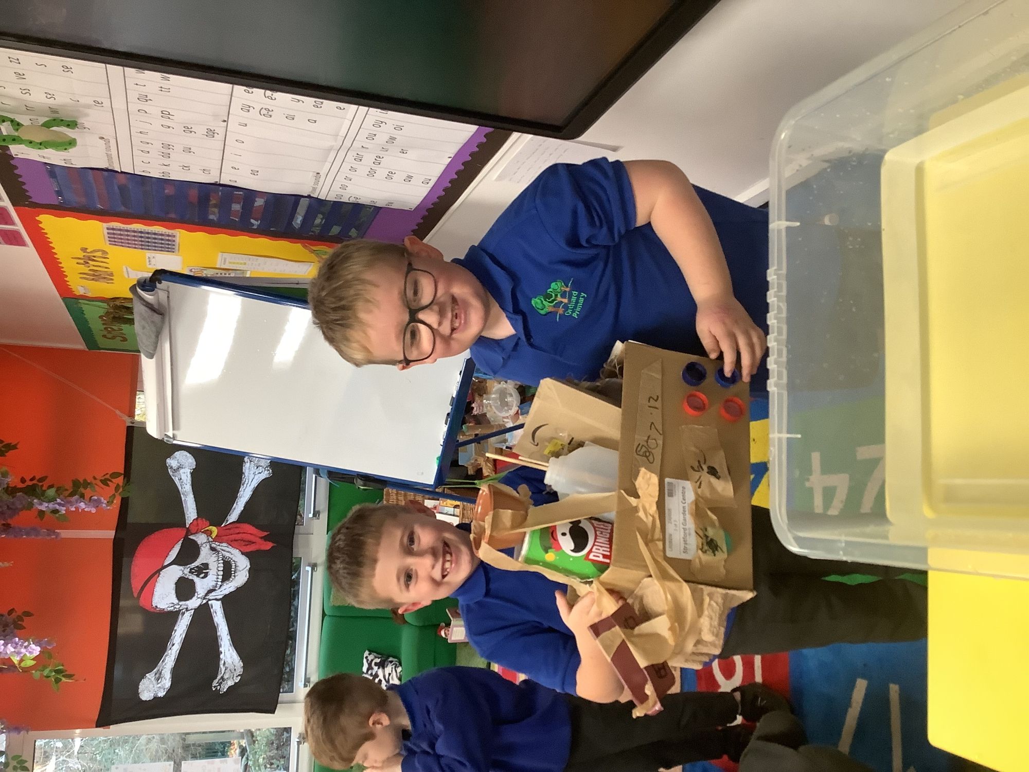 In our Design and Technology lesson this week, the children brought together all of their learning to create their own junk-model pirate ships. Working in pairs, they carefully constructed their boats, thinking about the essential features of a ship and applying their science knowledge about materials that float and sink.
