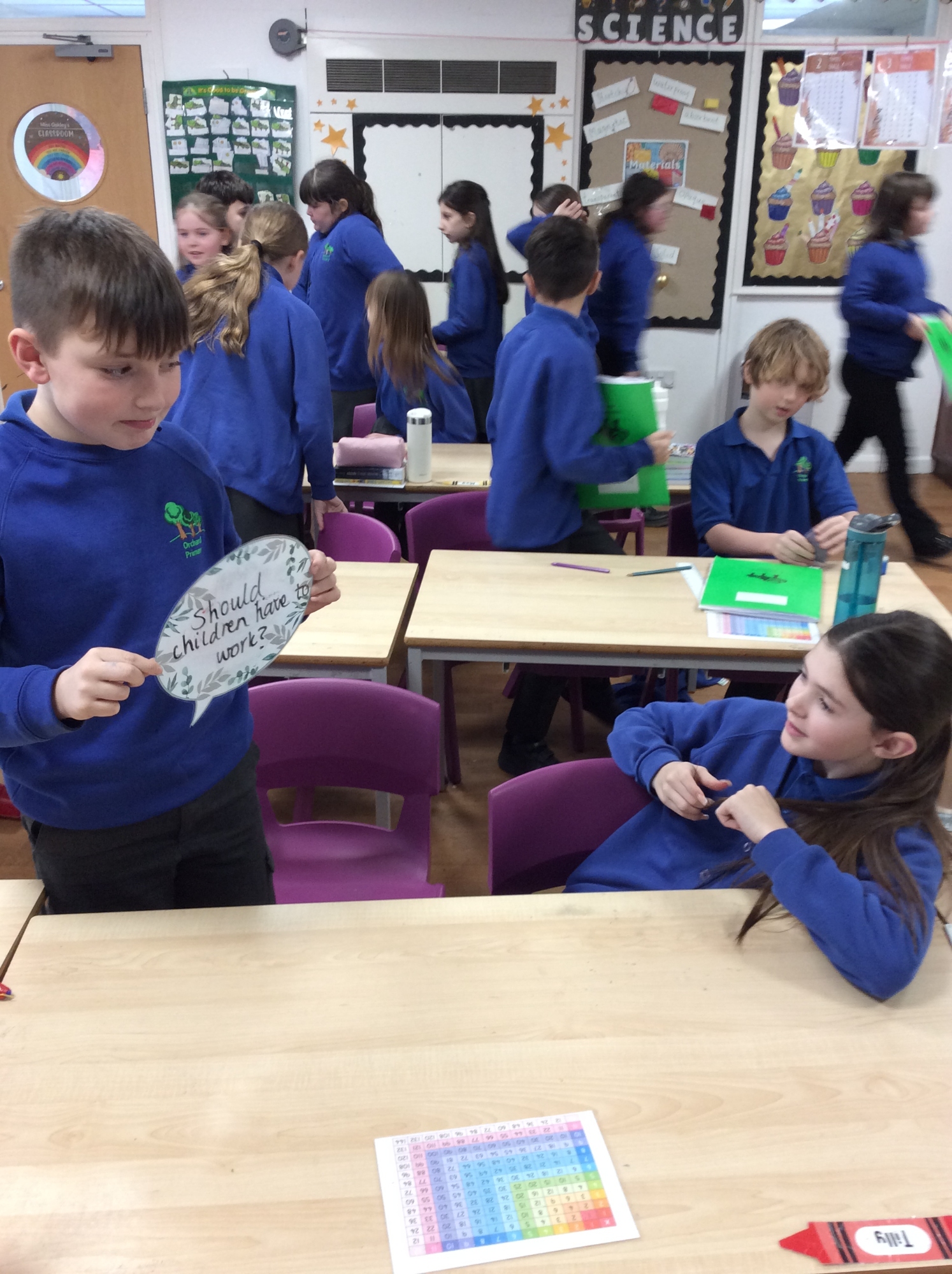 We had a class debate practising our oracy skills on the statement: "Children should have to go to work."
