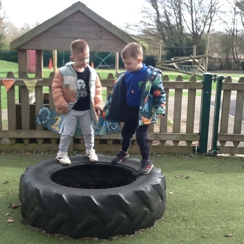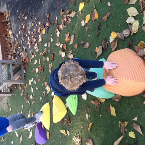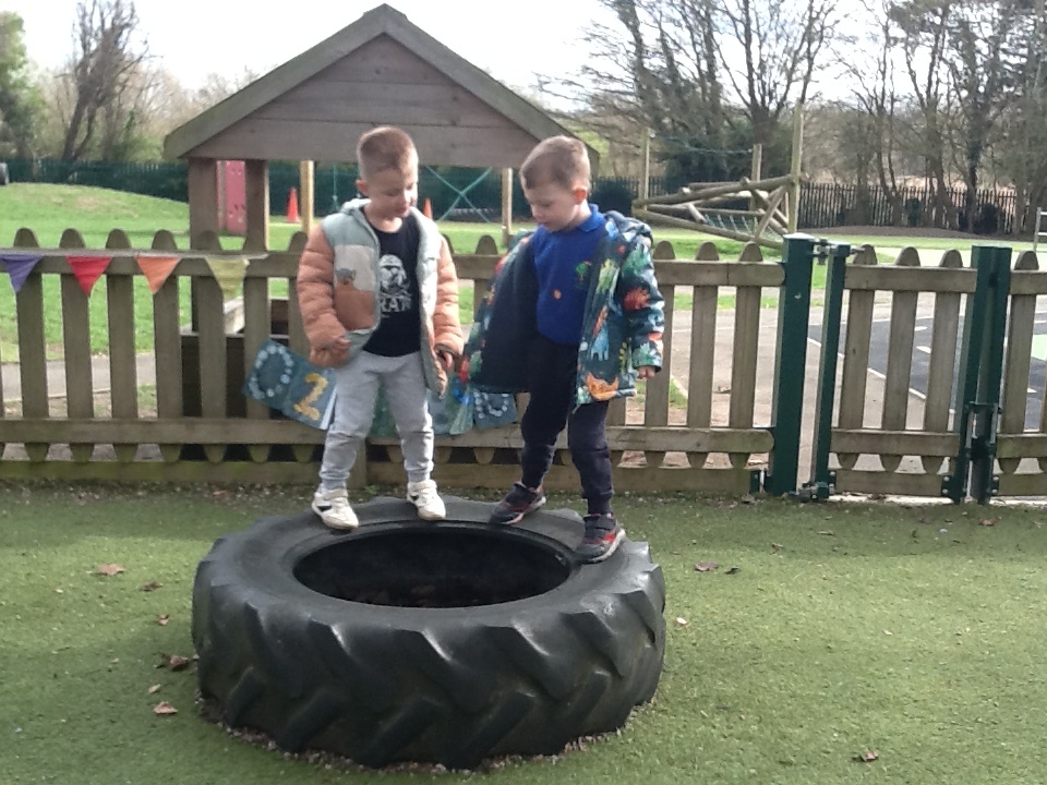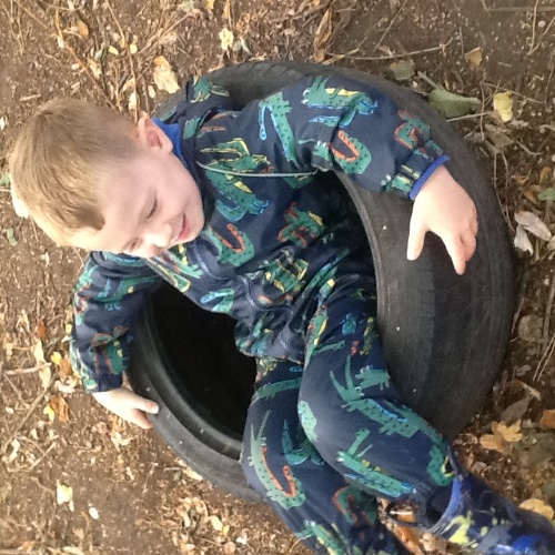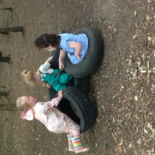 Great fun with the big tyres this week, stacking them up then hiding in them, using them as stepping stones or a seat when a rest was needed or just rolling them around the play area.