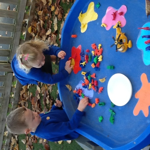 The free flow play gives the children the choice of playing indoors or outdoors. Magnetic building shapes, enjoying tea parties in the role play home corner or enjoying the colour sorting and shape matching games were just some of the activities the children embraced.