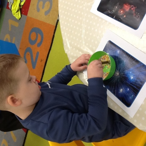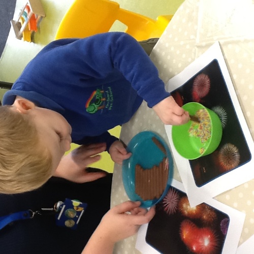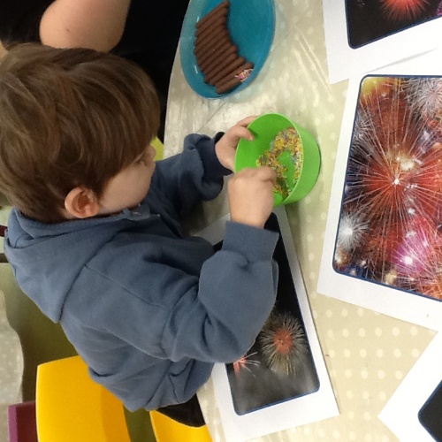 We talked about the books after reading them and the children shared their firework stories and also talked about how some fireworks can be too loud and scary. They all agreed that they loved all their pretty colours.