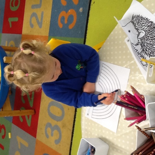 The children made clay hedgehogs, wax crayon leaf rubbing pictures and made 'Ned' the hedgehog a home from the resources found in the sensory tuff tray.