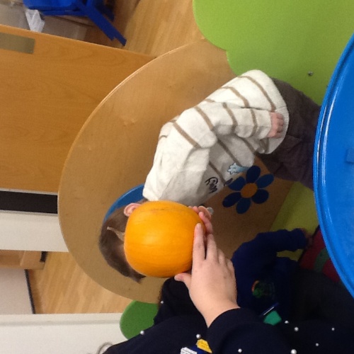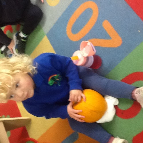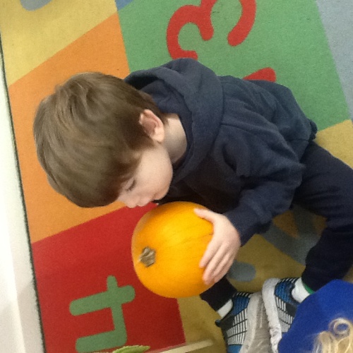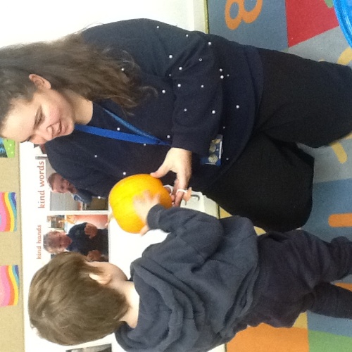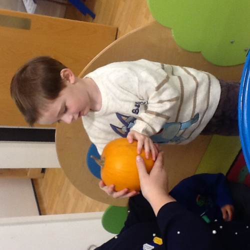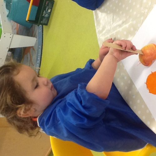 This week we have been learning lots about Autumn and pumpkins. For our baking session we made pumpkin soup, we scooped all the seeds and chopped the pumpkin into cubes, we then all had a go using the blitzer, mixing all the ingredients together. We also did some pumpkin stamping using apples. At Woodland explorers we did an Autumn colour hunt, looking for different Autumn colours in the forest and matching them to the colours on our boxes. We have continued to show our Autumn hunt bags to our friends at mat time.