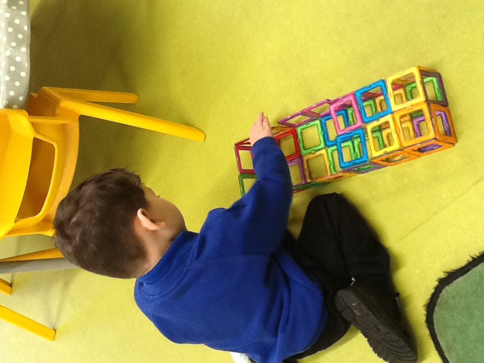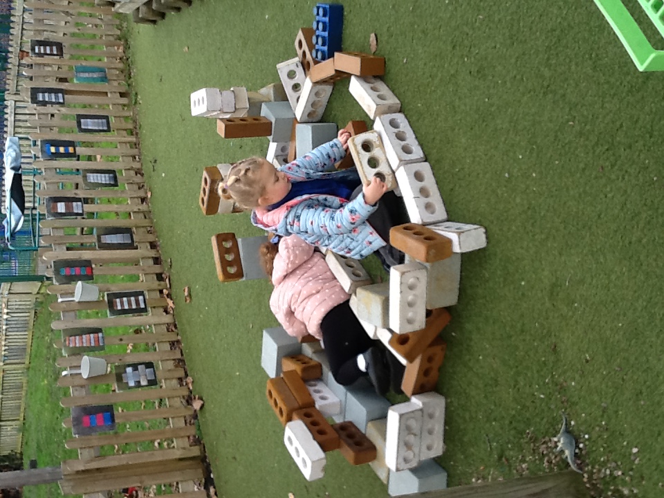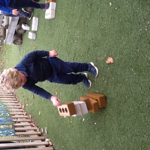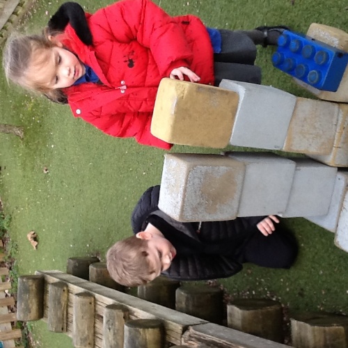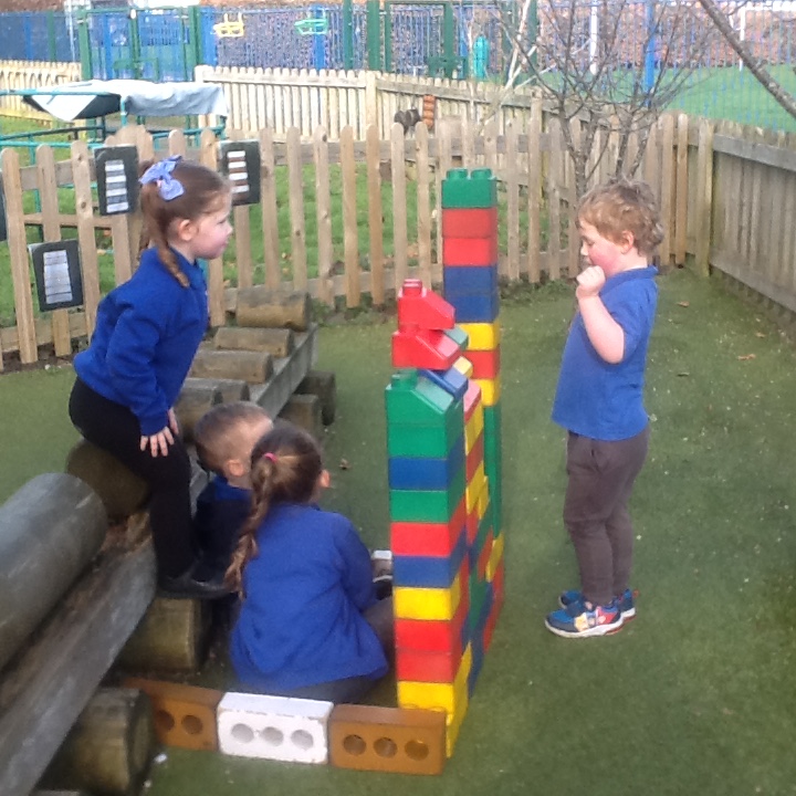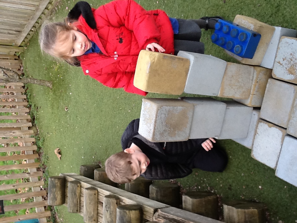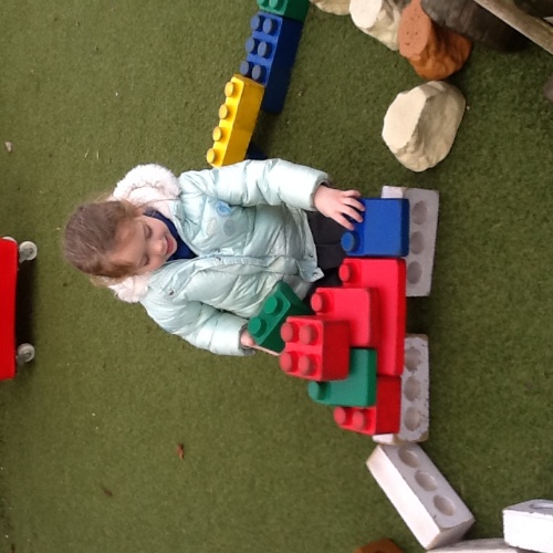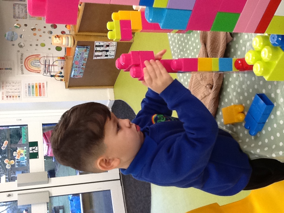 The children were eager to demonstrate their construction skills. using a variety of building resources. Solid wooden bricks, large open wooden pieces, stickle bricks and large foam lego bricks used to build houses, towers and create some objects as displayed on an instruction sheet.