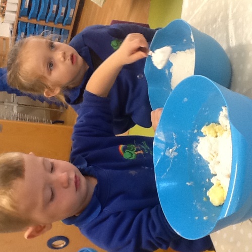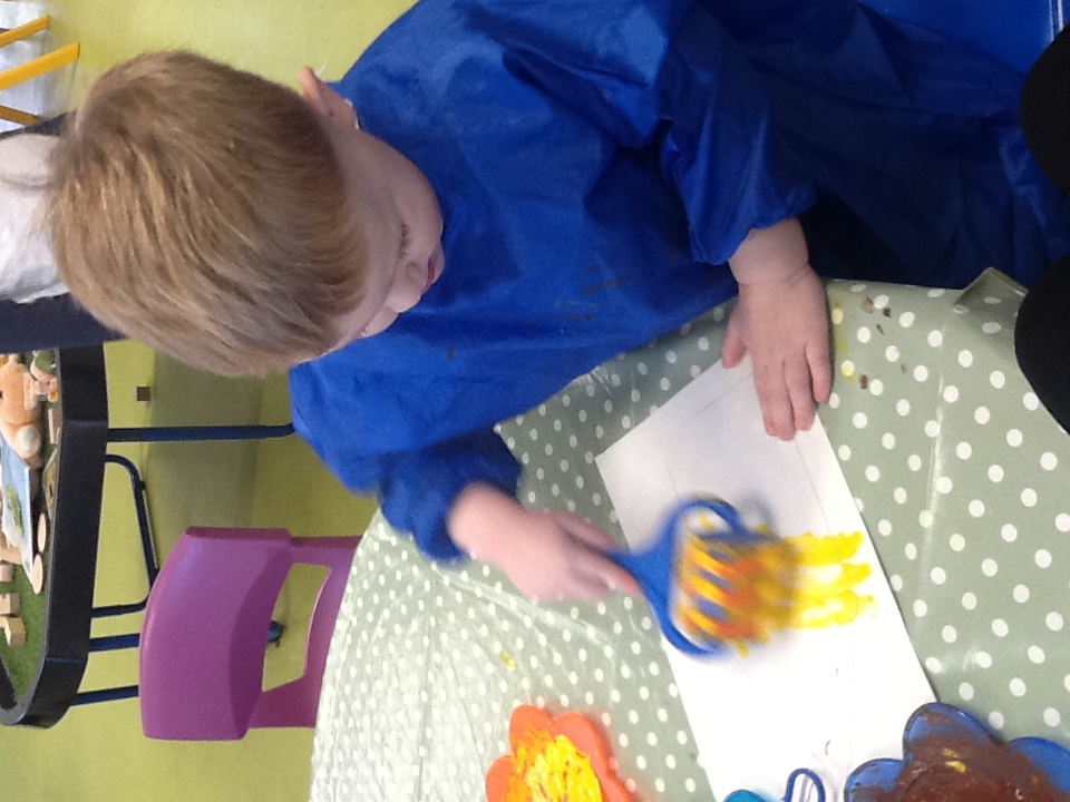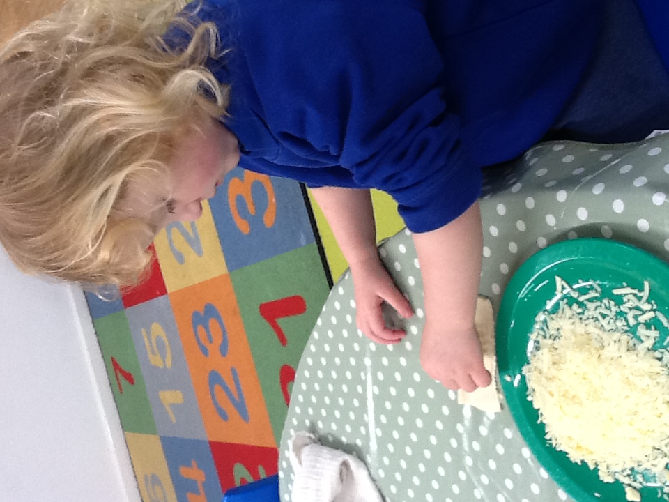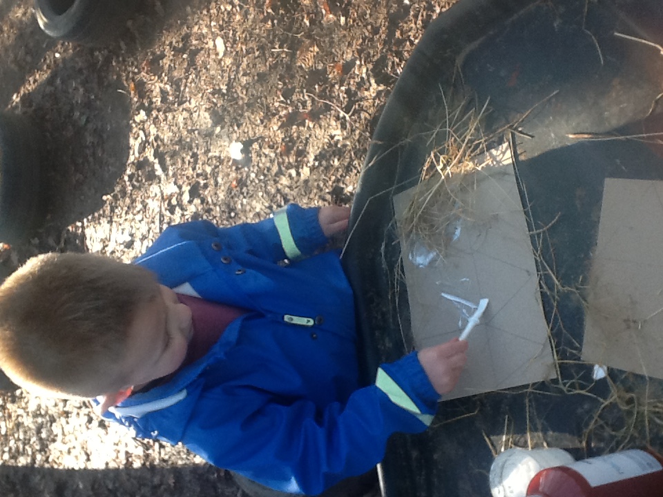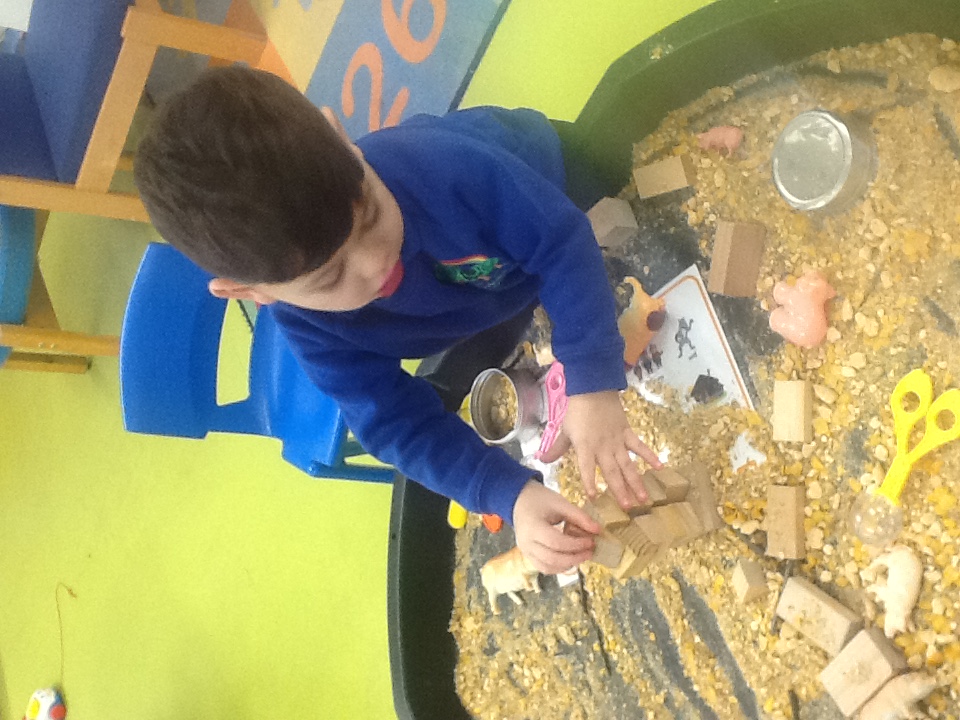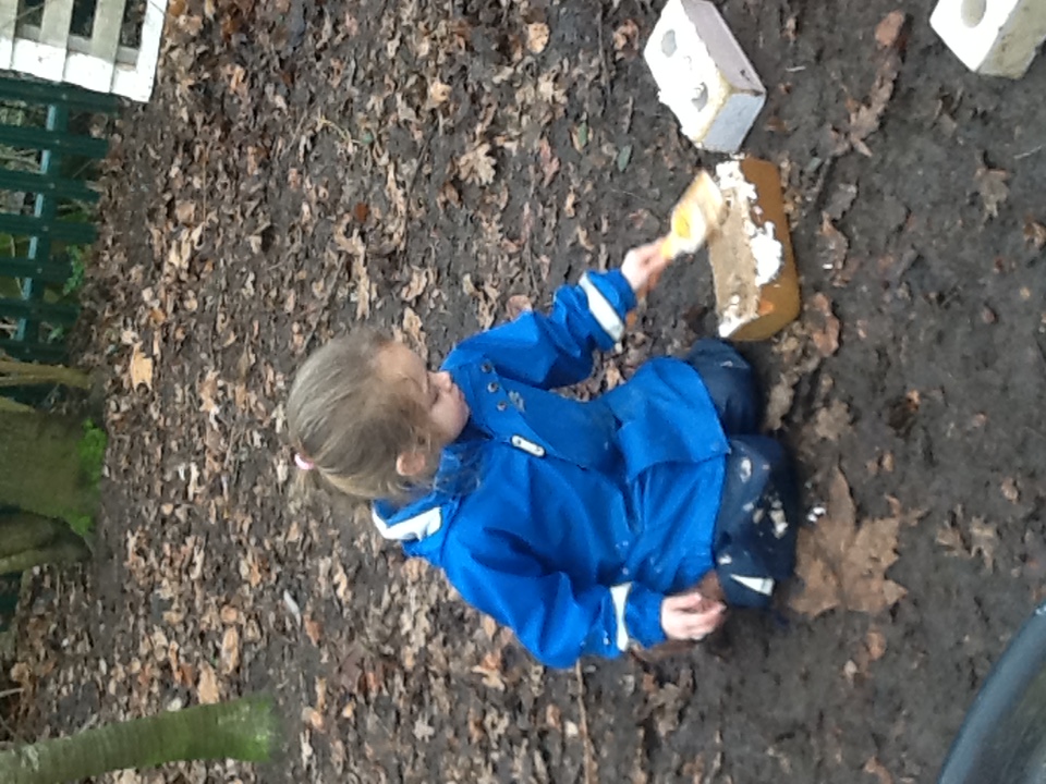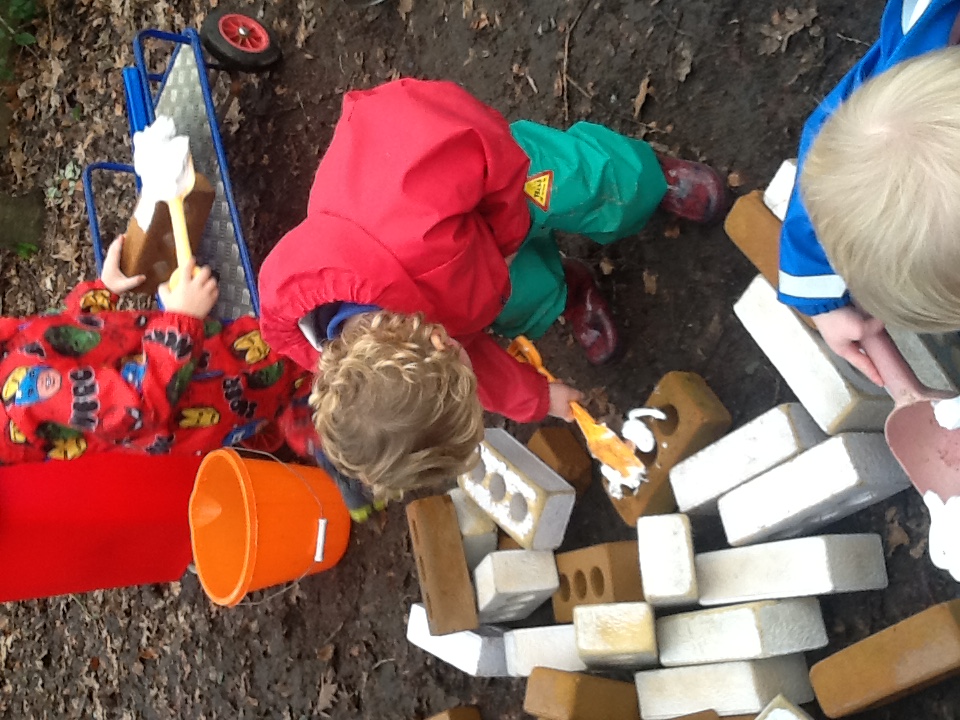 This week we have started a new story, ‘The Three little pigs’. For our cooking activity’s we made cheese straws, we sprinkled the cheese onto the pastry then twisted them round. T Woodland explorers we took the foam bricks up to the forest and made our own ‘cement’ using shaving foam, sand and water. We used tools to stick them together just like the third little pig. We have been retelling the story using the puppets and sticks, straw and bricks. We also painted straw, stick and brick houses using different materials and rollers. Inside we made lots of creations using the magnets, and outside the bricks.