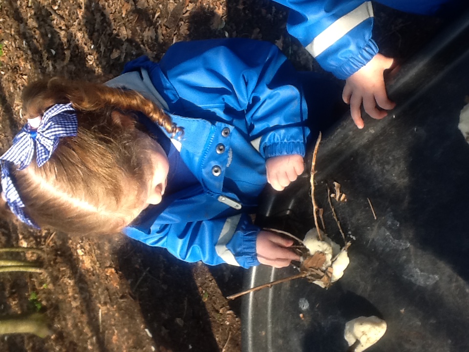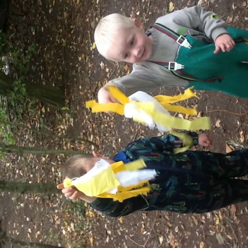 They had great fun exploring the woodland area, collecting sticks, leaves, and other natural objects.