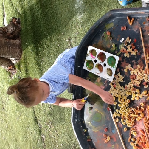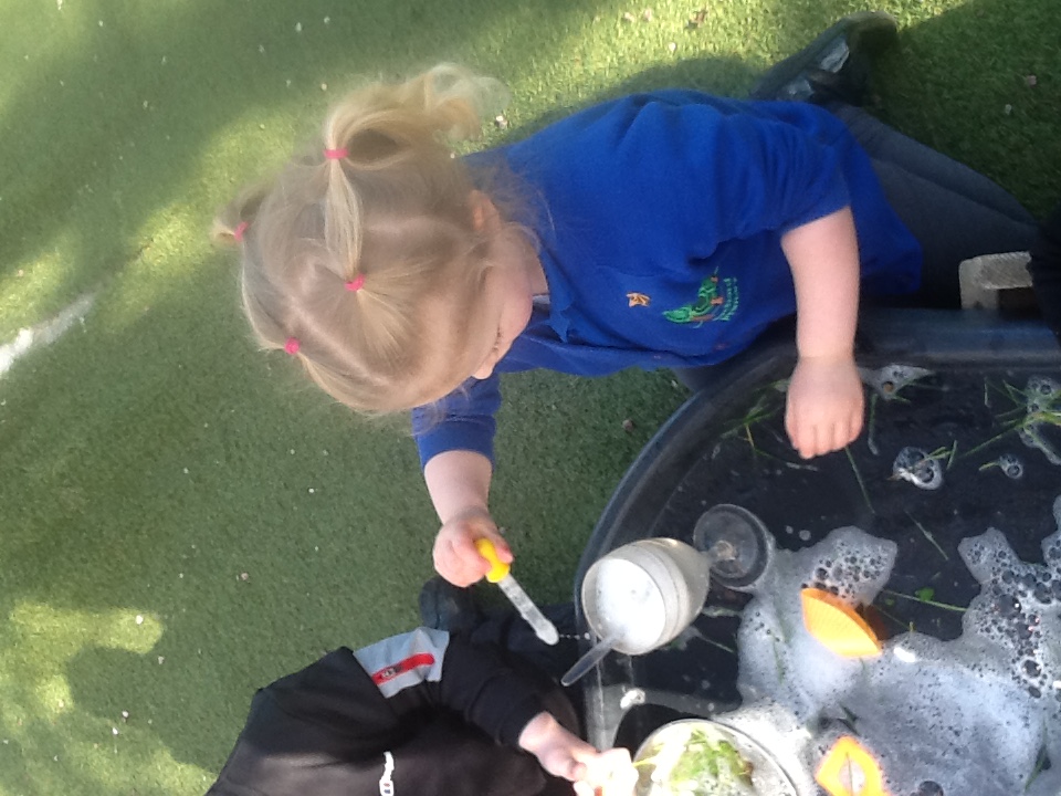 Free flow play provides the children with the choice to play indoors or outdoors, the nice weather this week has seen the children opting to spend more time in the outdoor play area.