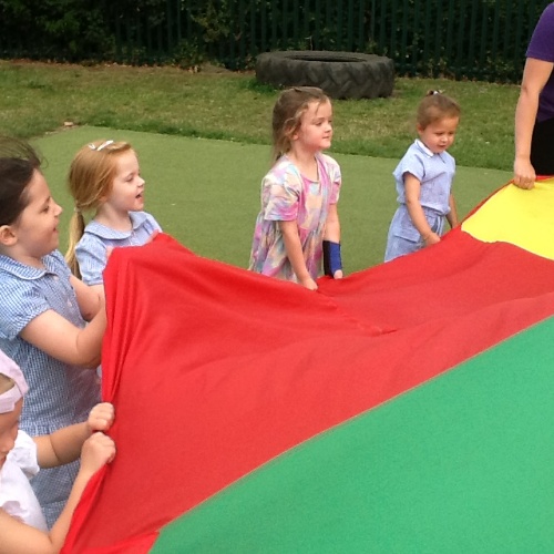 Great fun with the whole group, playing with the parachute at the end of this week's P.E session.