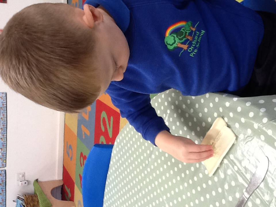 In Cooking this week, the children made Apple and blackberry turnovers. They demonstrated their cutting skills when using knives to cut up the apples. The cut up apples and blackberries were spooned onto the pastry then the pastry folded to make a yummy turnover.