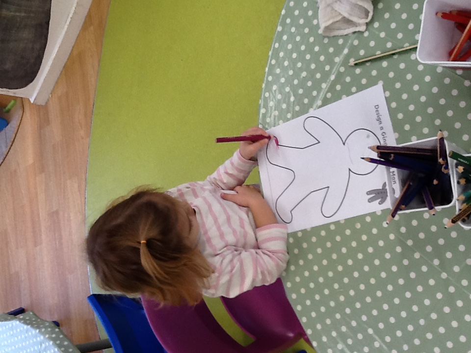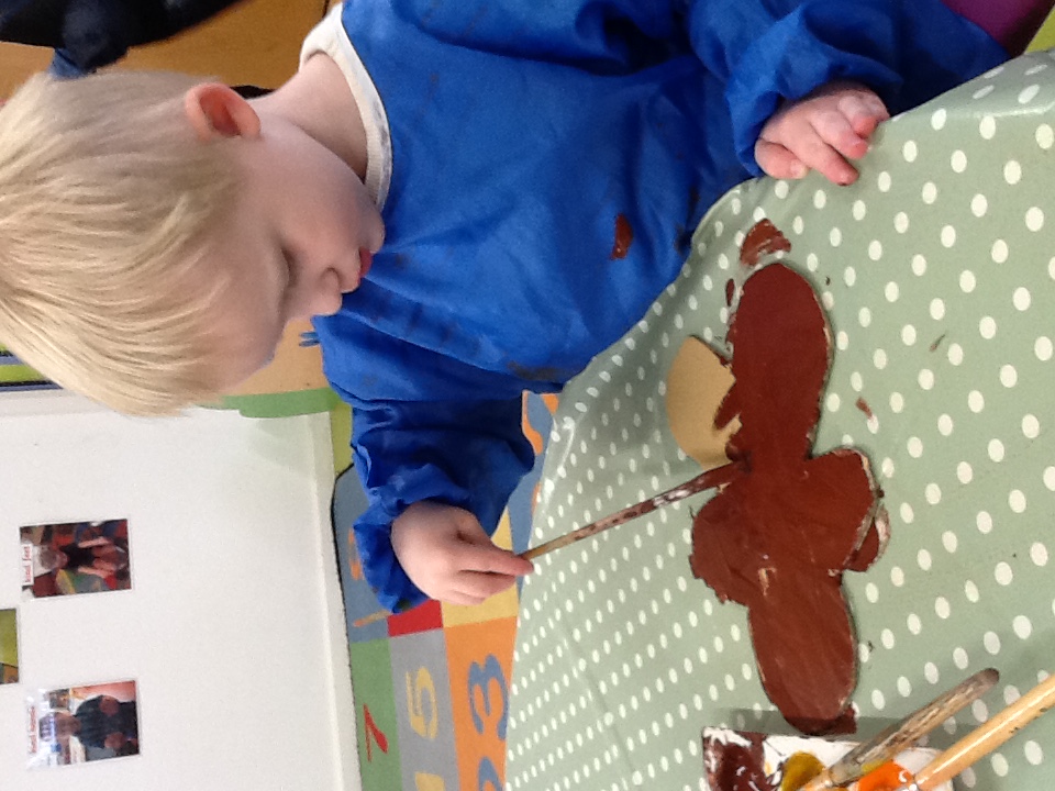 This week we started our new topic book ‘The Gingerbread man’, the children have been exploring a gingerbread playdough themed tray, using lots of tools to create gingerbread men and other bakes. During our baking session we made ginger cake, we carefully weighed out all the ingredients then melted them in the saucepan, the children all enjoyed smelling the ginger that went in and watched it cooking in the oven. We have also been using loose parts to decorate gingerbread men, finding eyes and buttons. At Woodland explorers we wrapped long pieces of paper around the trees and used the chalks to rub the tree bark and create patterns. We have also painted our own gingerbread men made from cardboard.
