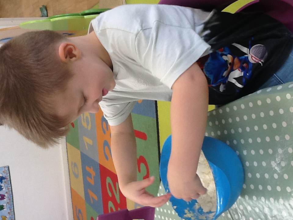 Some of the other activities that the children have enjoyed this week are conker rolling down a slide, colour and shape sorting, creating with magnetic shapes and in this week's cooking session, measuring, mixing and making leaf biscuits.
