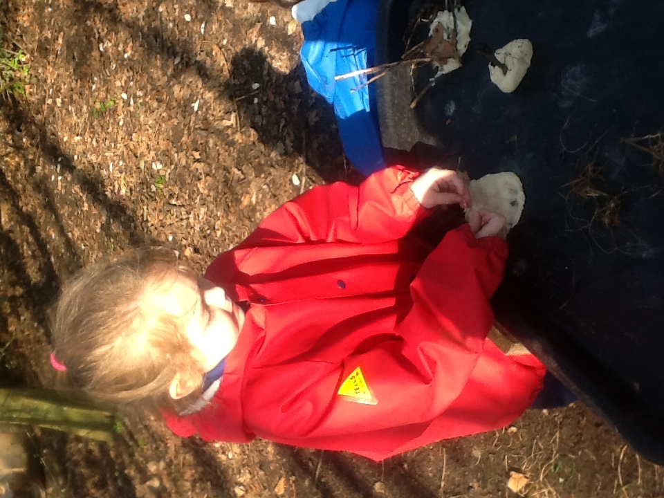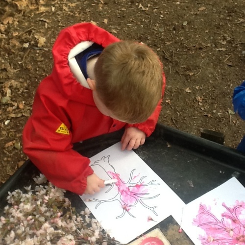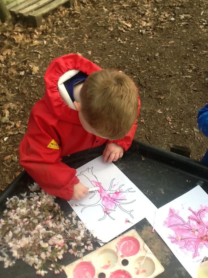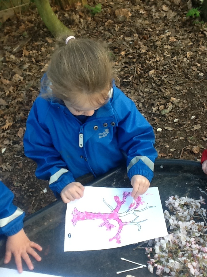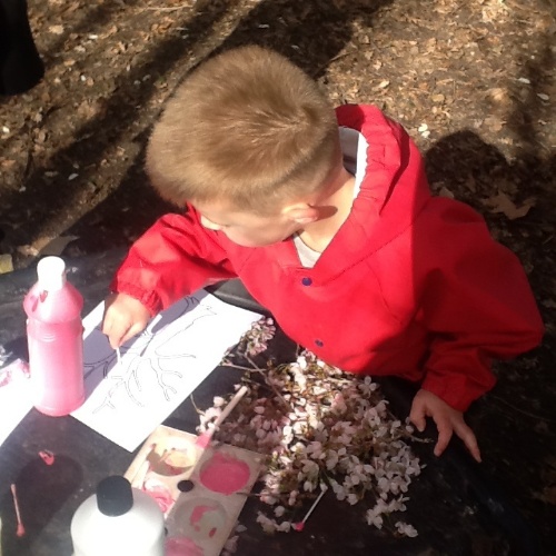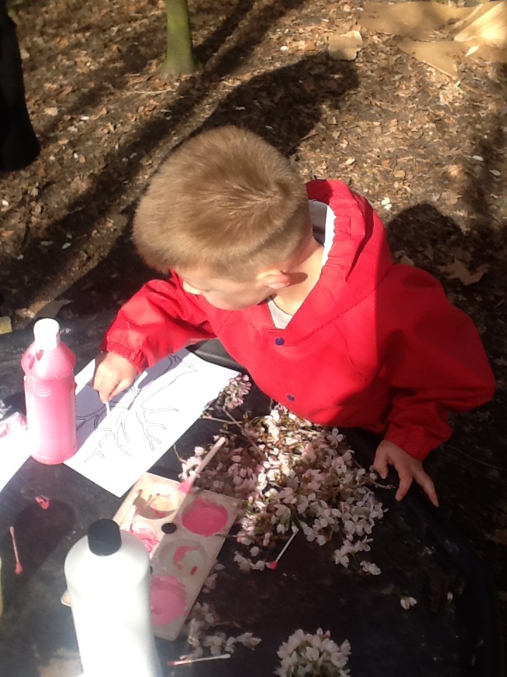 The children started the week, enjoying play activities in the forest, searching for signs of spring, bug hunting and more blossom painting.