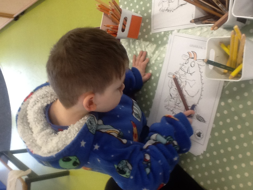 The Gruffalo's Child was the focus book in this week's Storytime and activities session. The children were clearly familiar with the story and helped with reading of the words, eagerly pre-empting and saying what was going to happen next, many saying the words and phrases with me as I read.