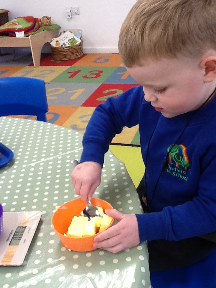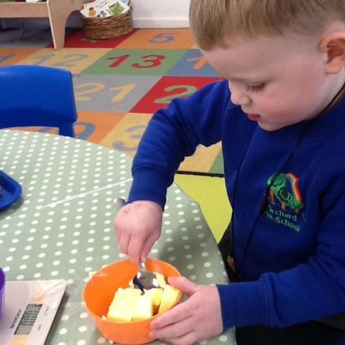This session will introduce the children to new foods and textures, the opportunity to explore healthy eating, as well as enabling them to practise their physical skills, particularly their hand-eye coordination.