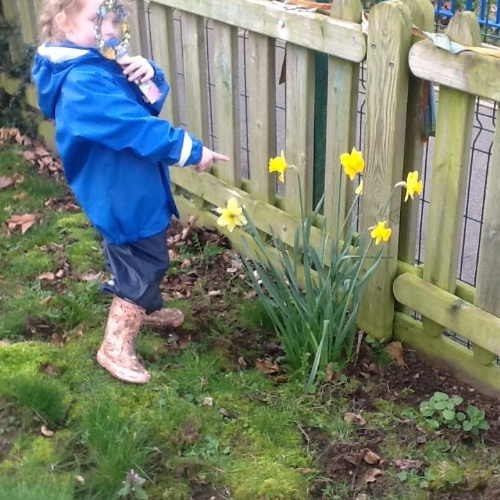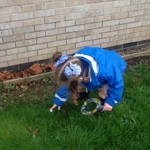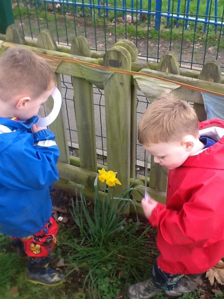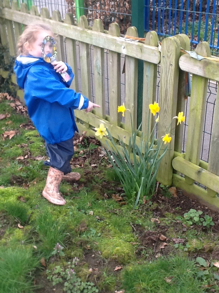 Kitted out with magnifying glasses the children explored the garden, playground and forest area to see what signs of spring they could see. Daffodils, daisies, buds on the trees were some of the items they discovered.