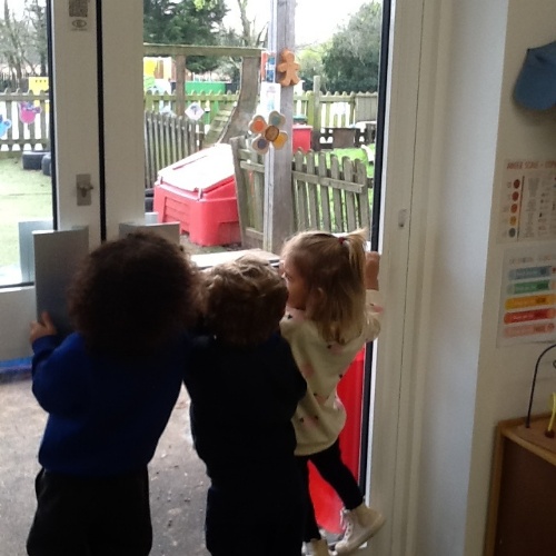 This week was our first week back after the Christmas holidays, the children were very excited to tell us all about what they had been doing over the Christmas break. We have started a new topic 'Once upon a time' with our first topic book being 'Golidilocks and the three bears', we have been reading the story at mat time and have begun introducing the puppets and role play items. We have been exploring inside with the magnets, Mr Potato heads, lots of building and exploring the home corner. At Woodland explorers we have been getting ready to take part in the RSPB big garden bird watch, We took bird spotters sheets and made our own binoculars to try and spot different birds, We saw them in the trees, flying over Pre-School and on houses.