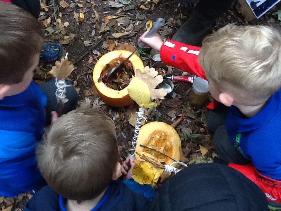 In Woodland Explorers we had lots of fun searching for signs of autumn, then using what we had found to make our own pumpkin potions and witchy wands!