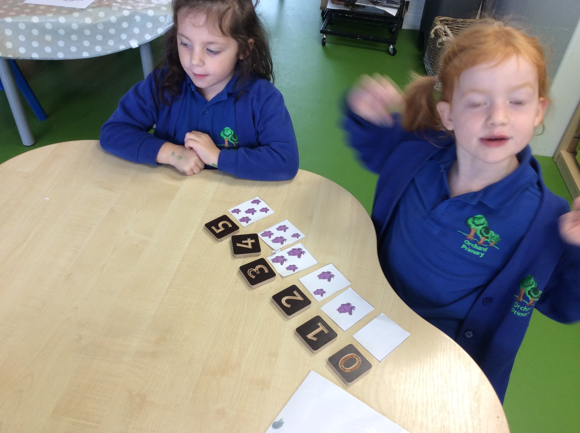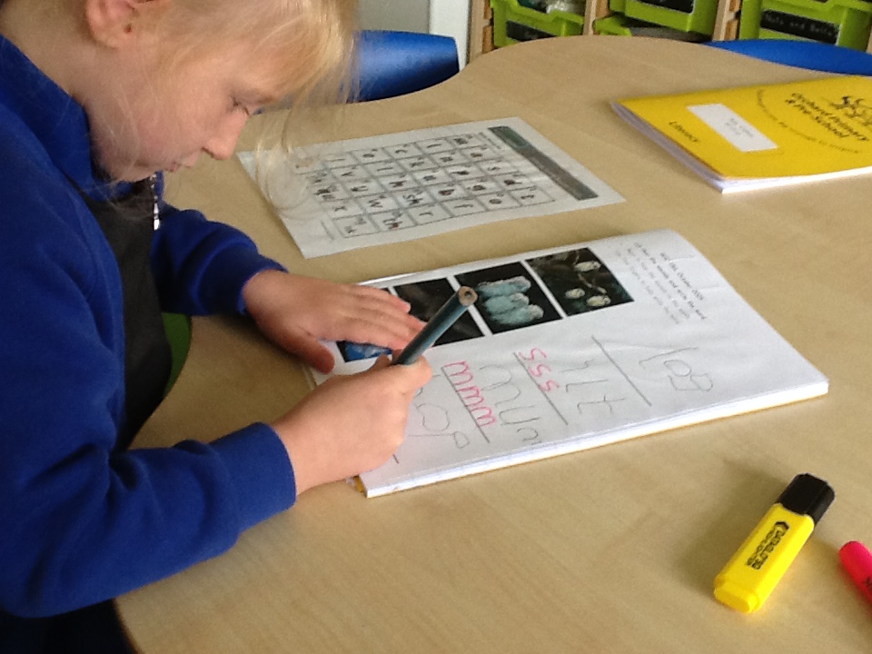 In phonics, we have been learning the sounds o-orange, c-caterpillar, k-kangaroo, u-umberella and b-boot. We have also been finding the intimal sound of words. We matched the pictures to the sound card. "t is for tiger" - Ellie.