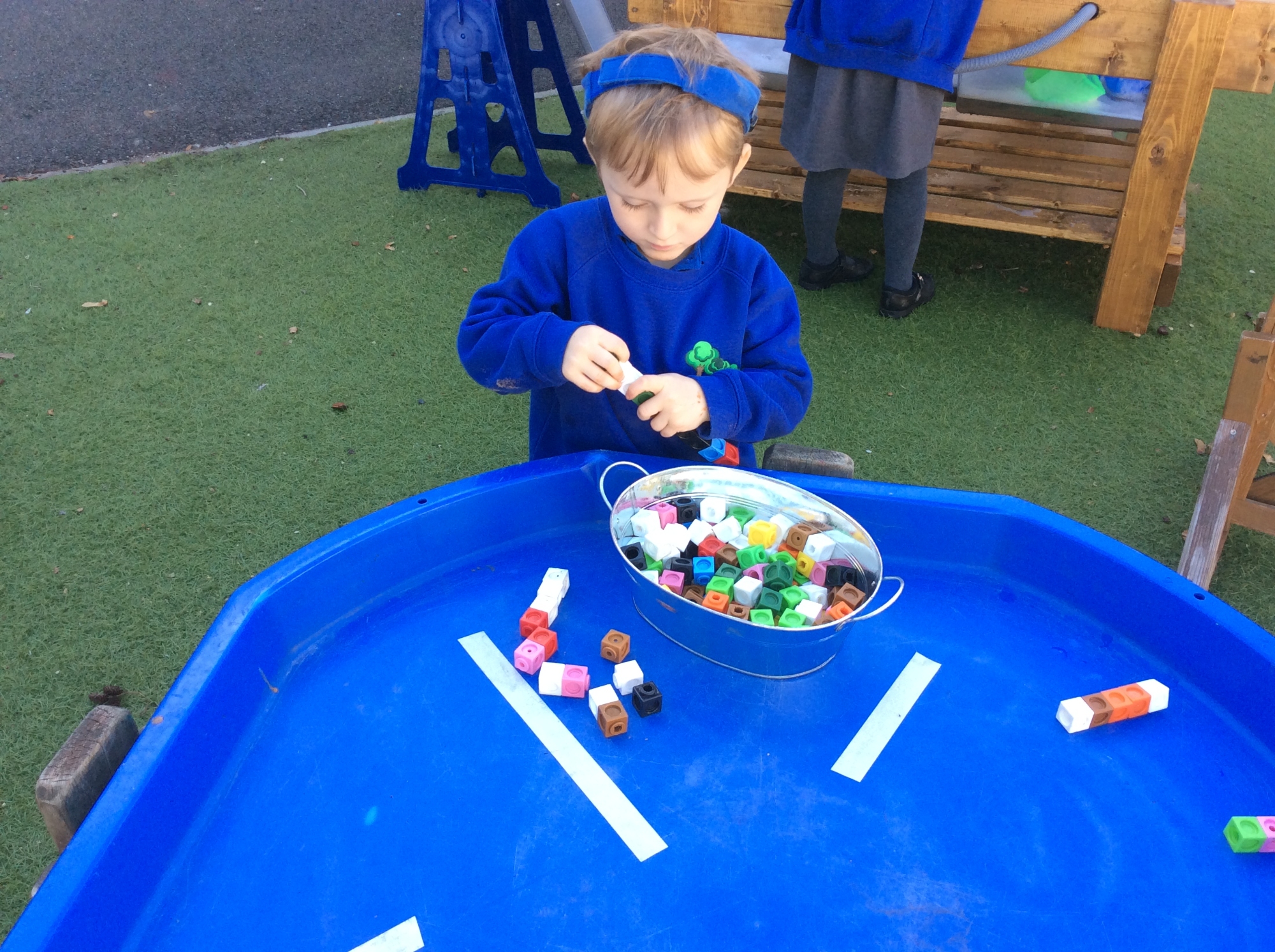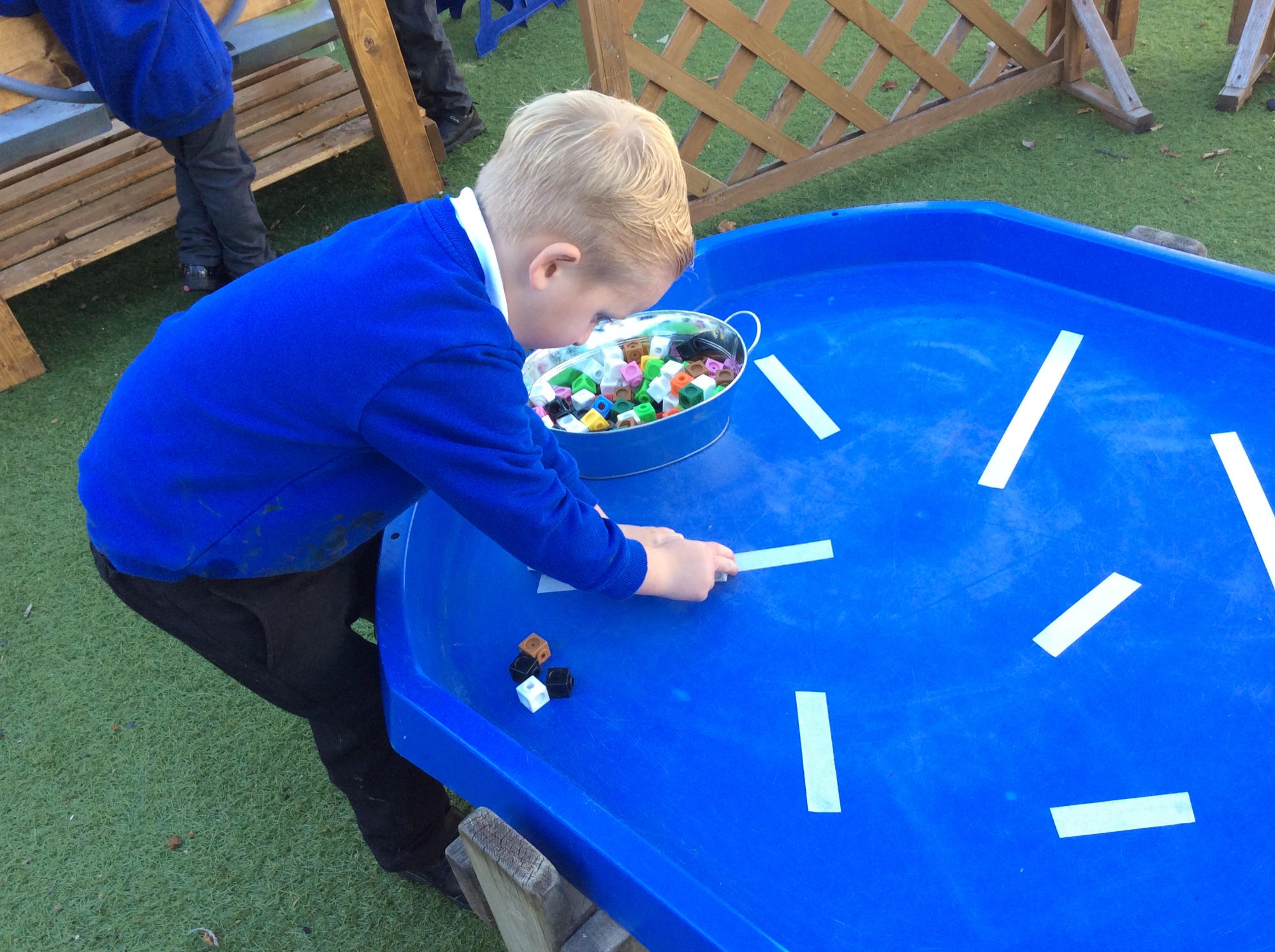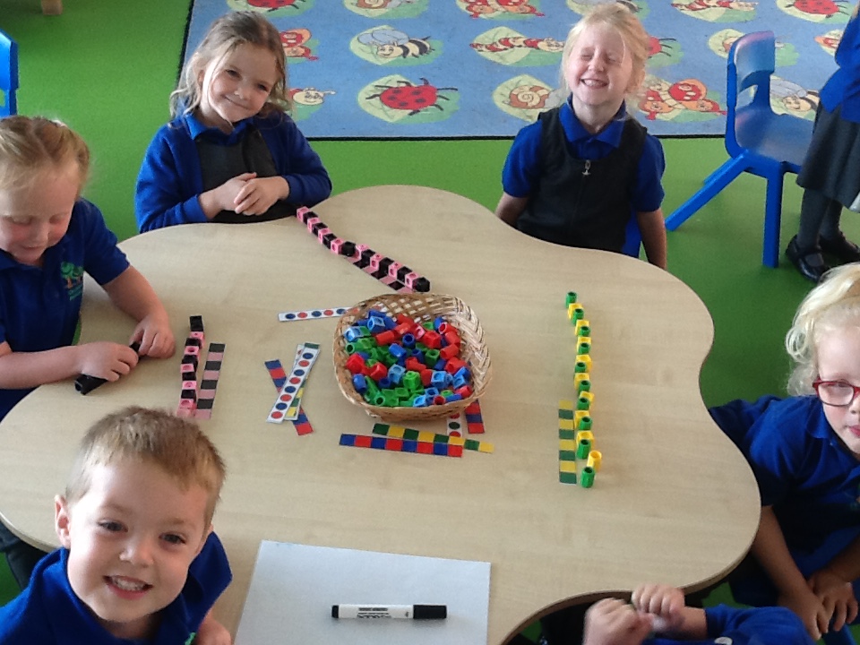 In Maths, we have been order numbers to 5 - counting the objects and putting the numbers in order. We have also been measuring the lines using cubes and counting the how many cubes there are altogether.