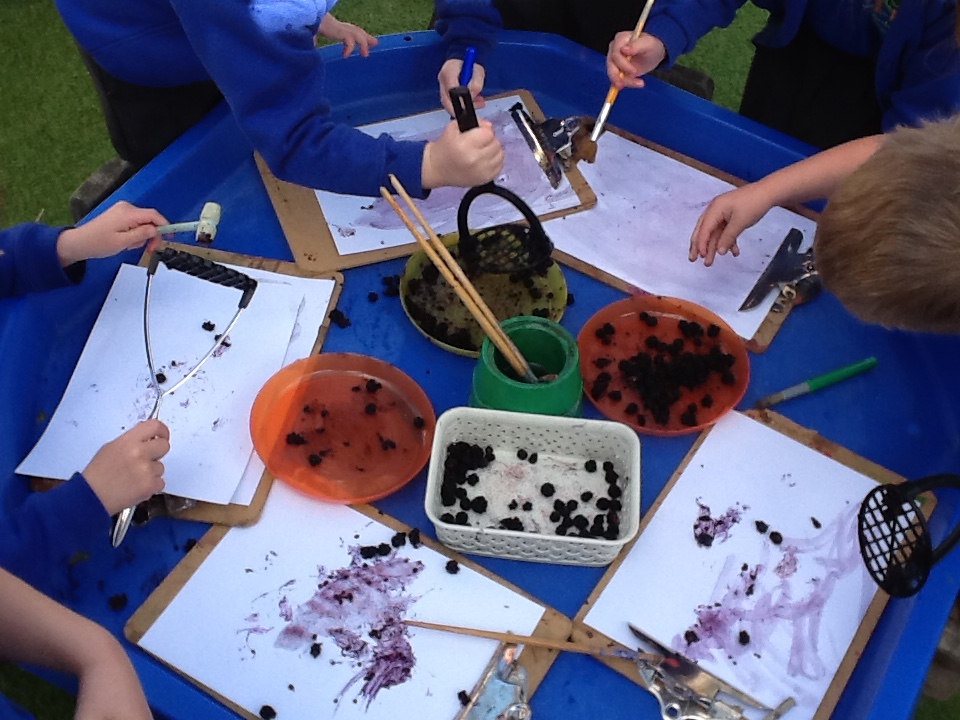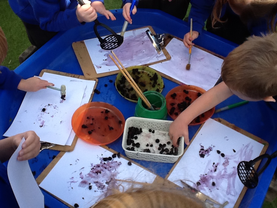 We have continued to learn about Autumn – this week we loved blackberry painting! Squashing the blackberries to make paint and smashing the blackberries with a hammer to make blackberry splats. We also loved our Autumn playdough flavoured with cinnamon.