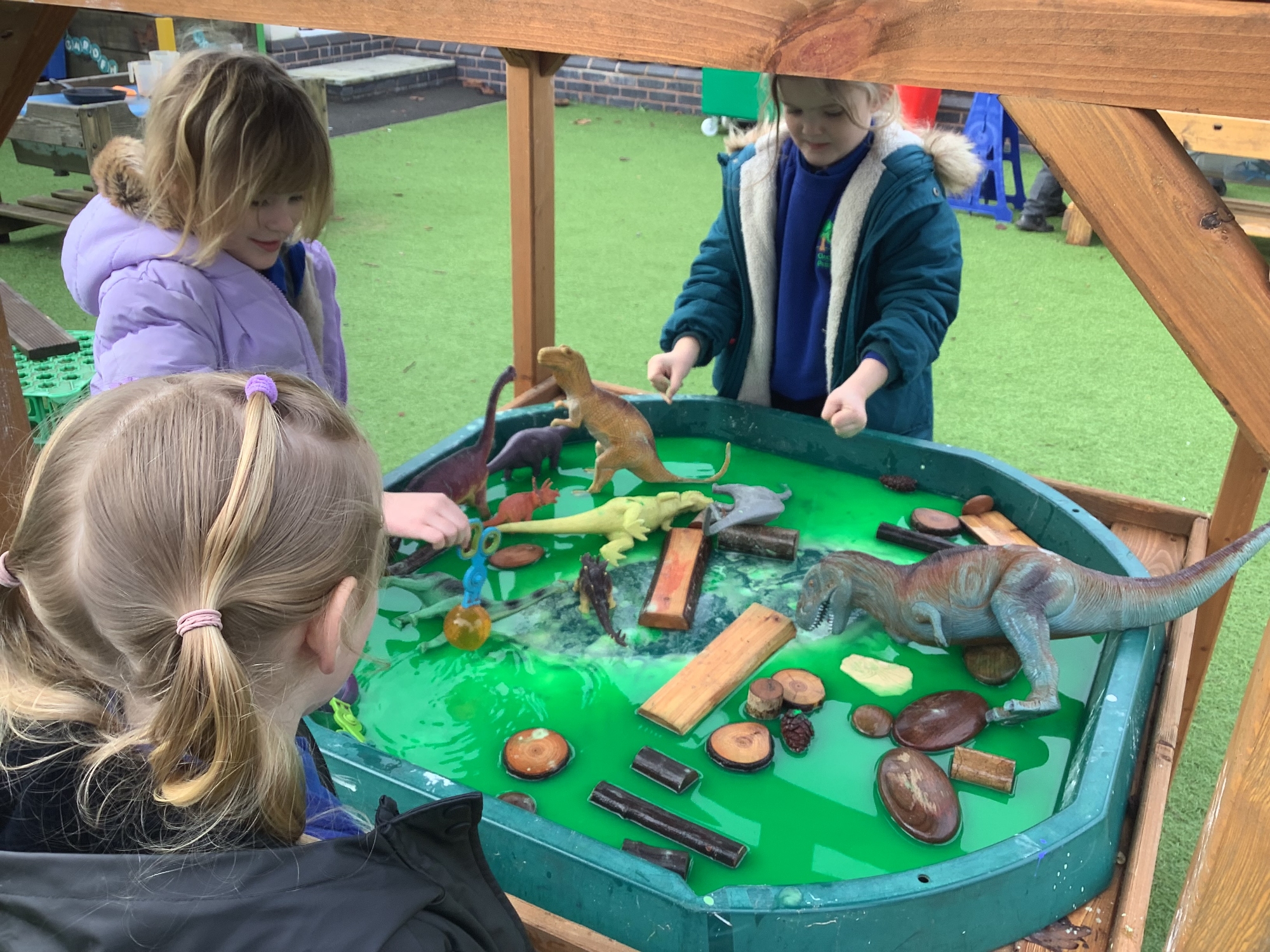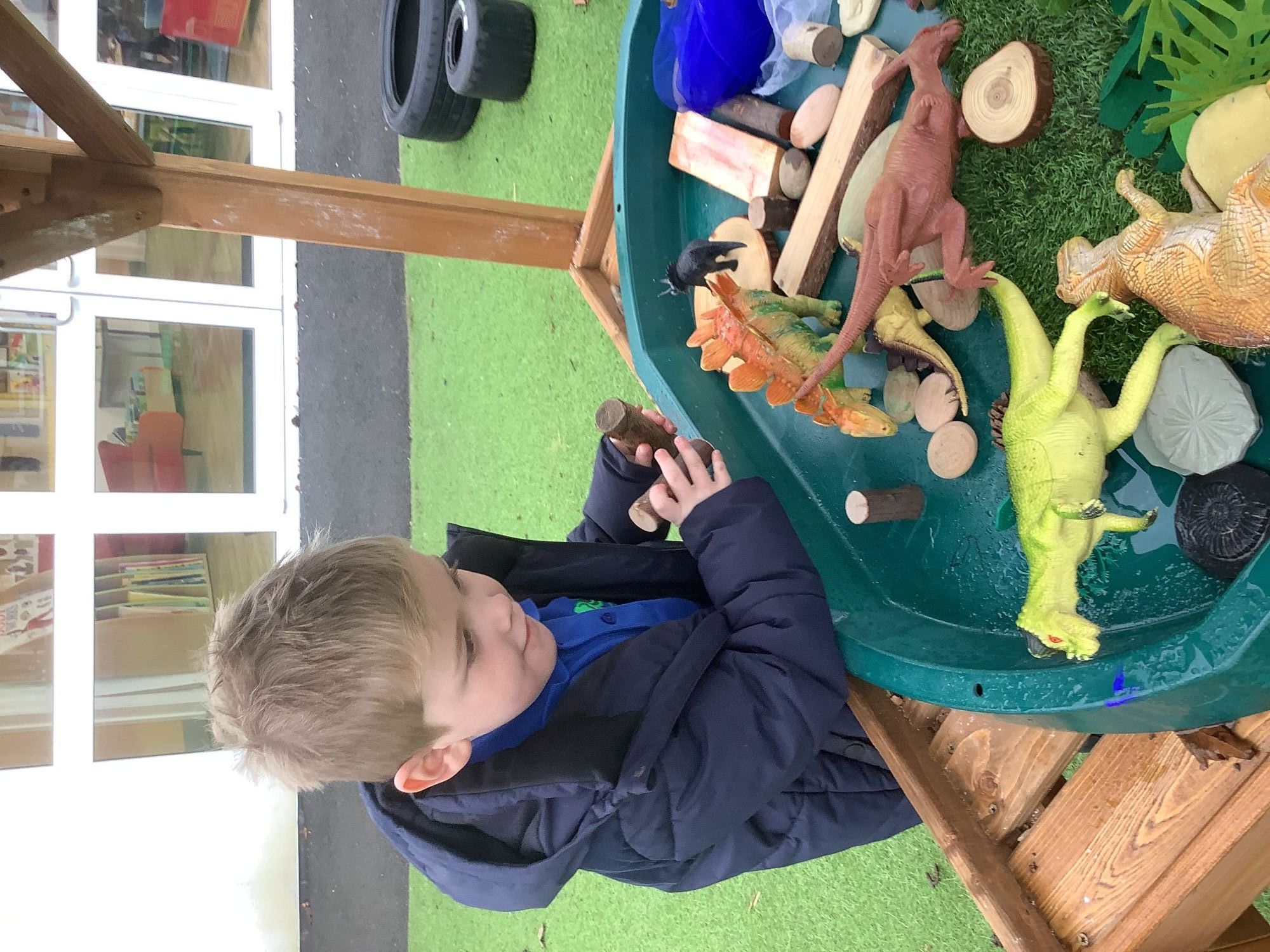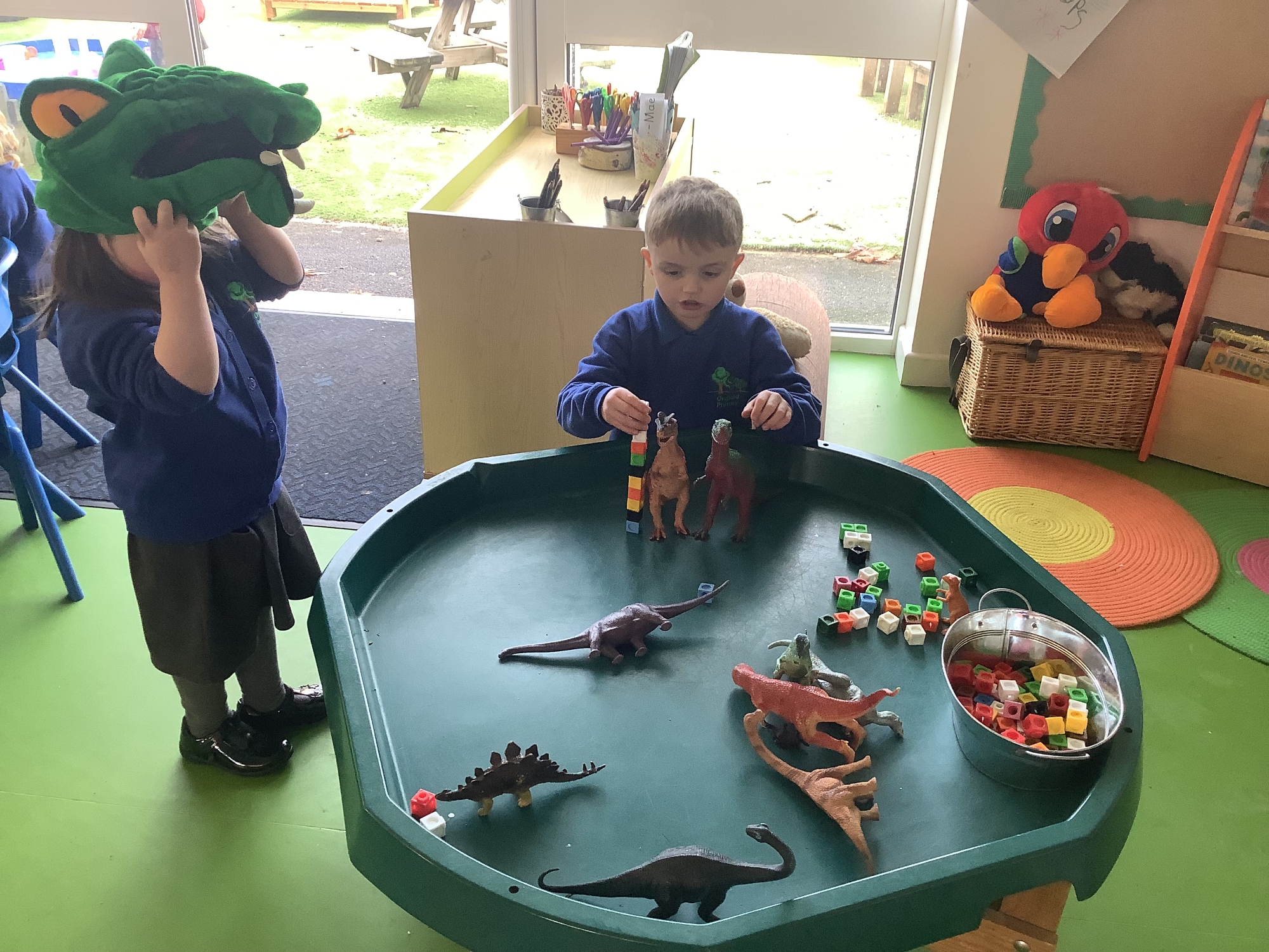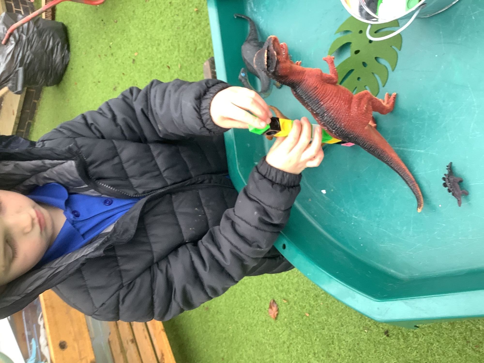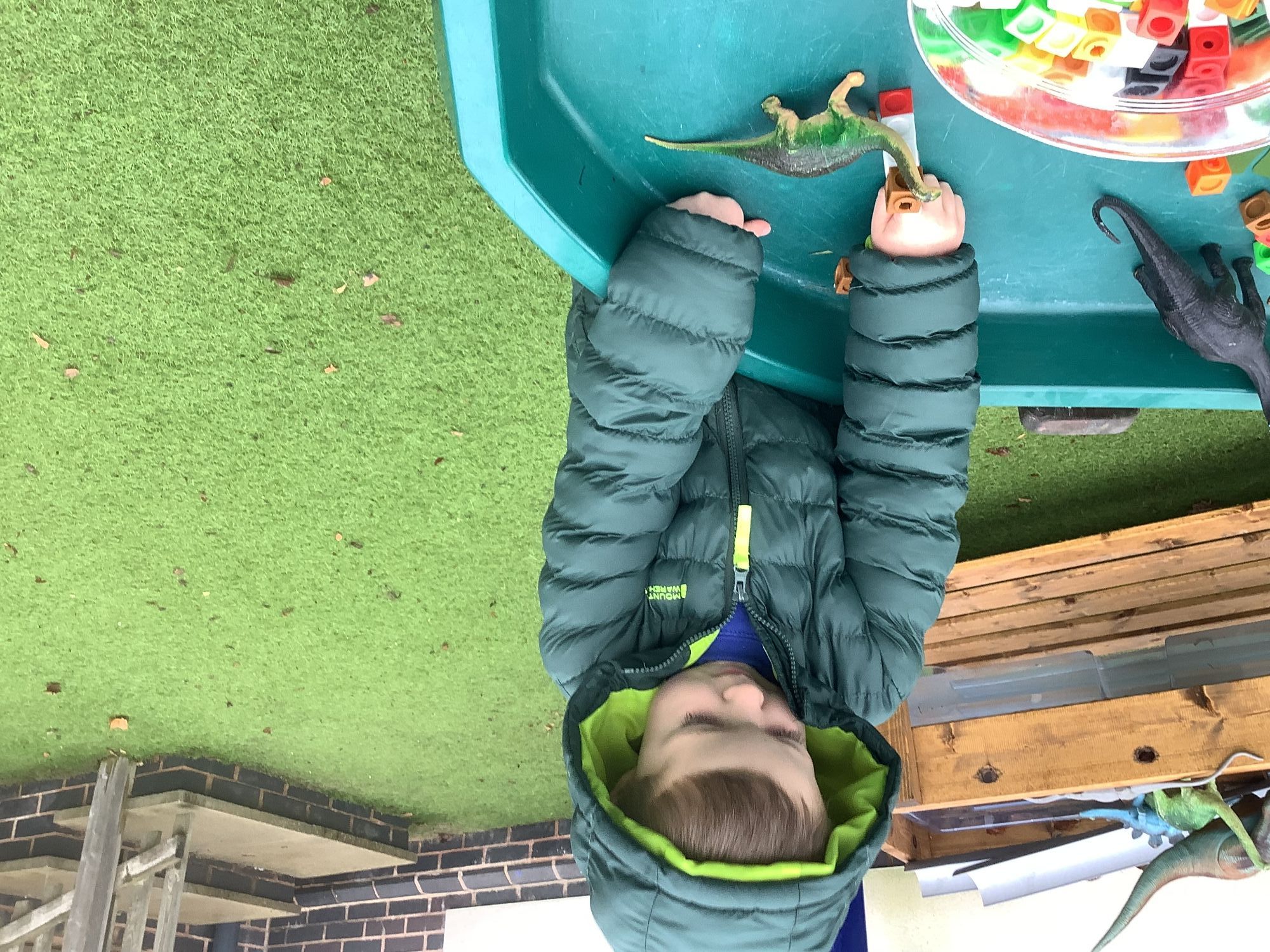 In the Reception garden, we loved playing with the oobleck dinosaur swamp! Some children also build a volcano using blocks!