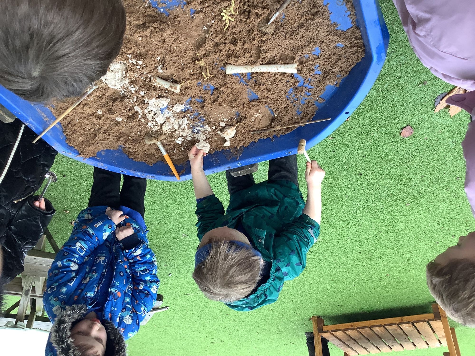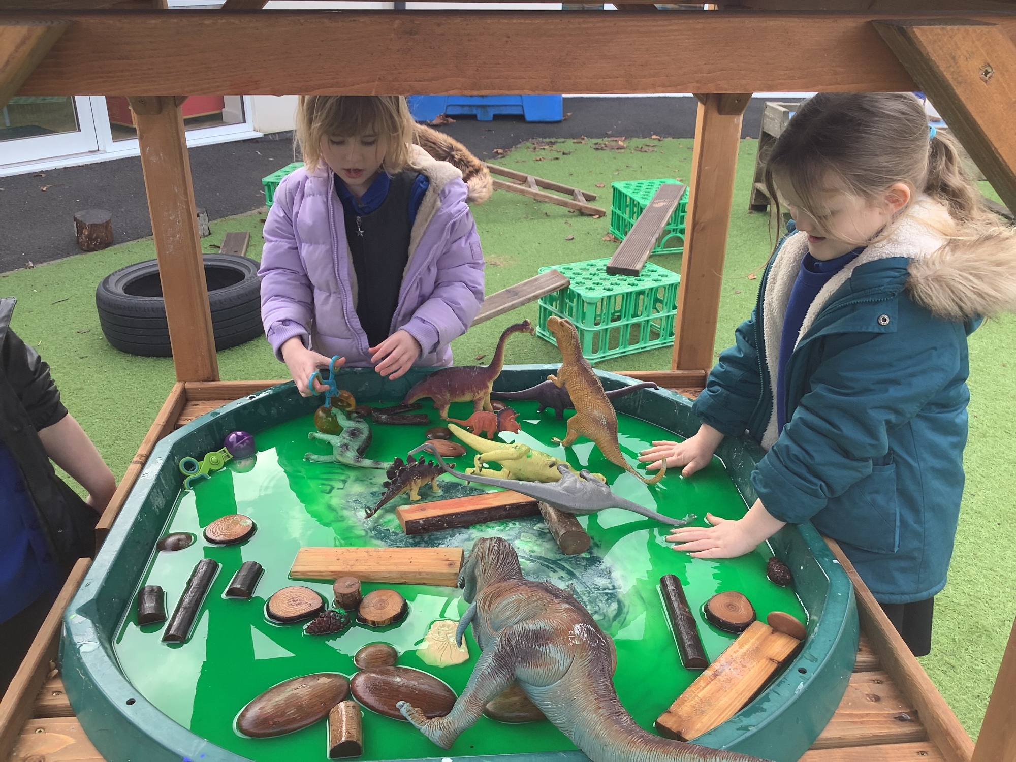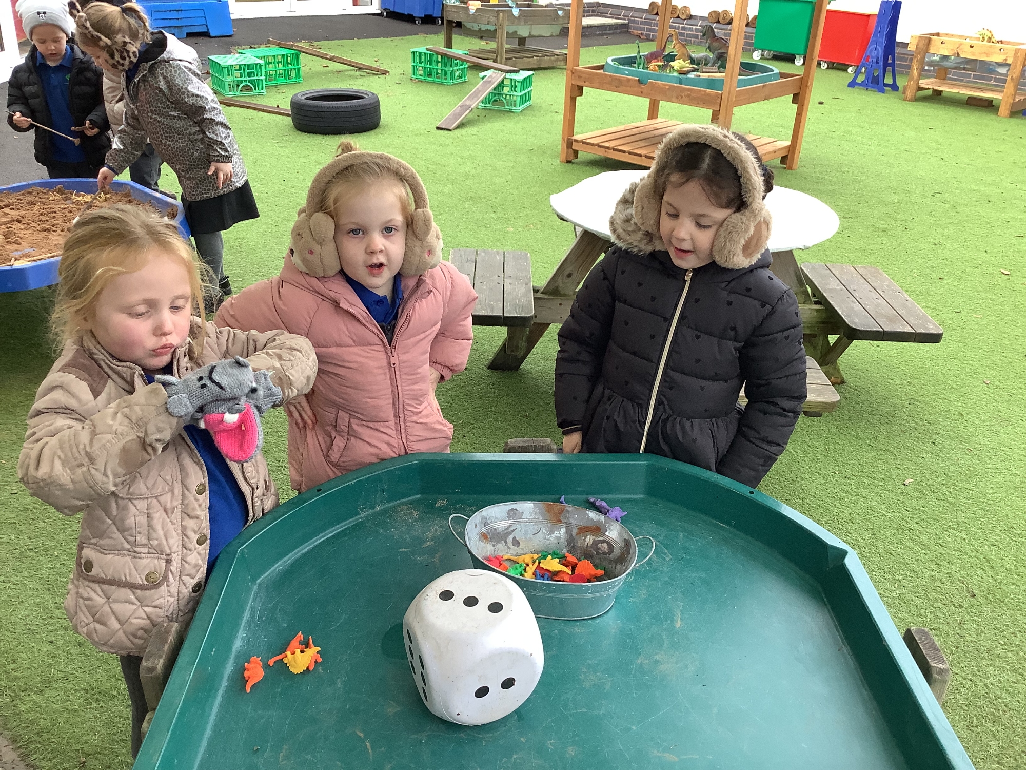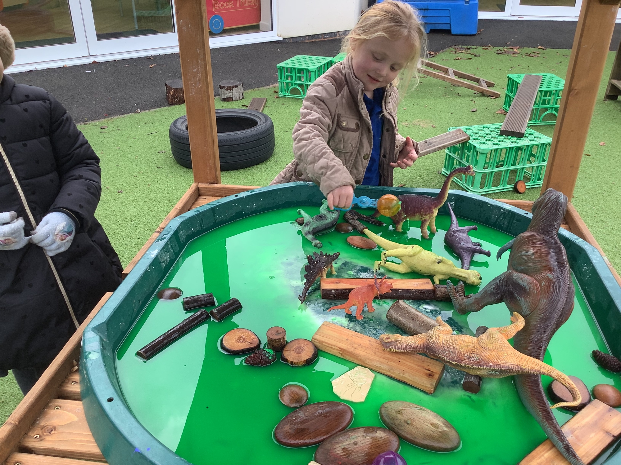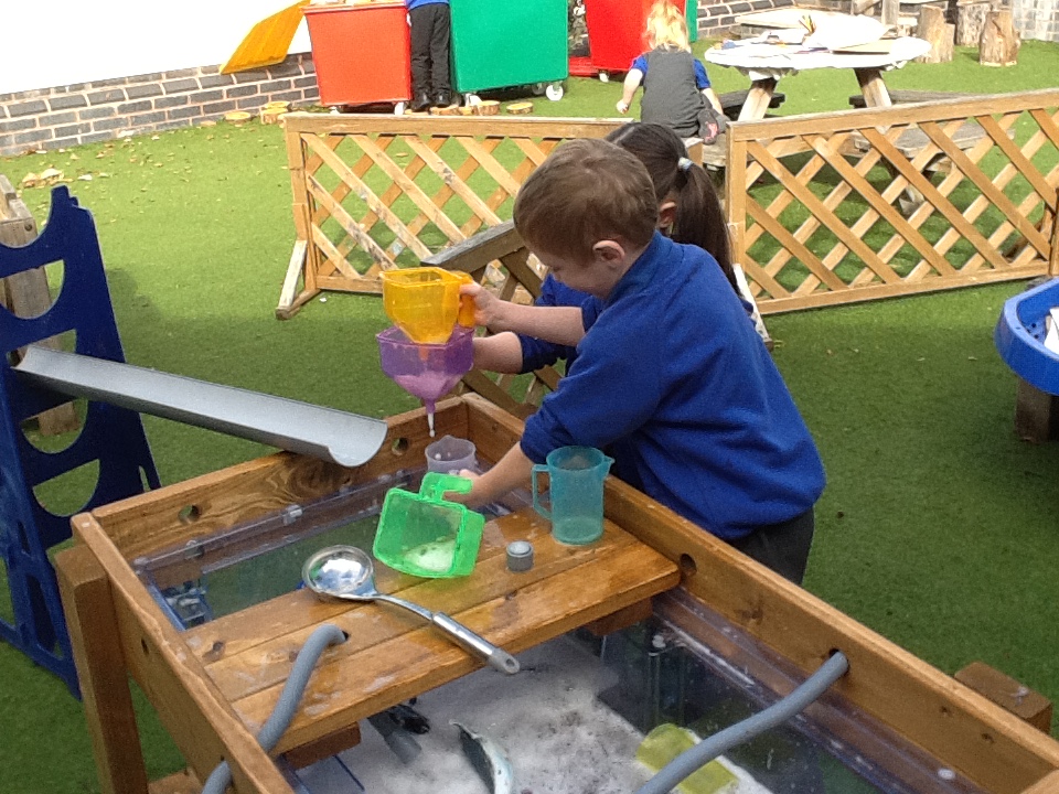In the Reception garden, we loved playing with the oobleck dinosaur swamp! Some children also build a volcano using blocks!
