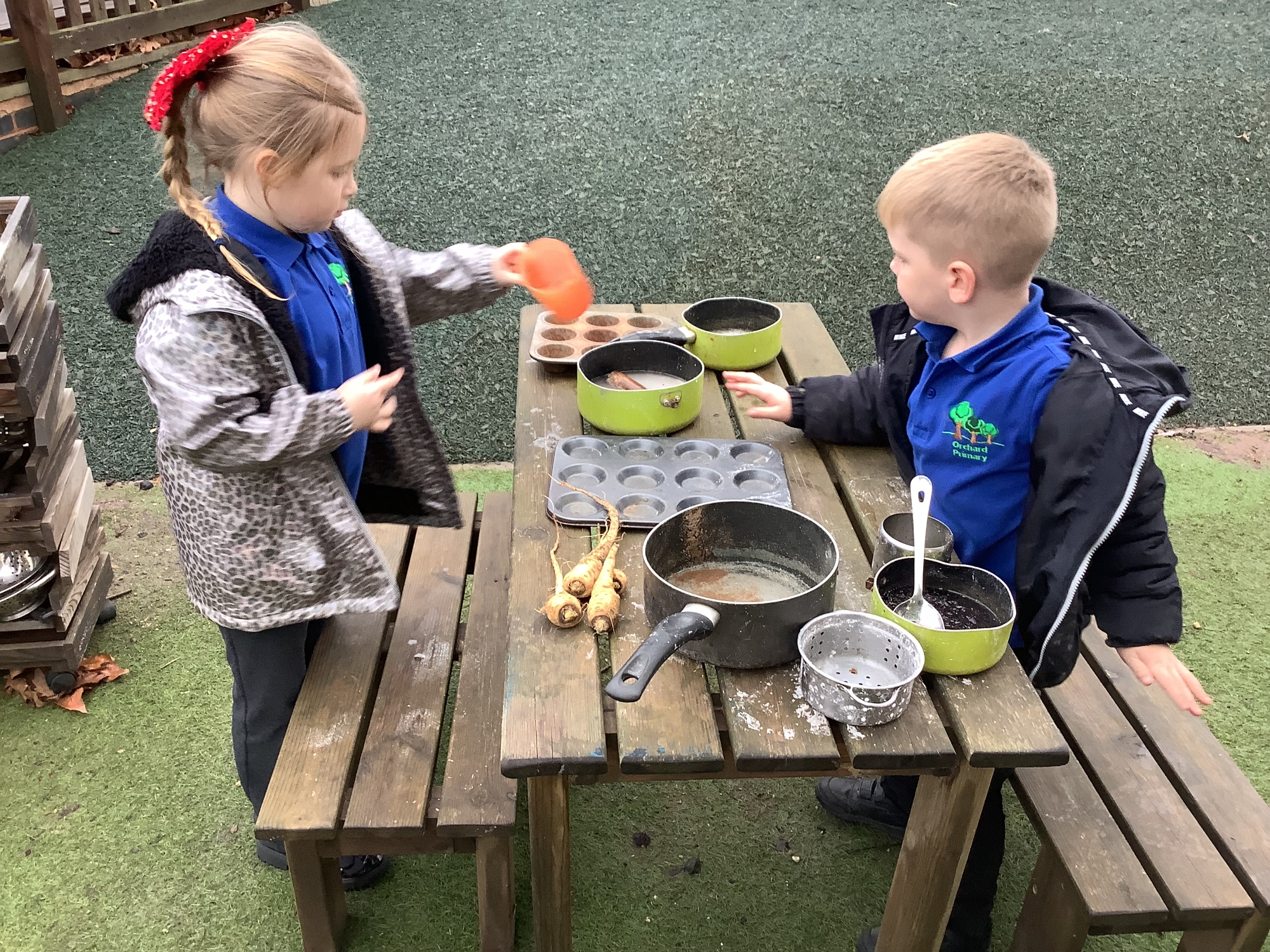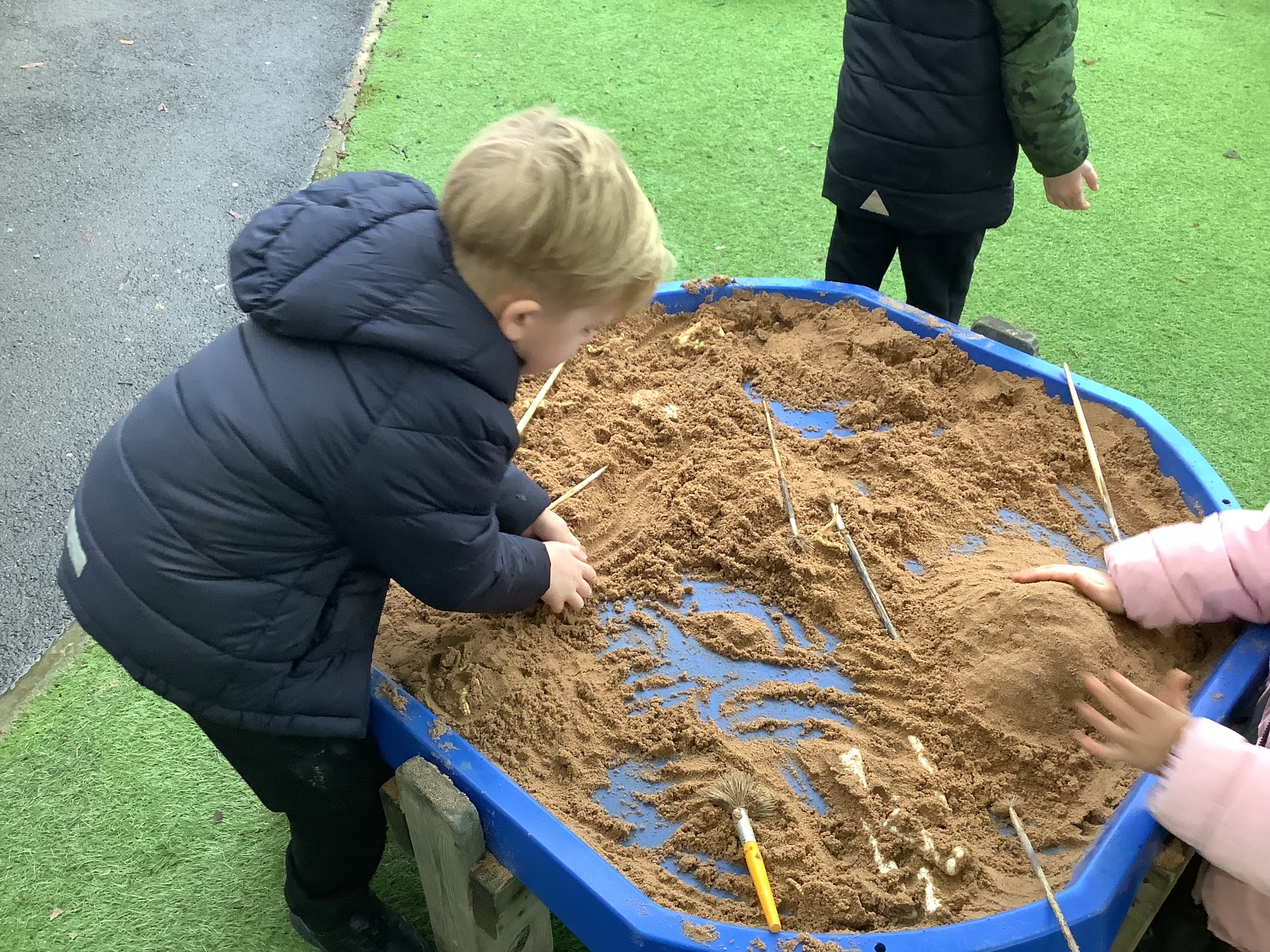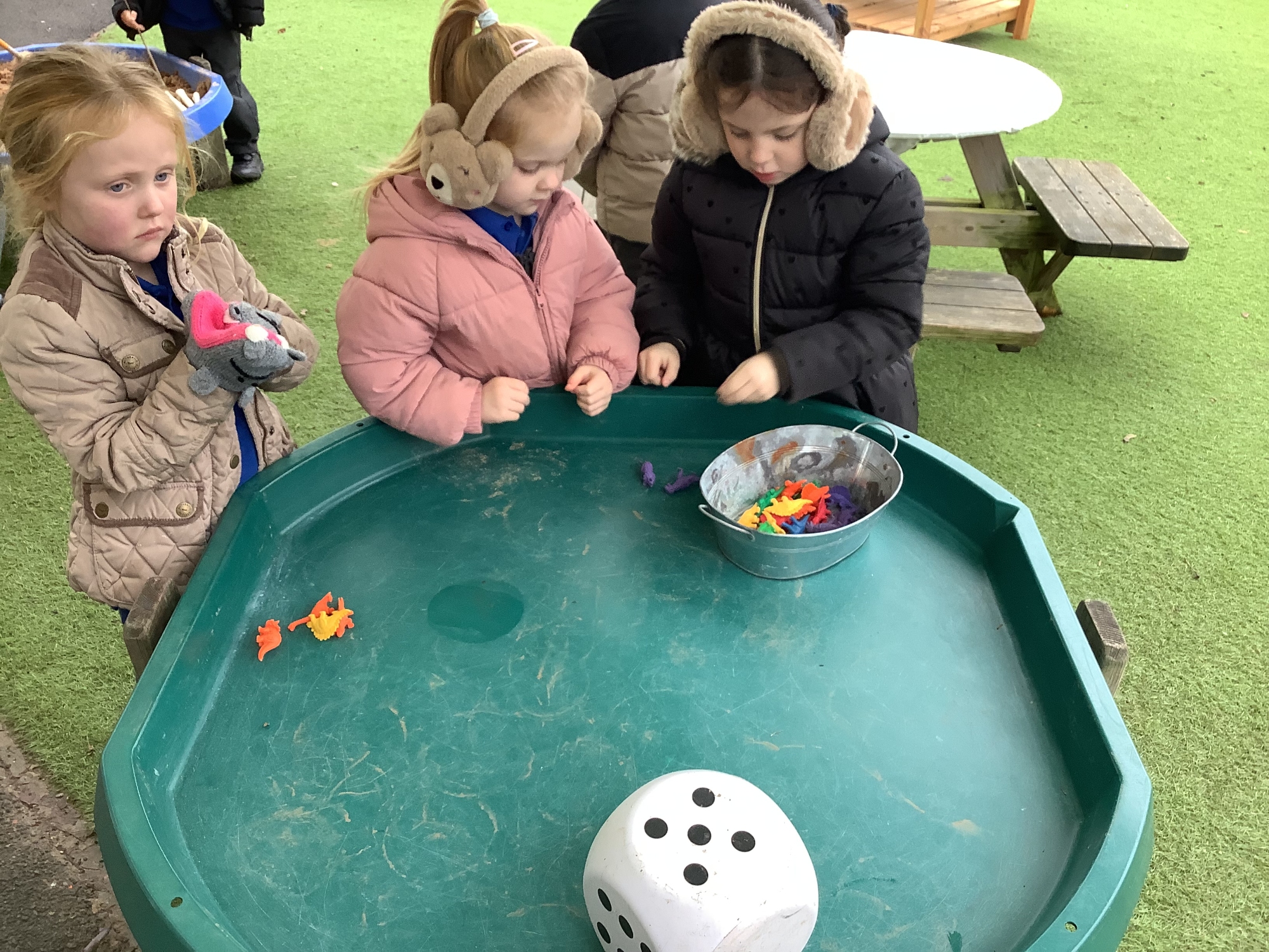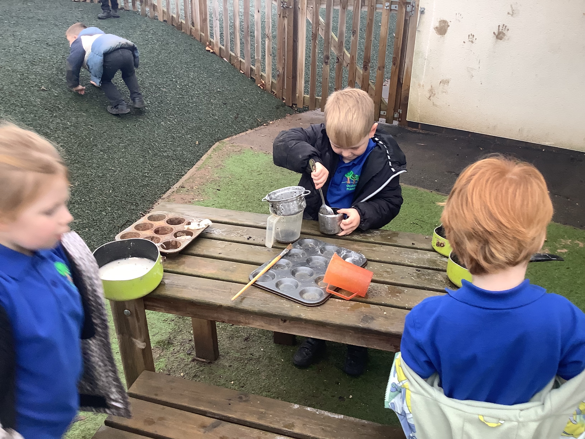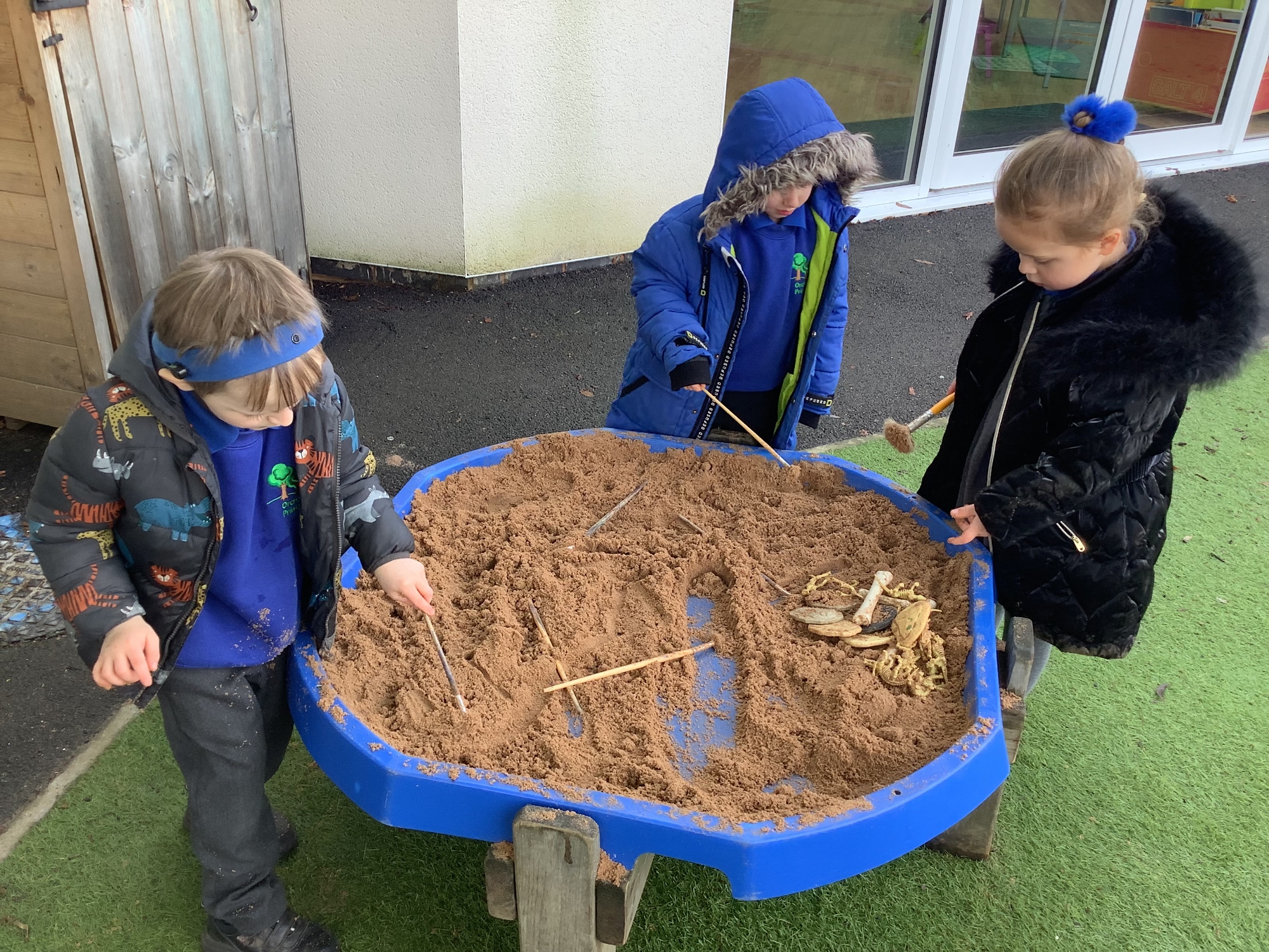 In the Reception garden, we loved playing with the oobleck dinosaur swamp! Some children also build a volcano using blocks!