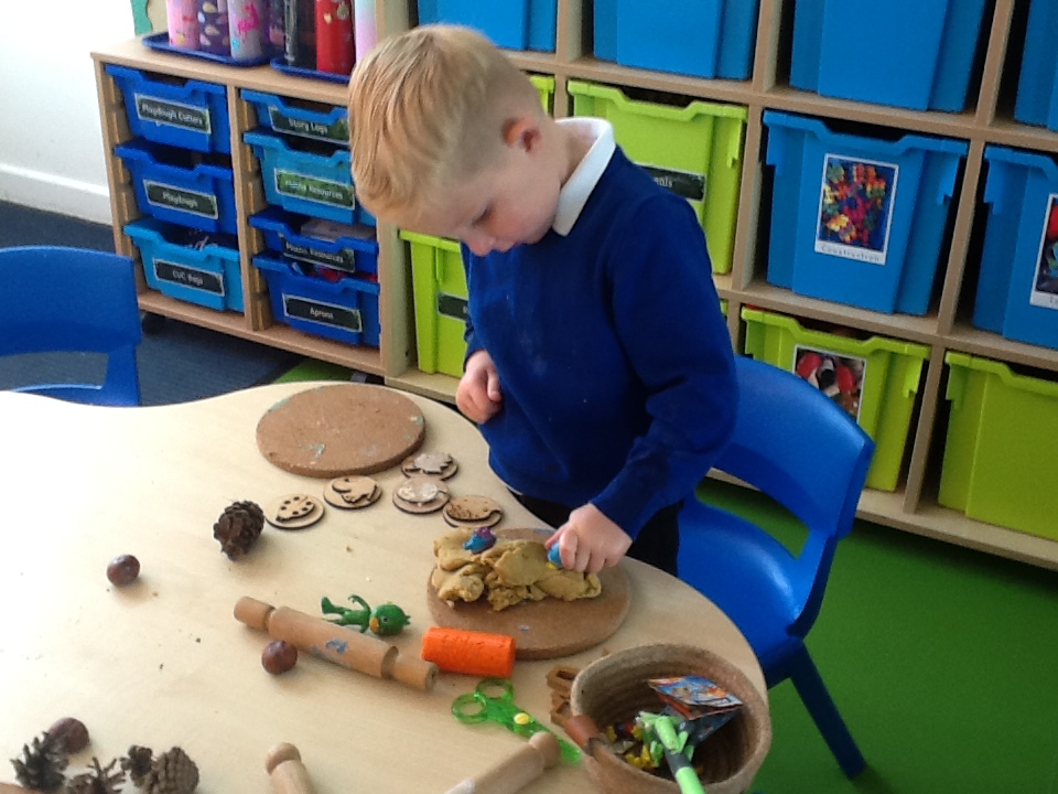 We have also continued to focus on writing our names. We made our names out of conkers. We then copied the names onto paper.