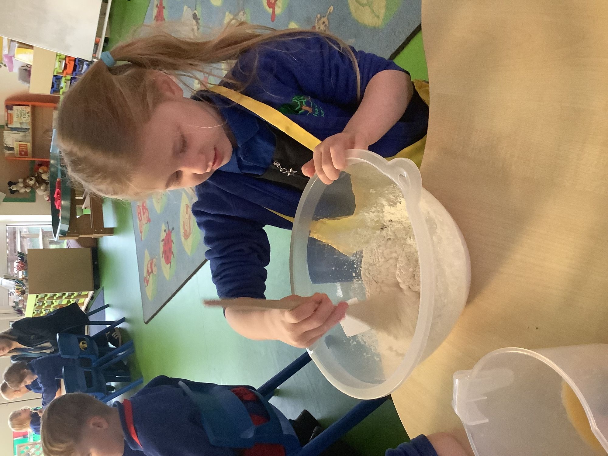 In Literacy, we have started to learn how to write our names or the first letter of our names. We have also started phonics this week and have learnt the sounds m, a, s, d and t! We drew the sounds with paintbrushes in the salt tray.
