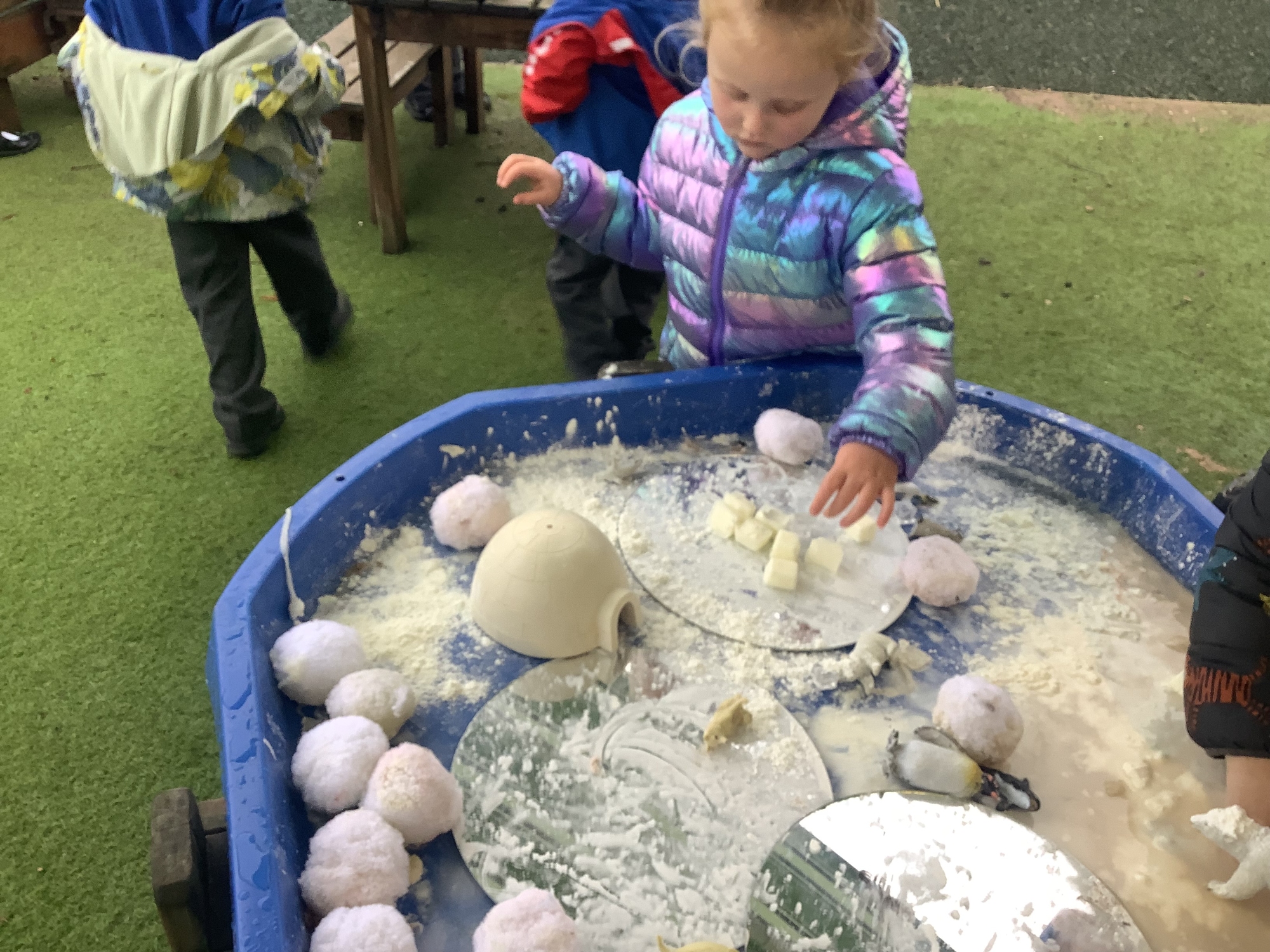 This week we have been learning about the seasons - Spring, Summer, Autumn and Winter. We discussed what we might see in different seasons. We loved exploring the four seasons tuff tray!