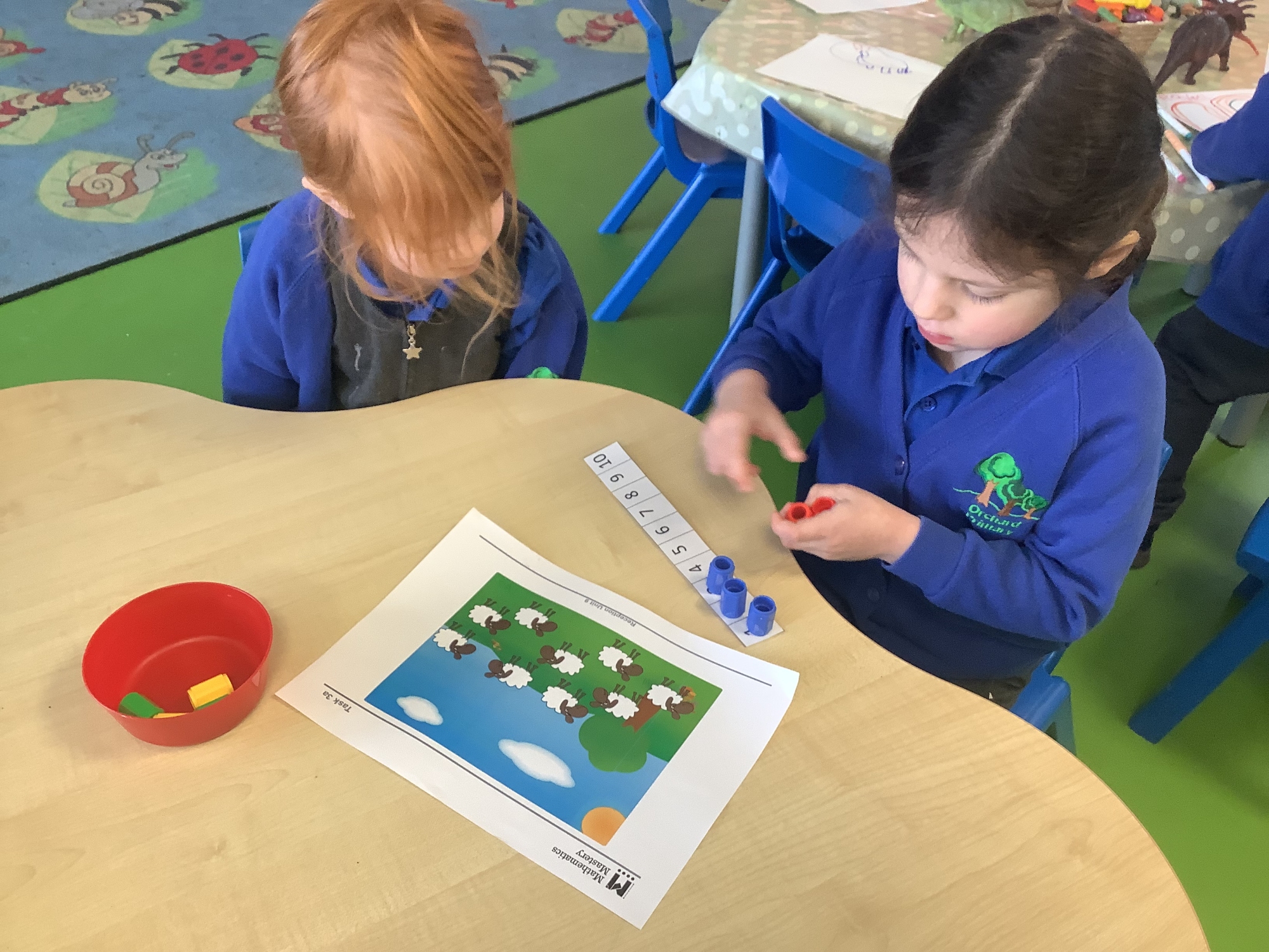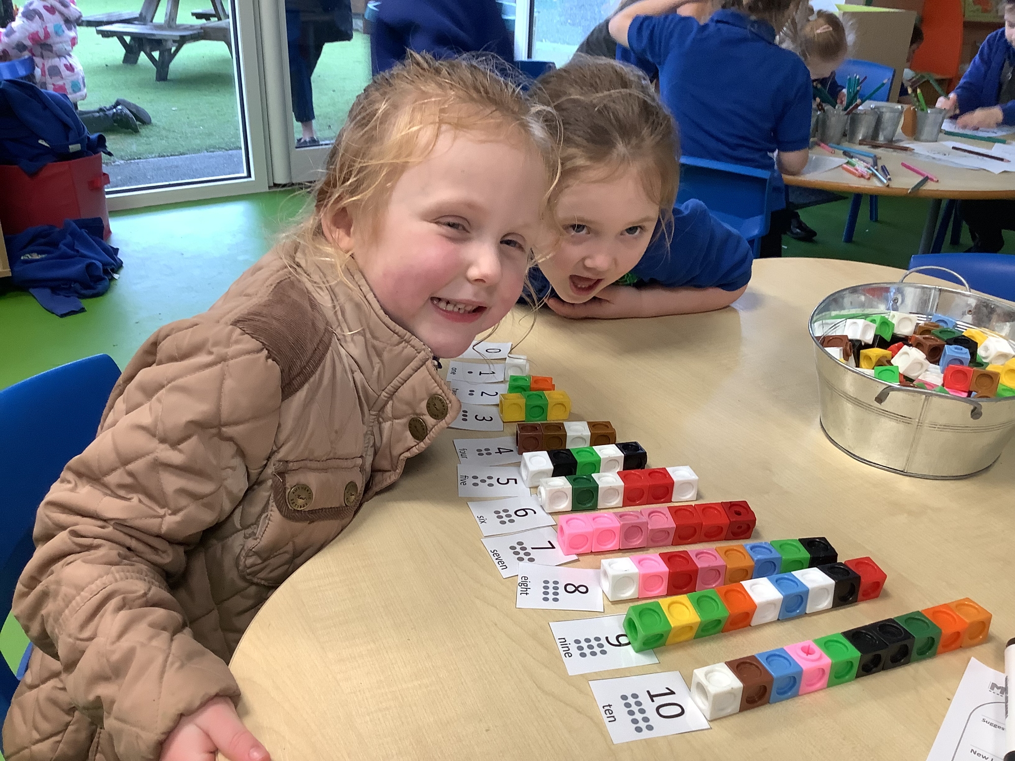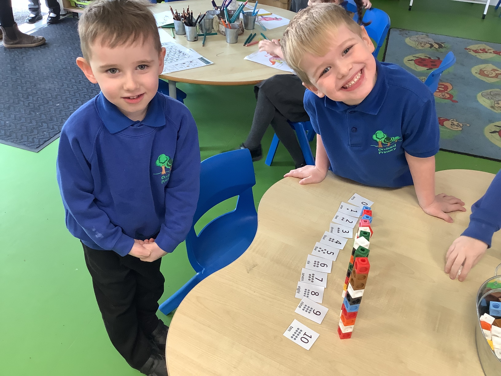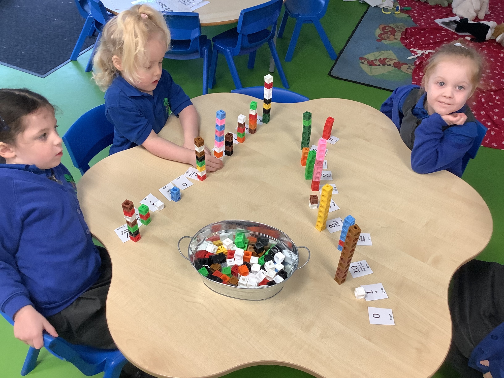 In Maths, we have been exploring numbers within 15. We have counted numbers to 15 and created a representation of the number using blocks and bead strings. We also made the numbers 0 - 10 using blocks and put the numbers in the correct order.