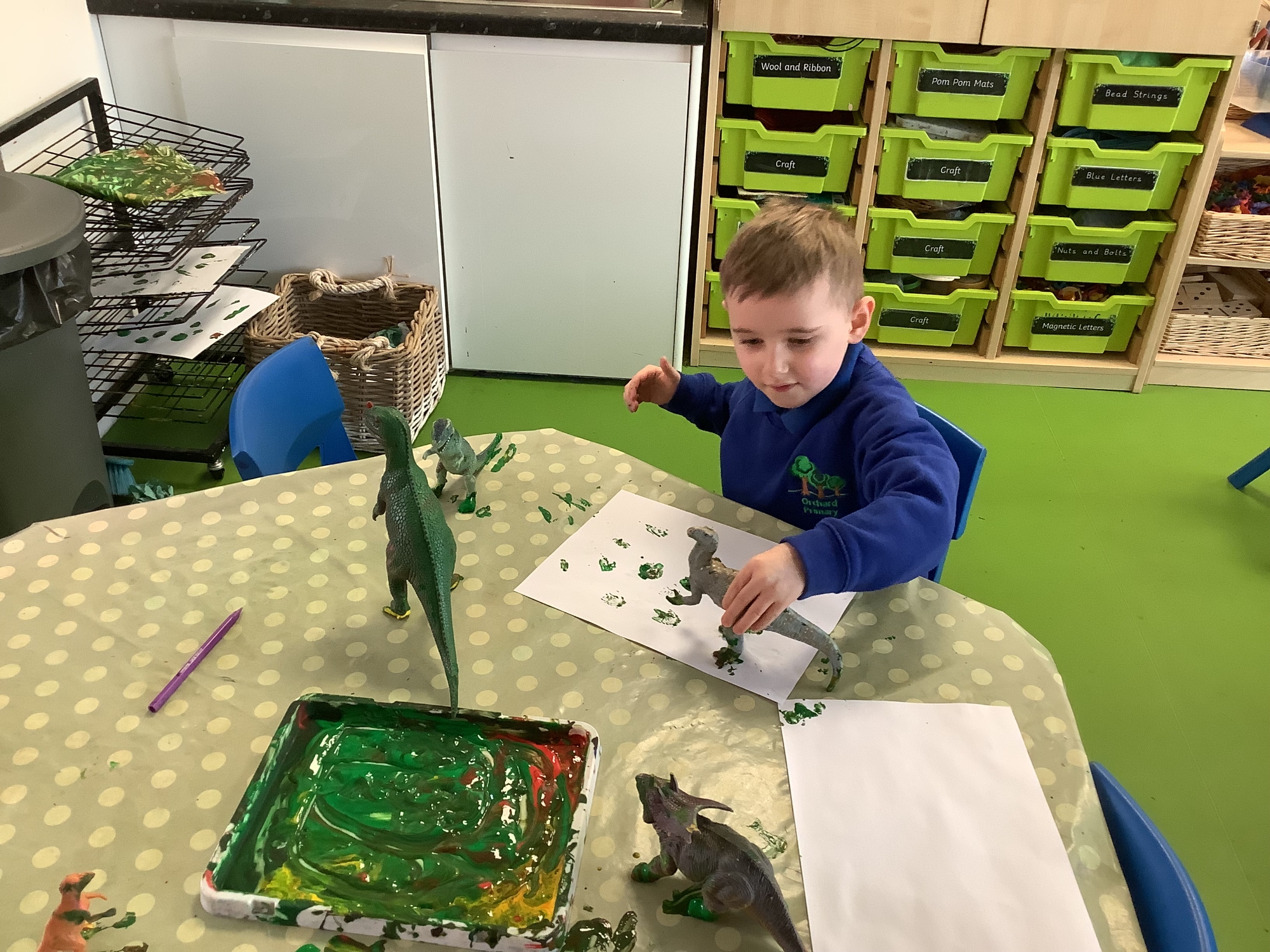 We also loved digging for dinosaur fossils in the sand pit and we have been exploring dinosaur prints using paint and playdough.