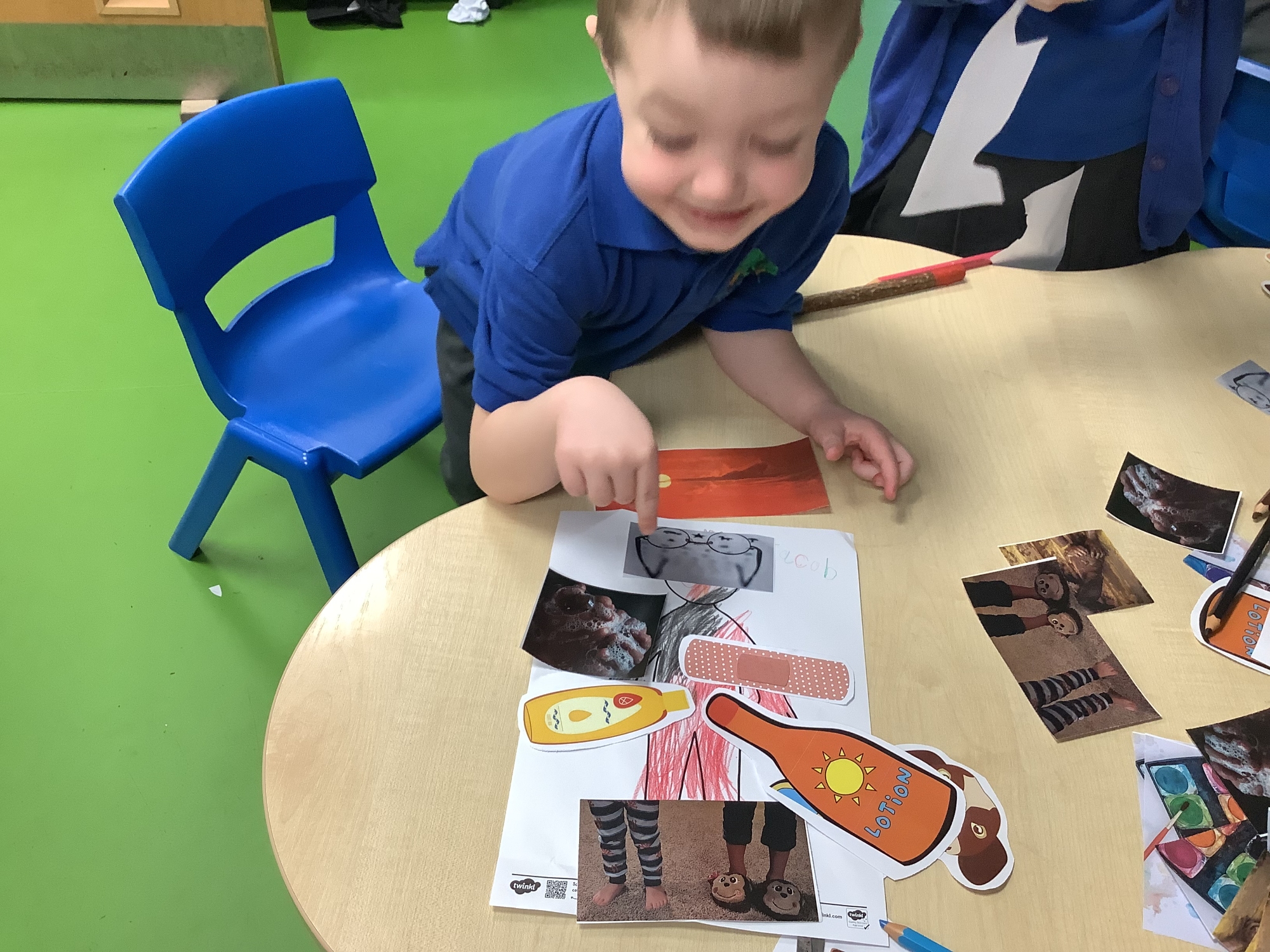 Our topic for Autumn 1 is 'All About Me' so in art this week we painted self-portraits, looking in the mirror to see out hair colour, skin colour and eye colour. We also drew pictures of and talked about the family that we live with.