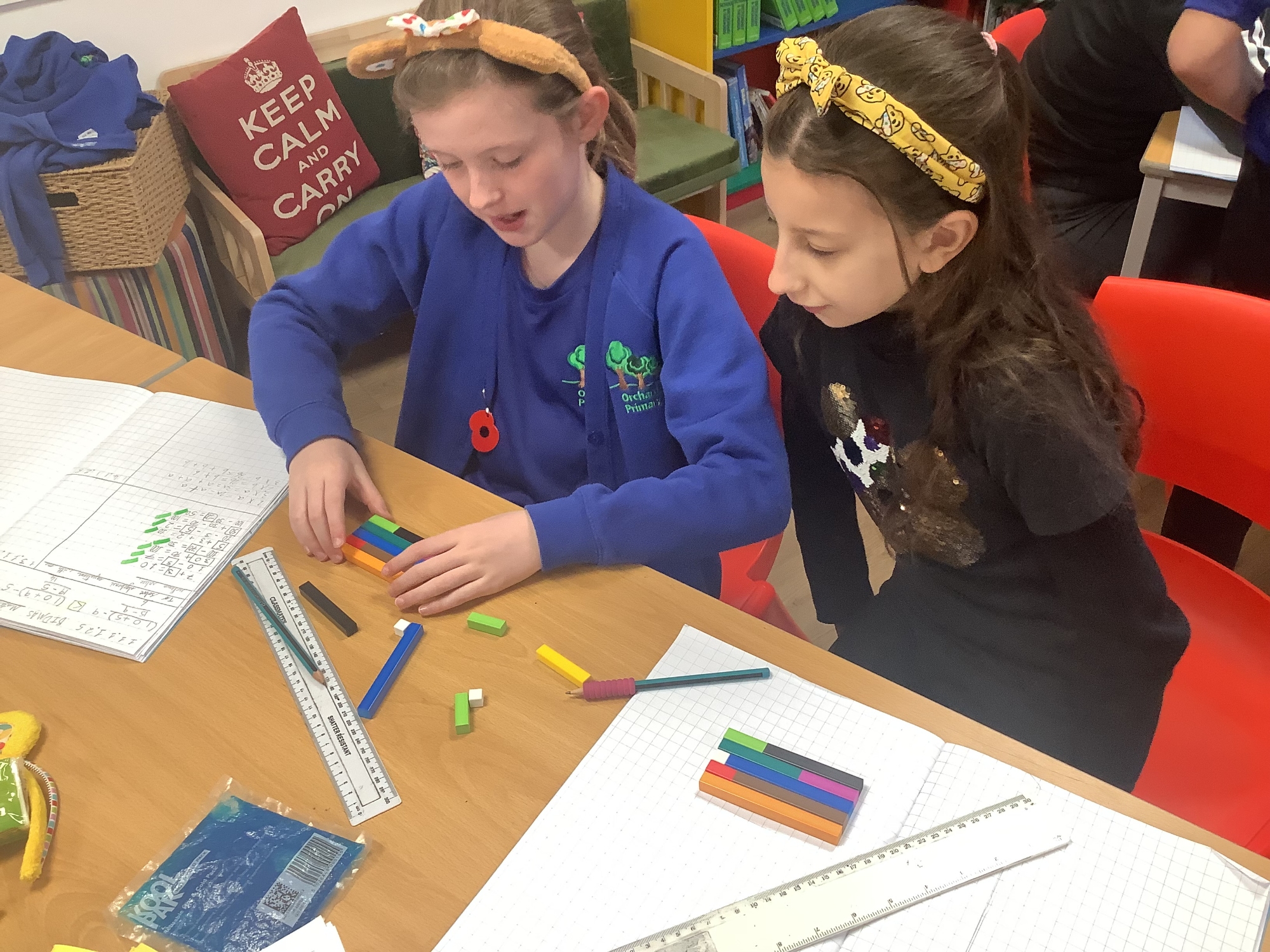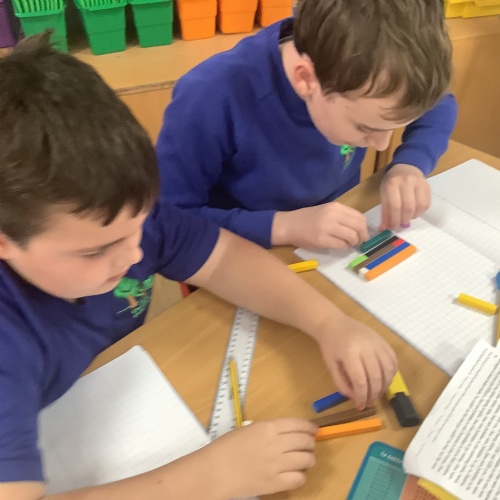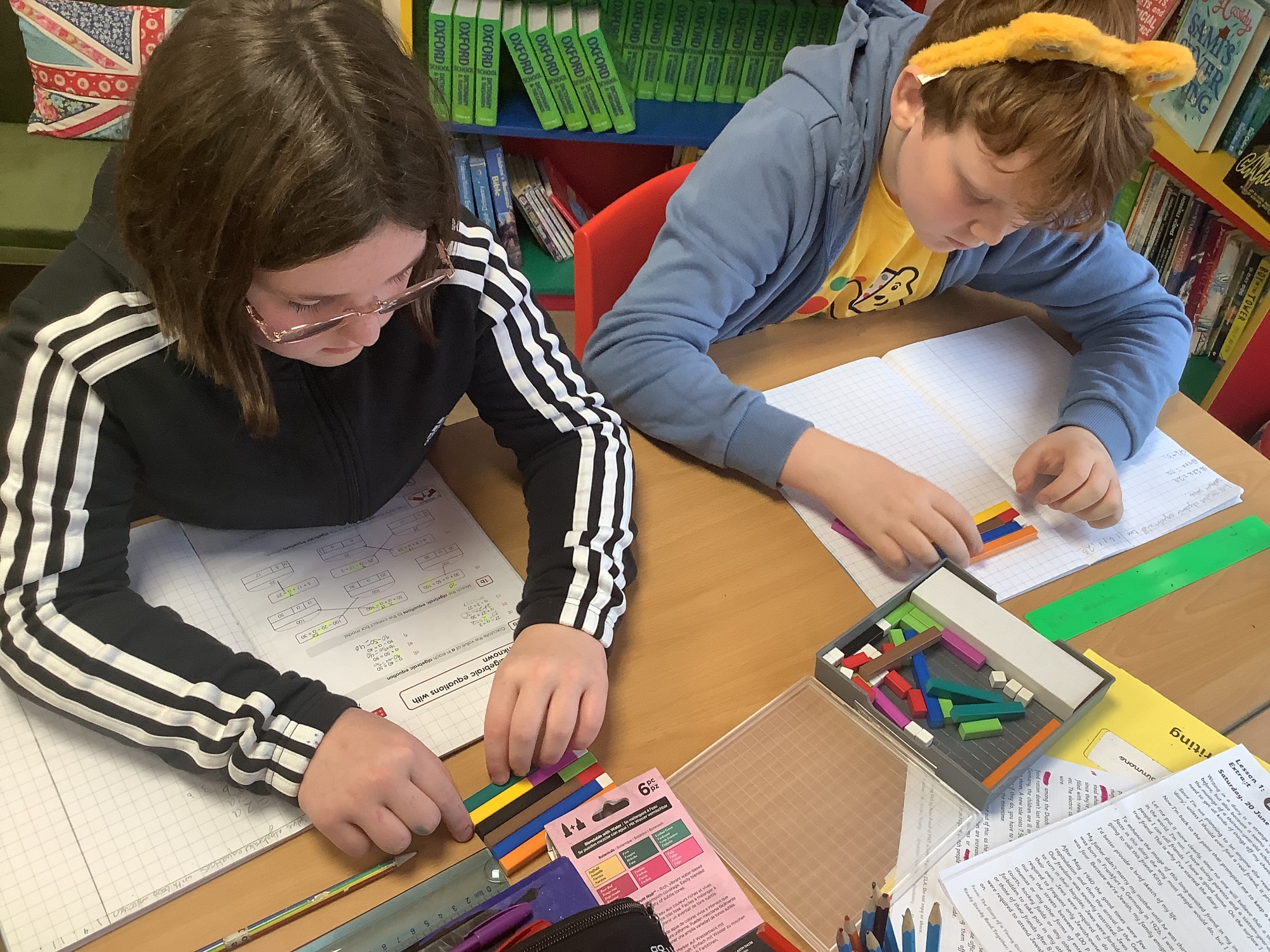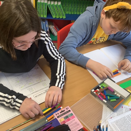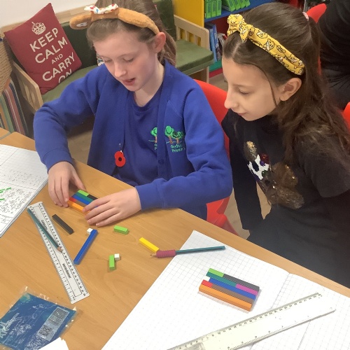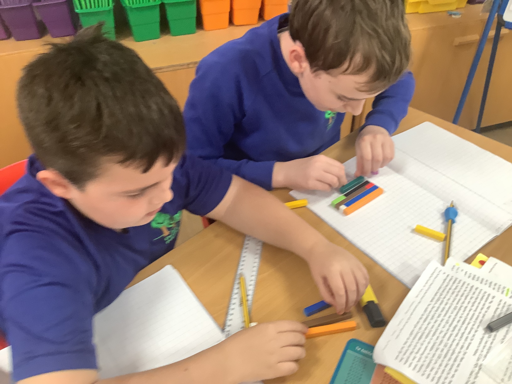 Using the Cuisenaire rods in Maths to support our algebraic equations.