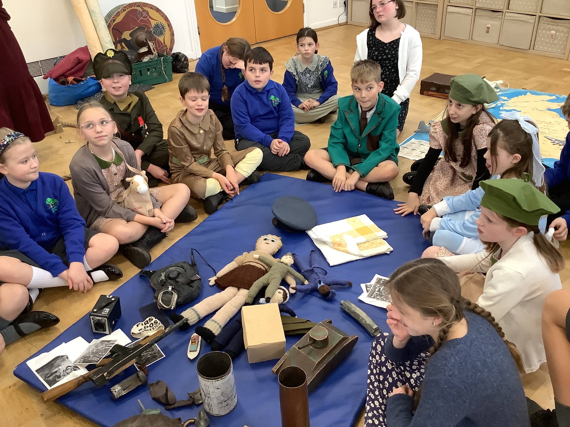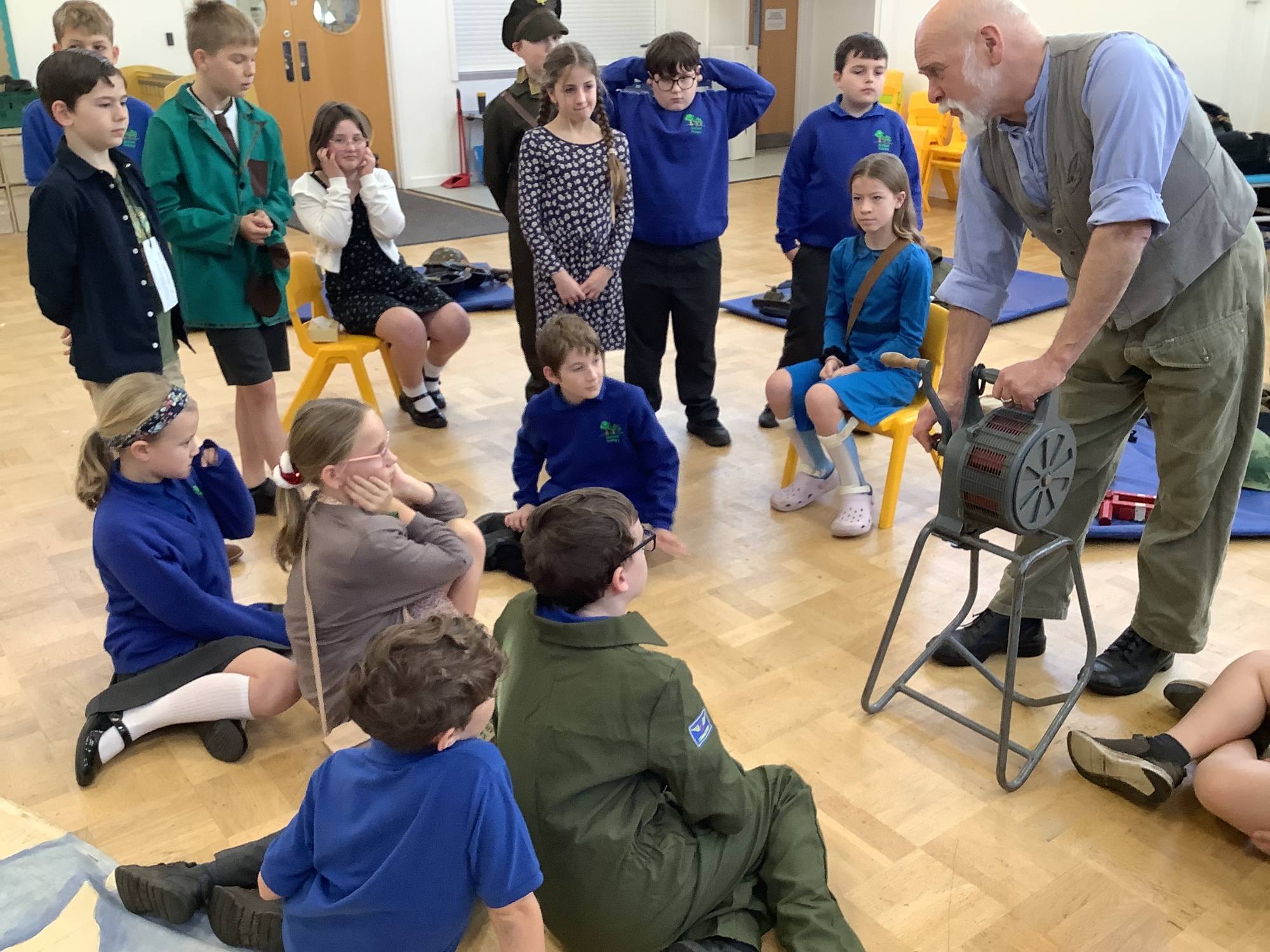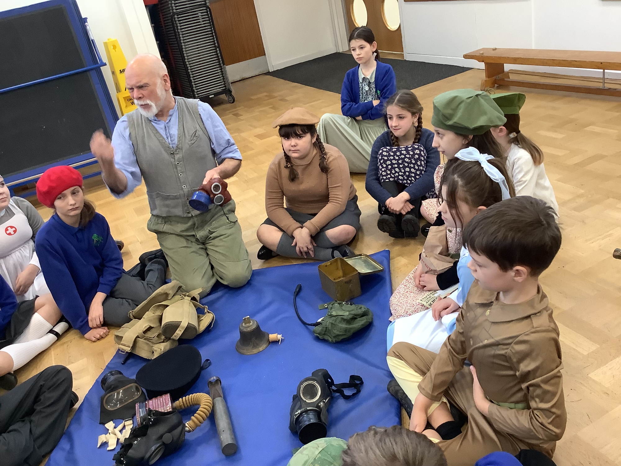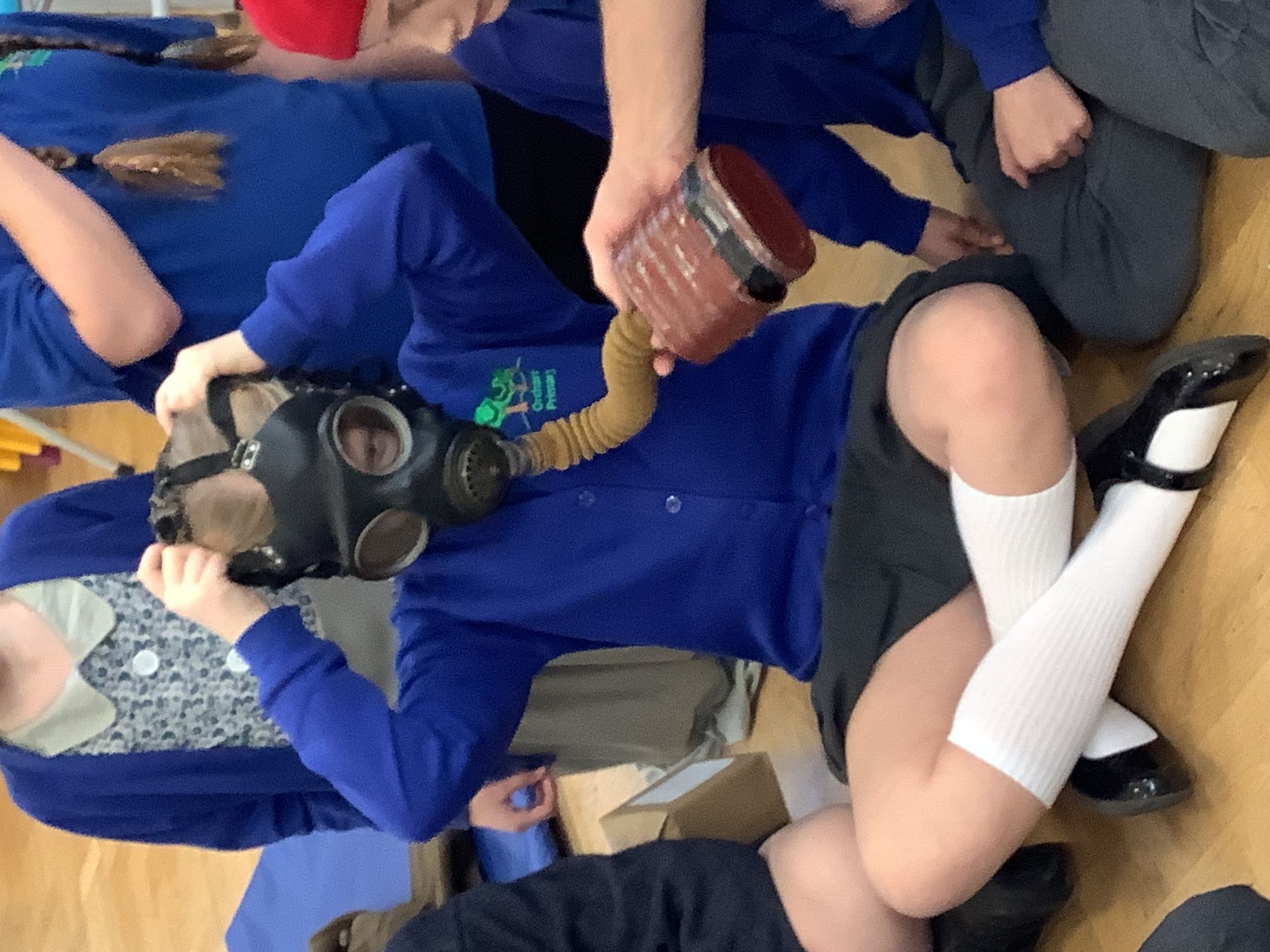 Today we had a visit from the History Man who shared lots of artefacts and knowledge about World War 2 with us. We tried on military outfits, gas masks and even tried to put out a fire using a pump hose! Seeing real artefacts from history was exciting and gave us a greater understanding of this period of history.