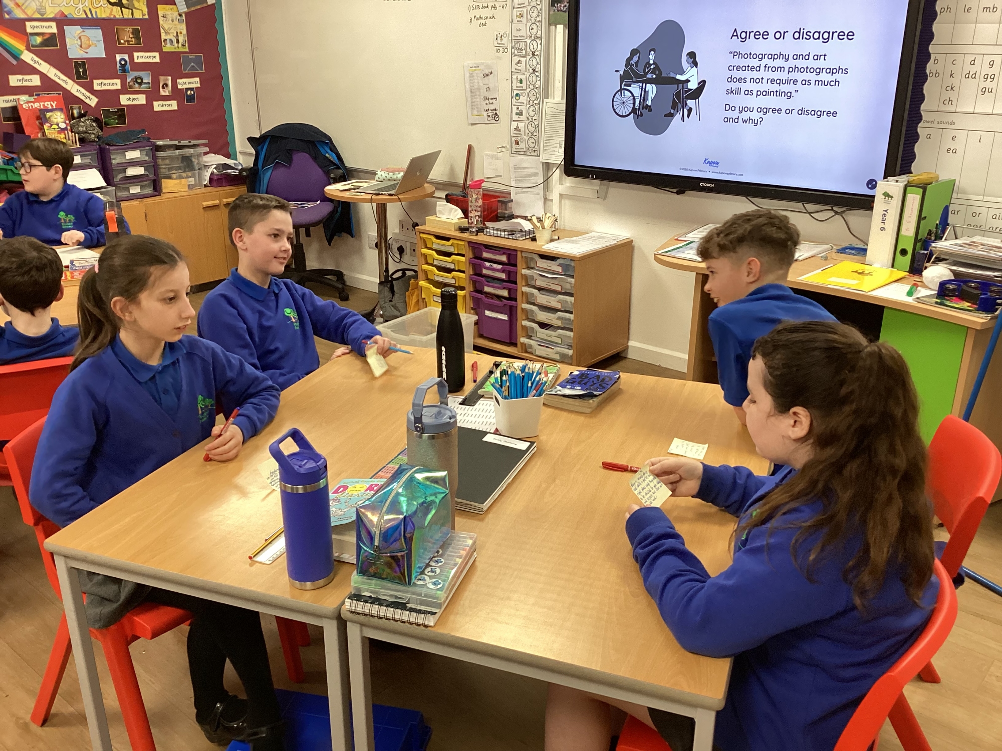 In Art, we started our lesson with a discussion about photography, using our oracy skills and school values to listen to each other's opinions and ideas. Our discussion statement was; 'Photography and Art created from photographs does not require as much skill as painting. Do you agree or disagree and why?'  We began the discussion as a class and then the class split into small groups. Conversation was exciting and it was interesting to hear the differing opinions. What's your opinion?