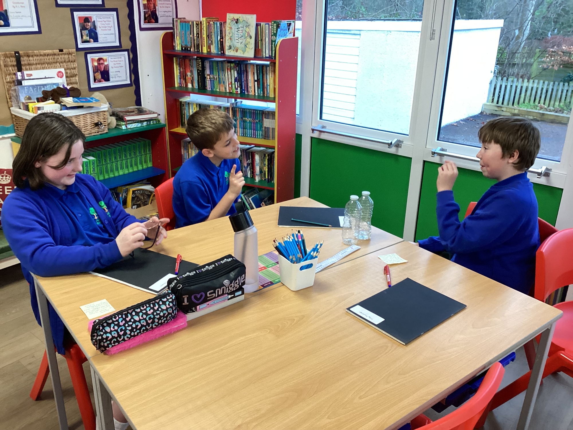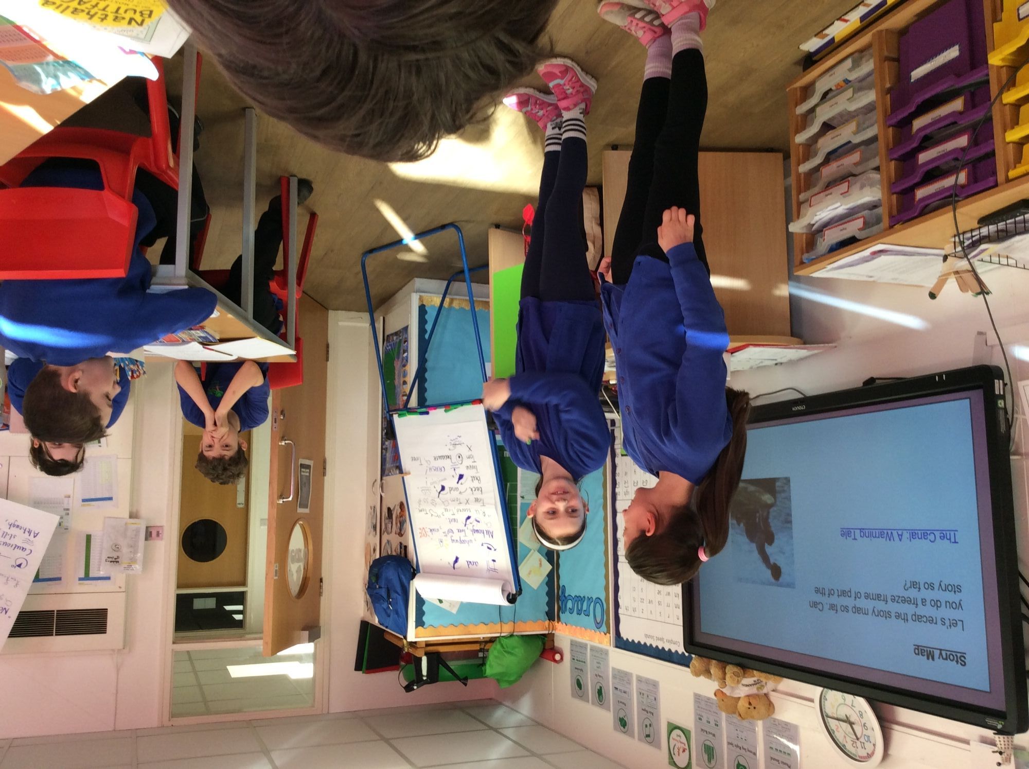 Week 5. We have started a new unit in Writing this week and began by practising acting out our warning story. We created freeze frames from the story in small groups. Can you guess what part we are showing?
