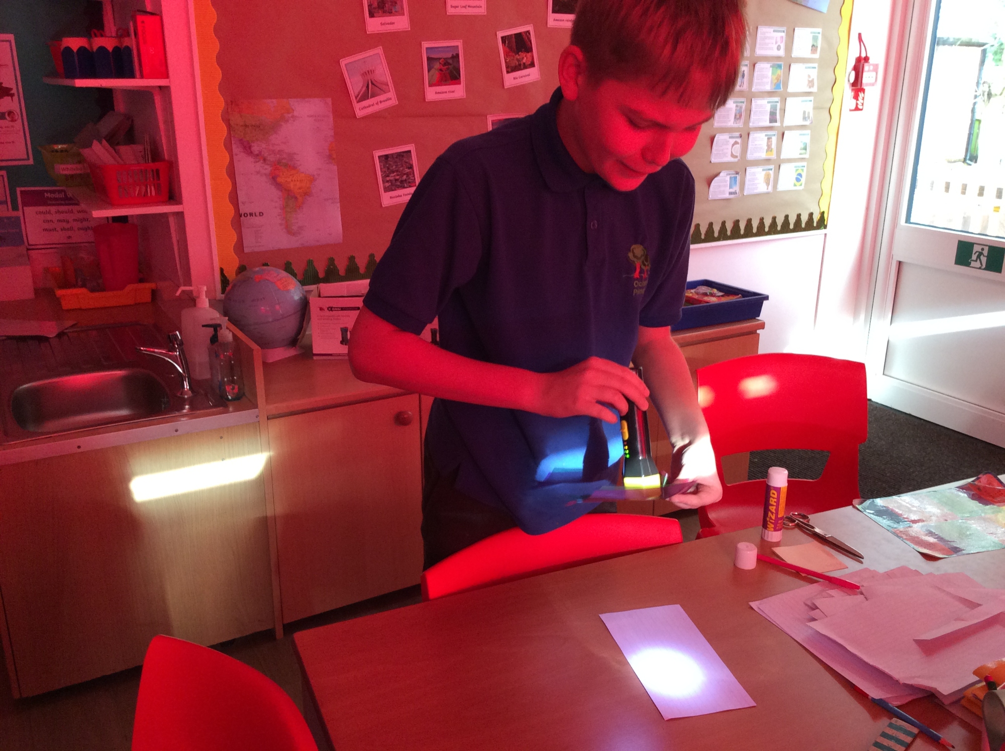Week 6. In Science we have been studying light and explored what happens to light when you use coloured filters. We made a prediction and then carried out our experiment to see if our predictions were correct.