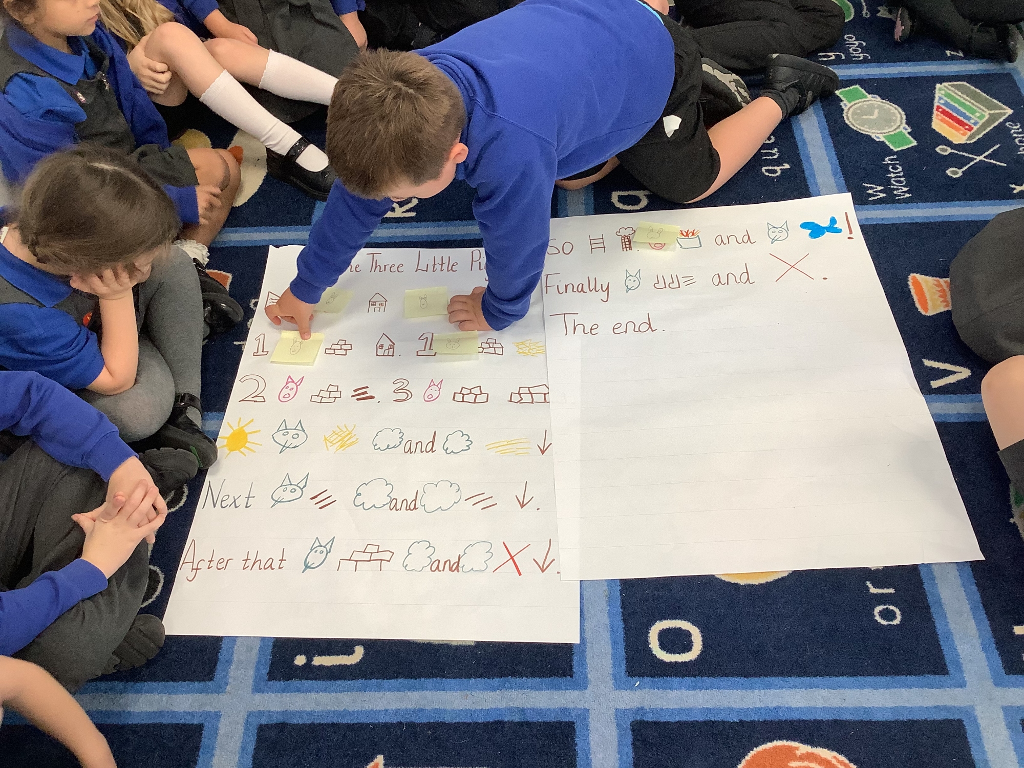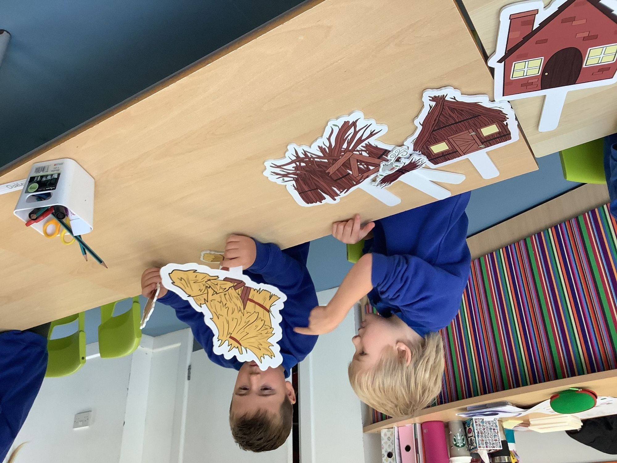 In Literacy, we have continued to look at our story 'The Three Little Pigs'. We added actions to our story map and used props to act out the story. On Thursday, we hot seated different characters from the story. We took it in turns to be on the hot seat and asked some fantastic questions!