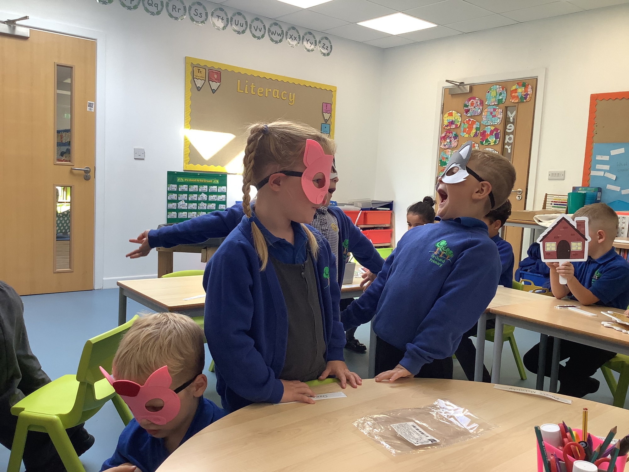 In Literacy, we have been innovating the story of The Three Little Pigs. We had great fun changing the characters! We then performed our new stories to our partners, and some children were even brave enough to perform in front of the whole class. They did a fantastic job!