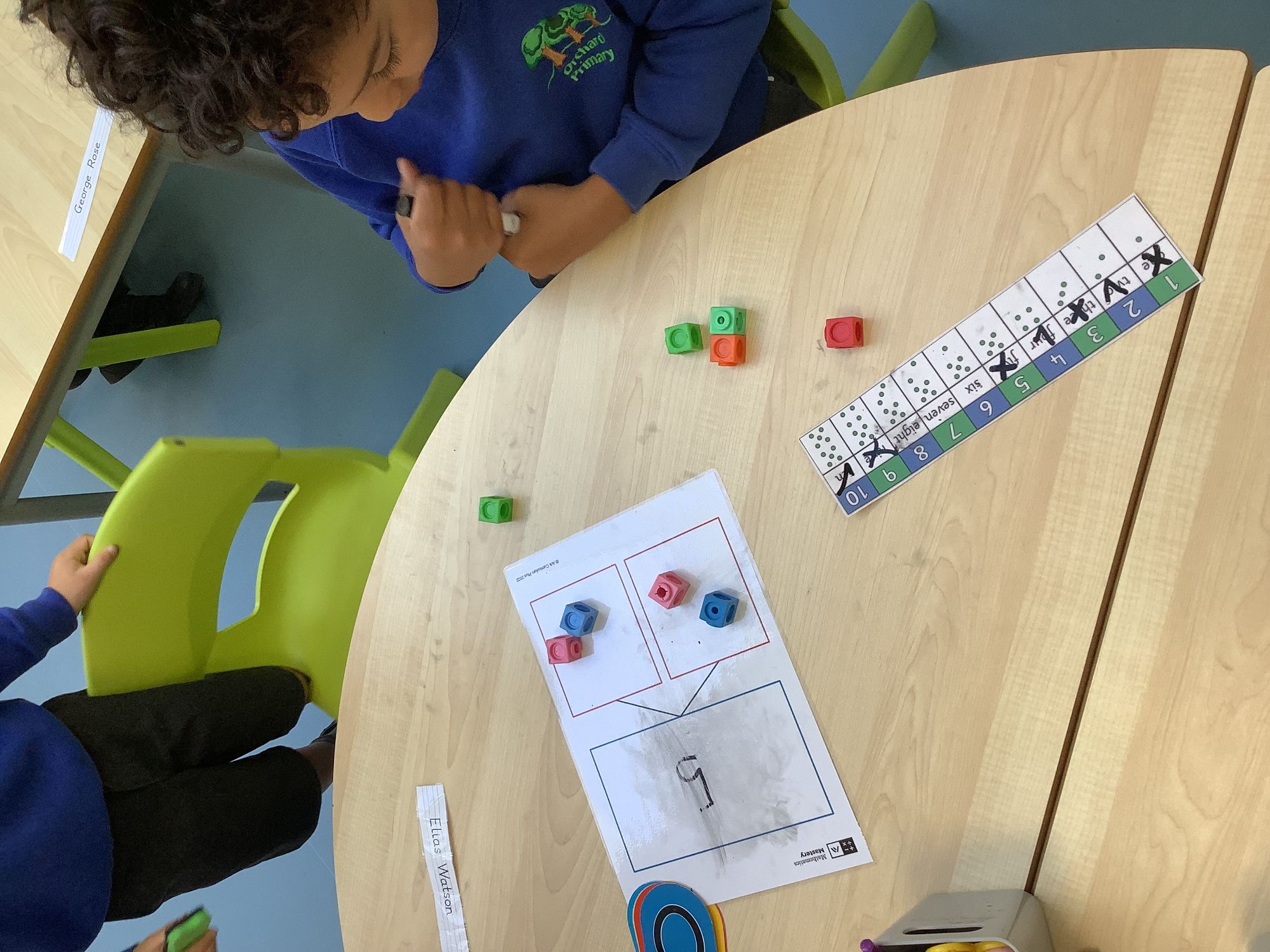 In Maths, we have been exploring numbers to 10, practising our number formation as well as using Numicon to answer number bonds to 10 maths stories.
