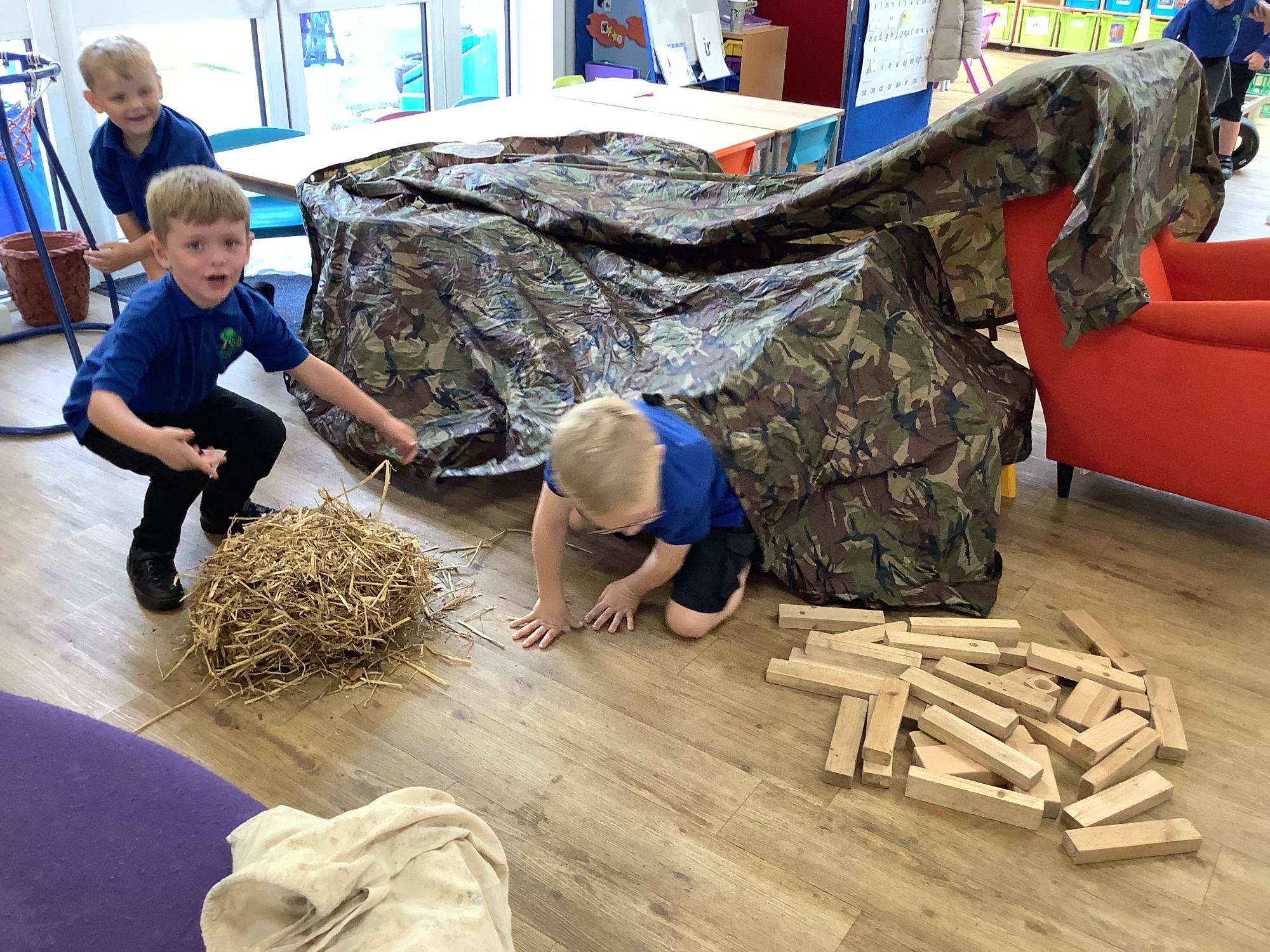 This week in Commando Jo, Year 1 completed their third Three Little Pigs mission! The pigs were busy building a new safe house in the woods but the Big Bad Wolf was hiding nearby! Working in small teams, we had to carefully navigate through the woods and over obstacles to reach safety. The person at the front had to close their eyes while the rest of the team whispered directions to avoid attracting the wolf. Everyone worked brilliantly together, and all teams completed the mission and made it back to safety!