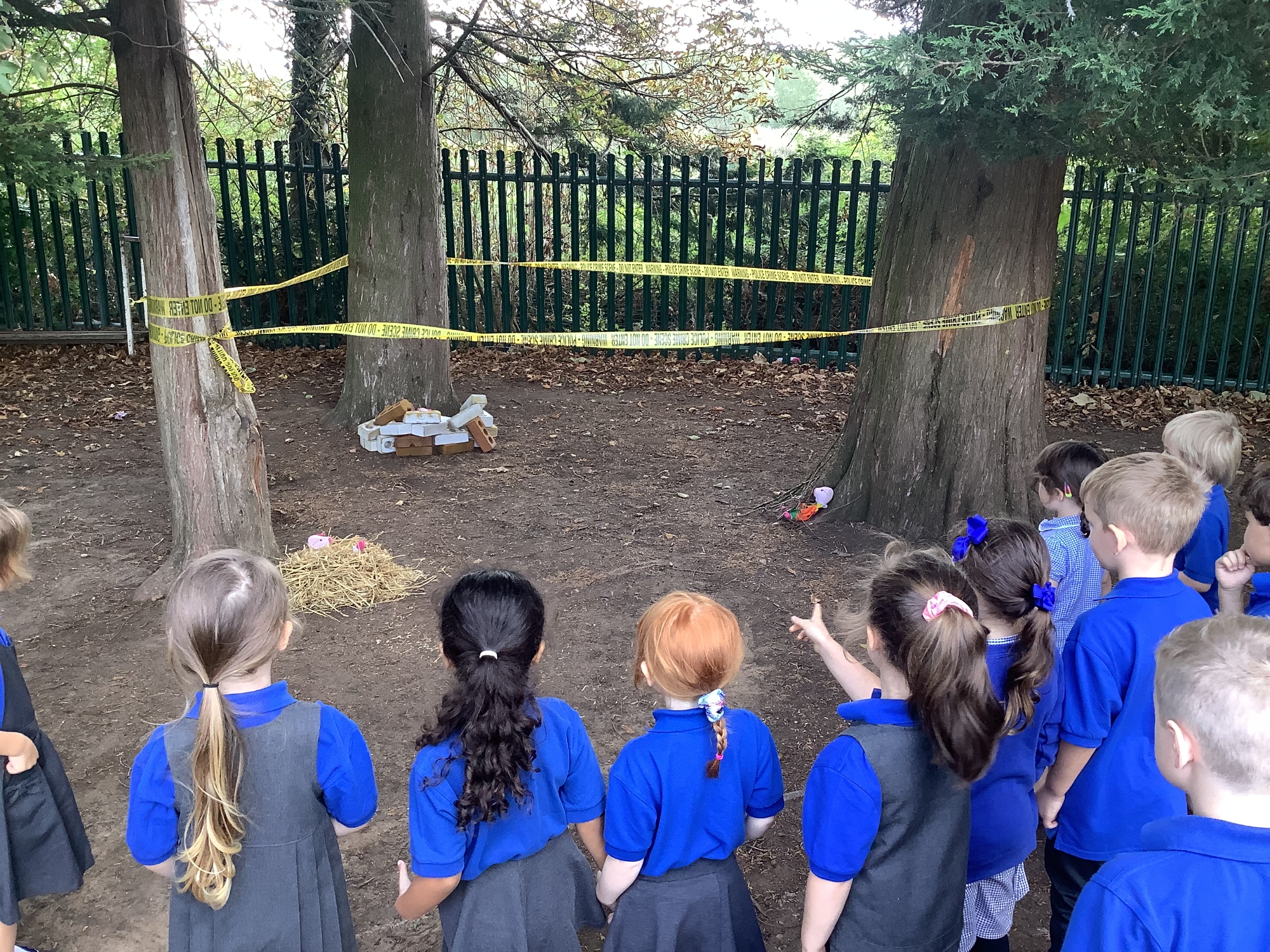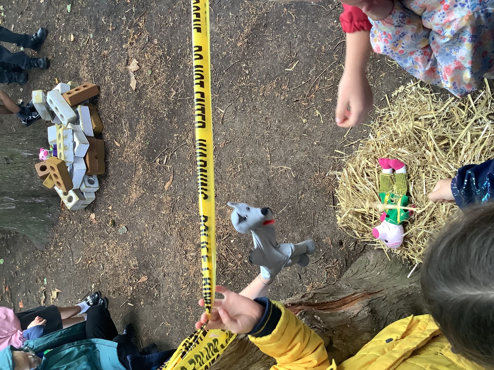 This week we were introduced to our focus text this term 'The Three Little Pigs'. On Monday, we found a crime scene out on the playground. It had been taped off and there were three different building materials left; straw, sticks and bricks. As a class, we thought about who may have left it, and what we thought the materials might be used for!