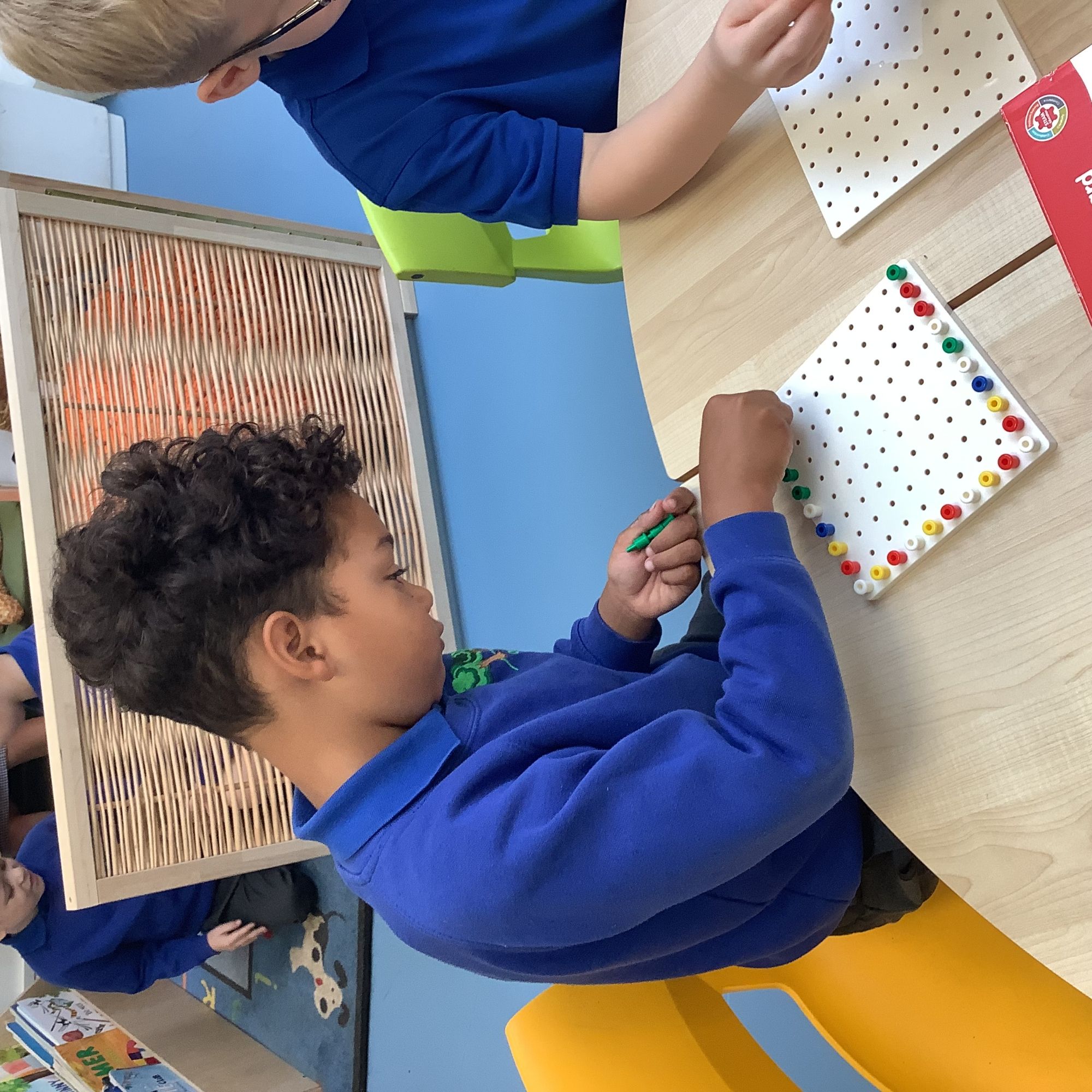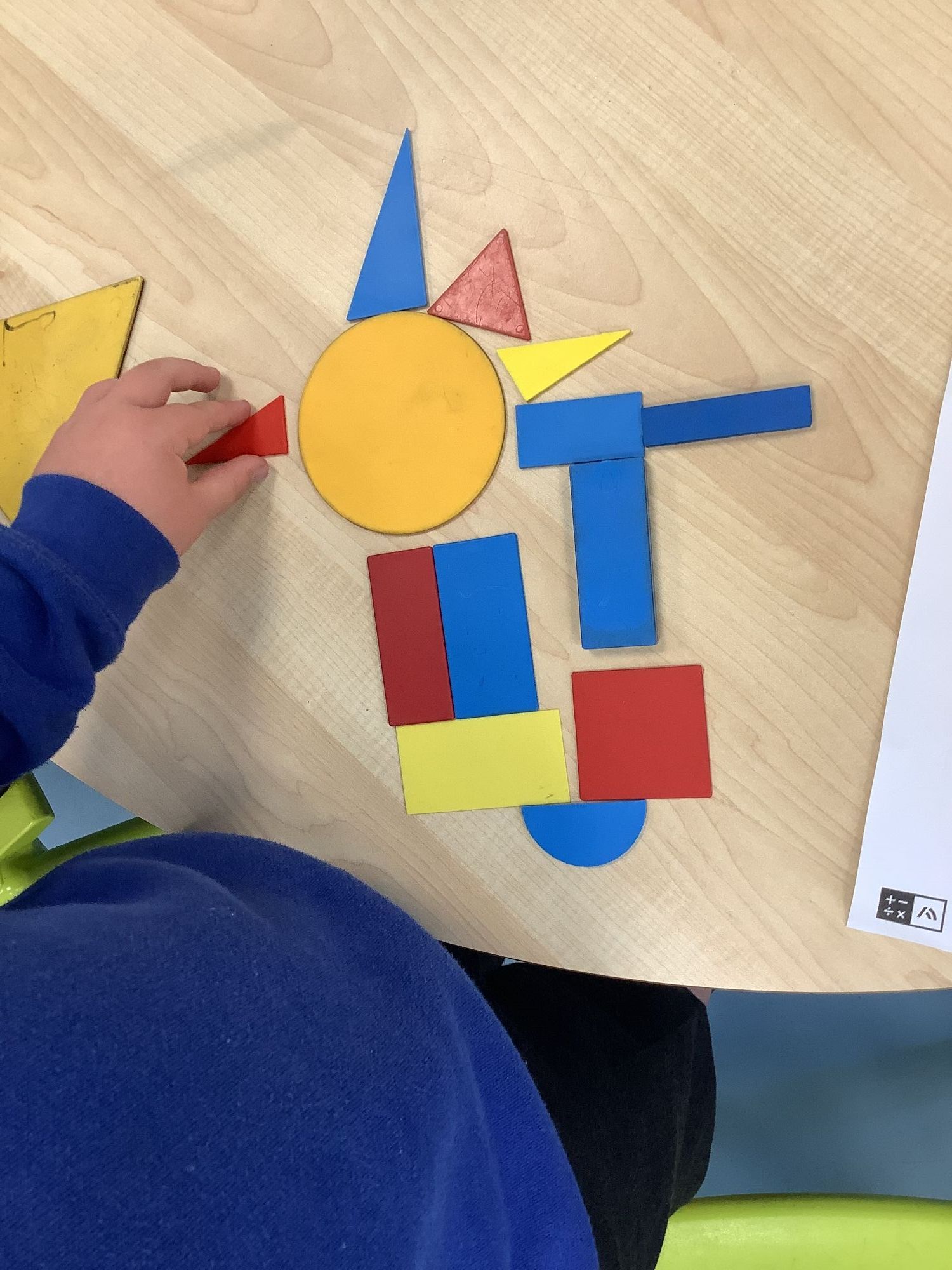 In Maths, we have been learning about algorithms. We learned that an algorithm is a set of steps to follow. We created paths for our Beebots and had to write algorithms for them to follow. We have also been exploring shapes and patterns, creating lots of patterns using two or three shapes and different colours.