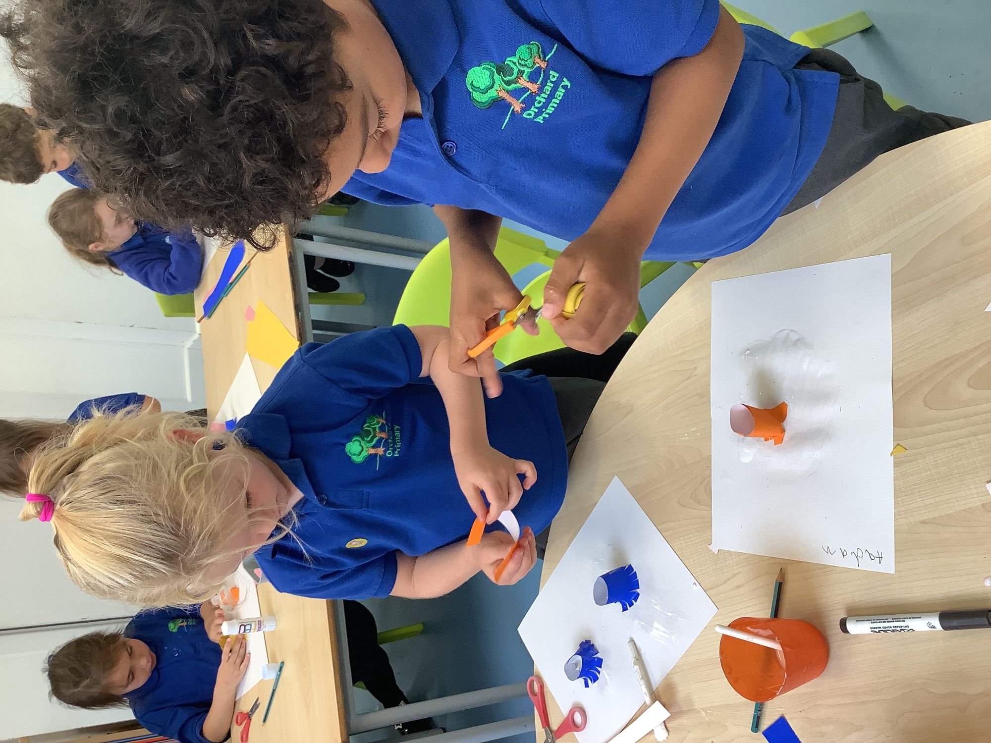 In art, we have continued to look at sculptures and 3D shapes. This week, our focus was on the 'Tree of Life' and we learnt about the designer Marco Balich and his sculpture in Milan, Italy. We talked in pairs about what we could see and how this sculpture was different to other pictures we had looked at. We then had a go at creating our own using techniques we have been learning over the last few weeks.