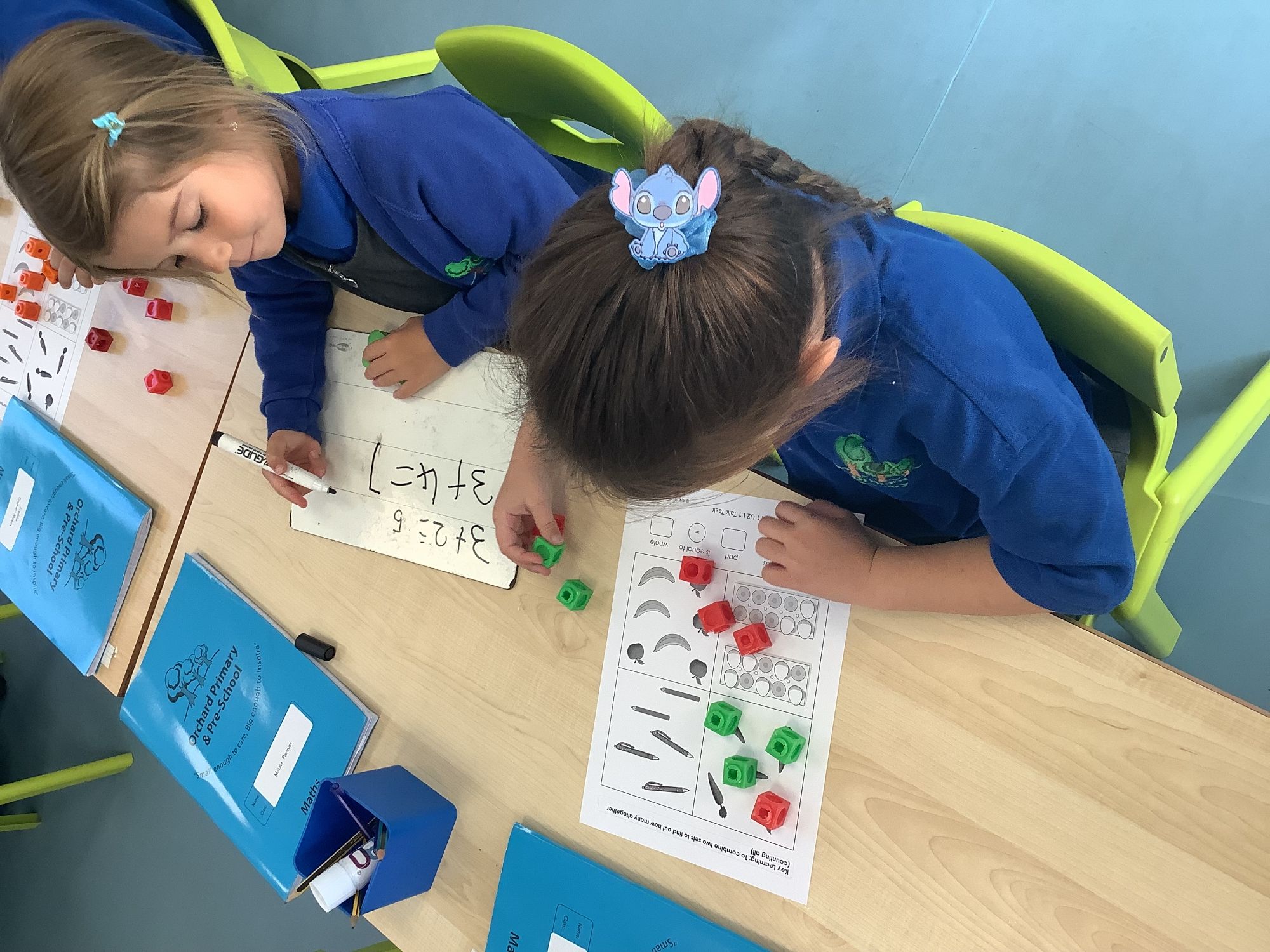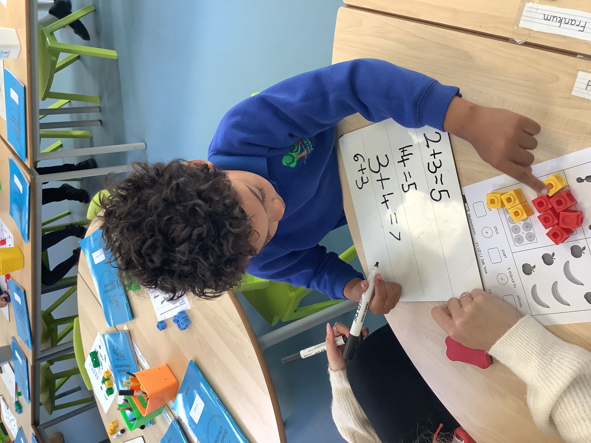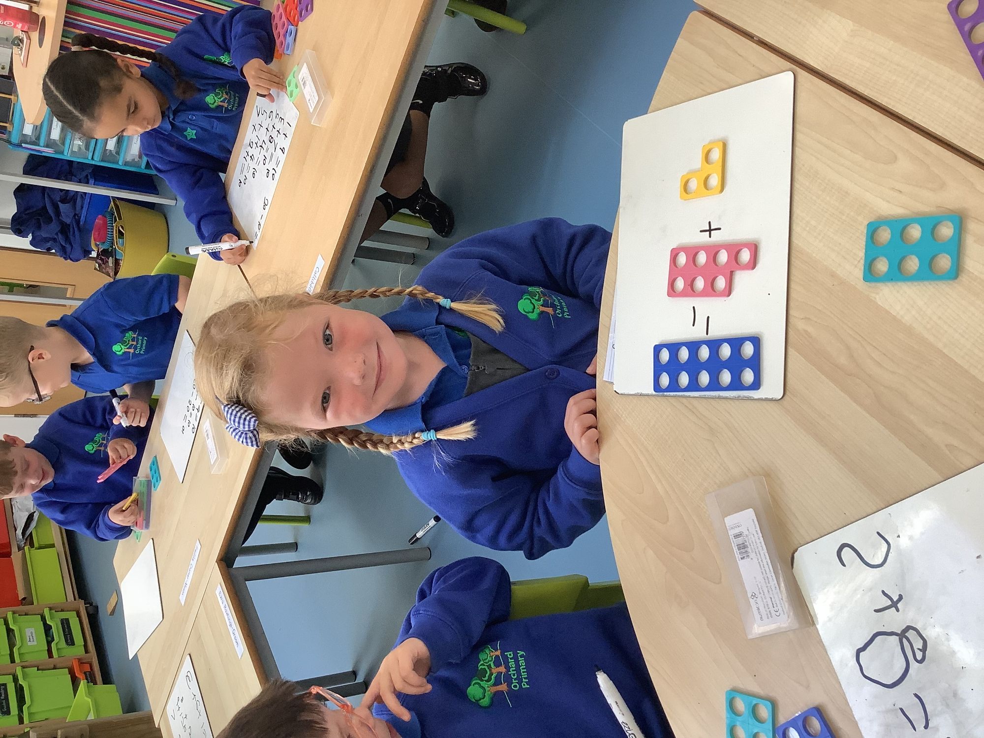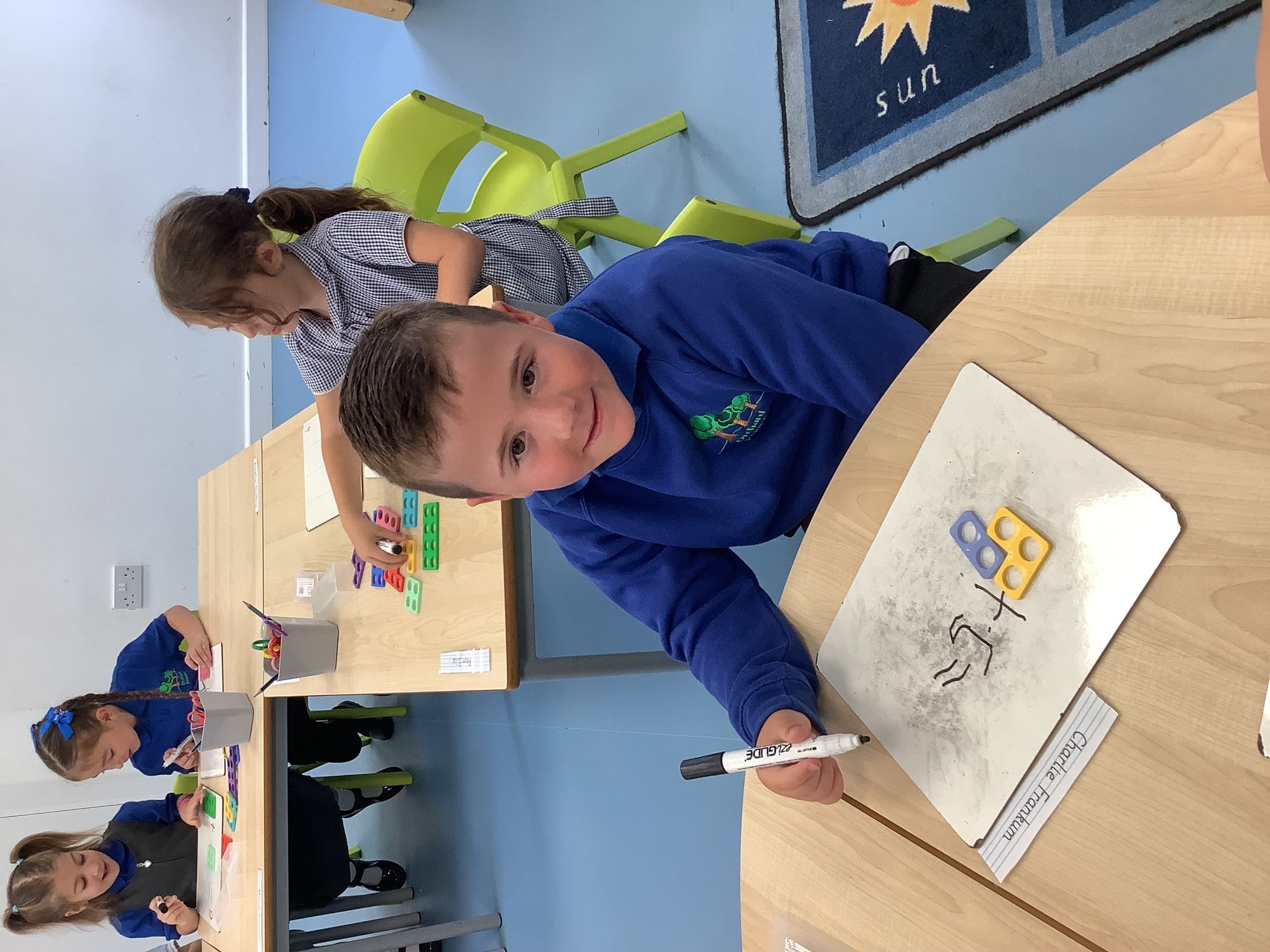 In Maths this week we have started to look at vertical addition. We had to make sure the numbers were placed in the correct box, and we used the correct sign to show whether we were adding or taking away. We will continue to build on this throughout the year.