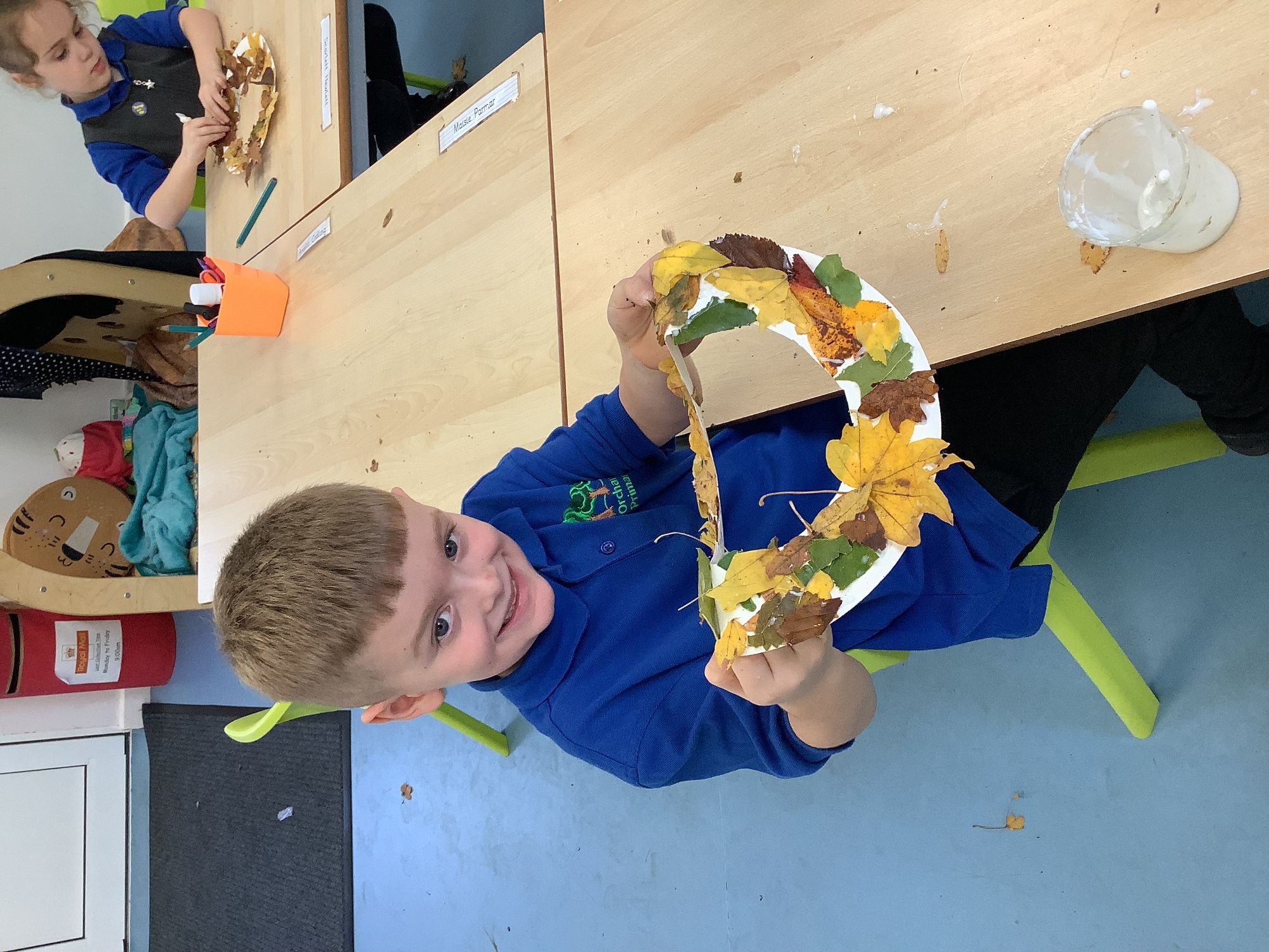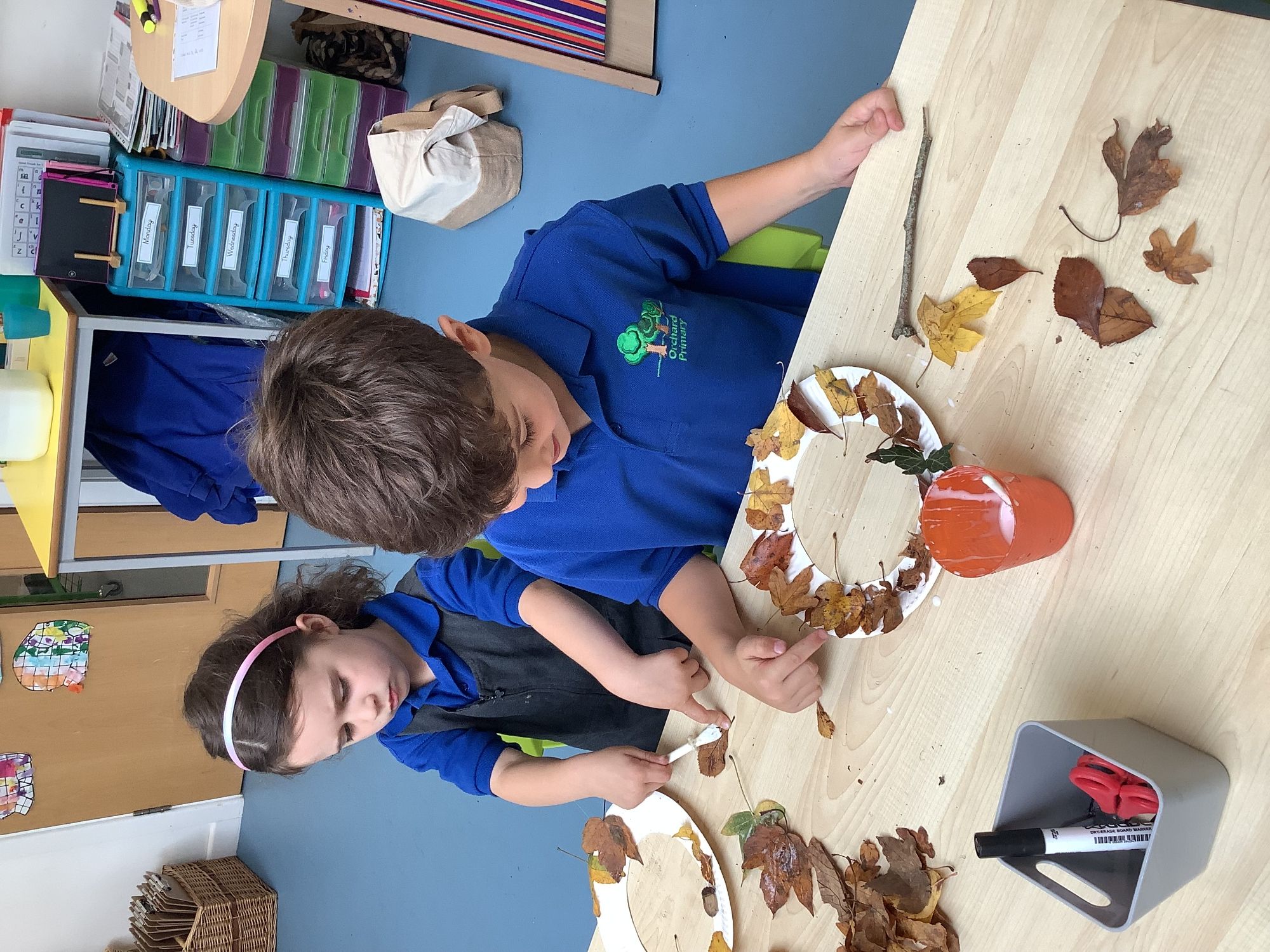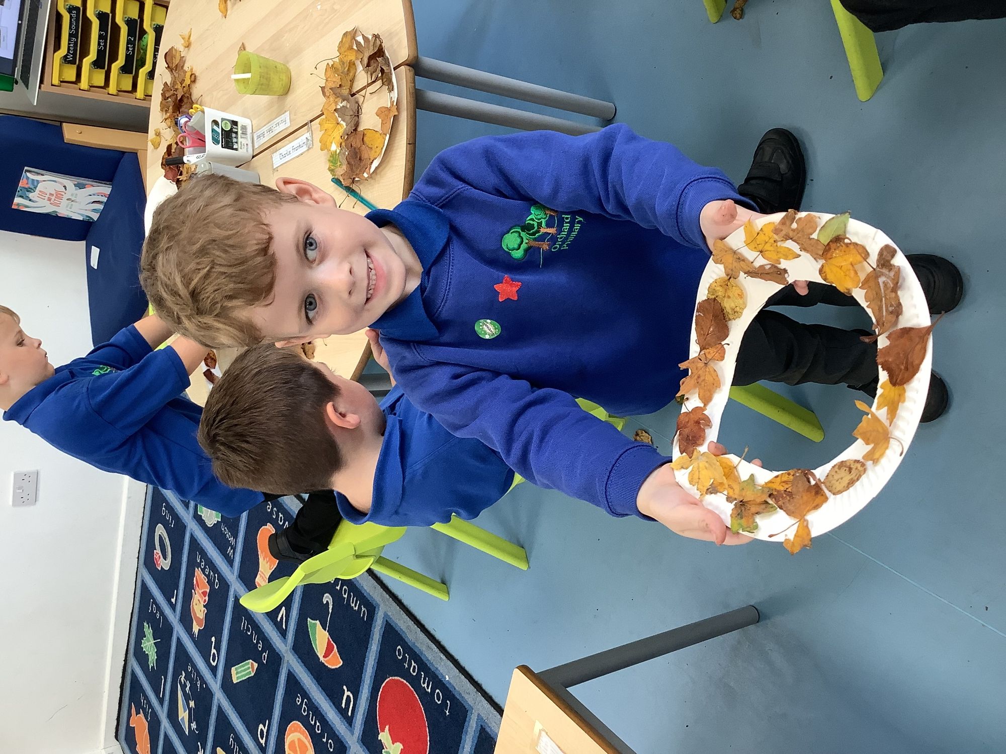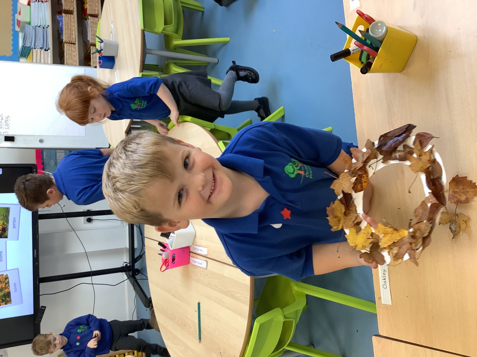 In Science this week, Year 1 have been learning all about the season of Autumn. We talked about the clothes we wear at this time of year and what the weather is like. Then we headed outside to see what changes we could spot! We noticed the leaves changing colour, falling from the trees, and the weather turning colder. To finish our lesson, we collected a variety of colourful leaves and used them to create our very own beautiful Autumn wreaths!